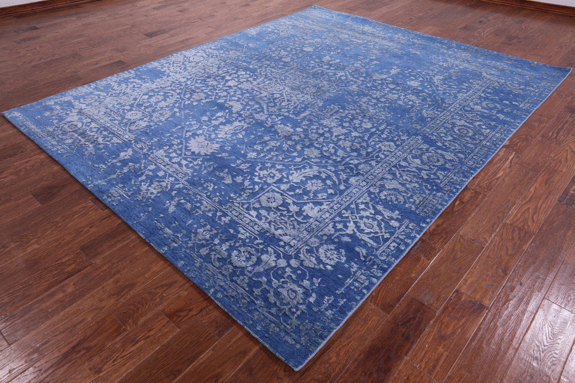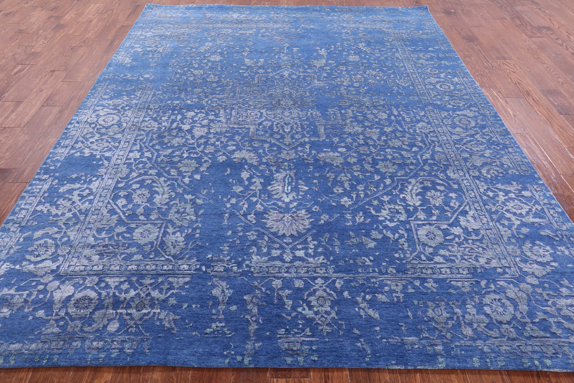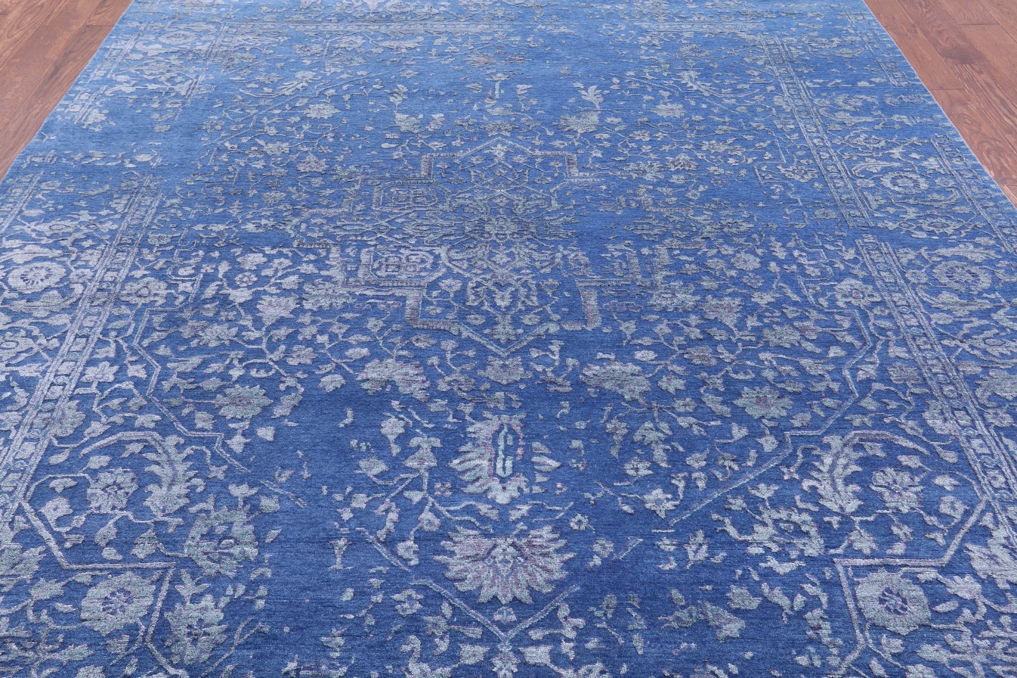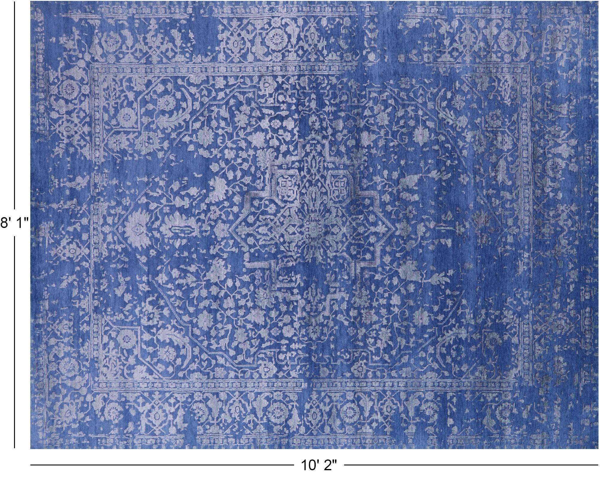 Blue 8' 1" X 10' 2" Wool & Silk Hand Knotted Heriz Serapi Persian Rug - Q9106