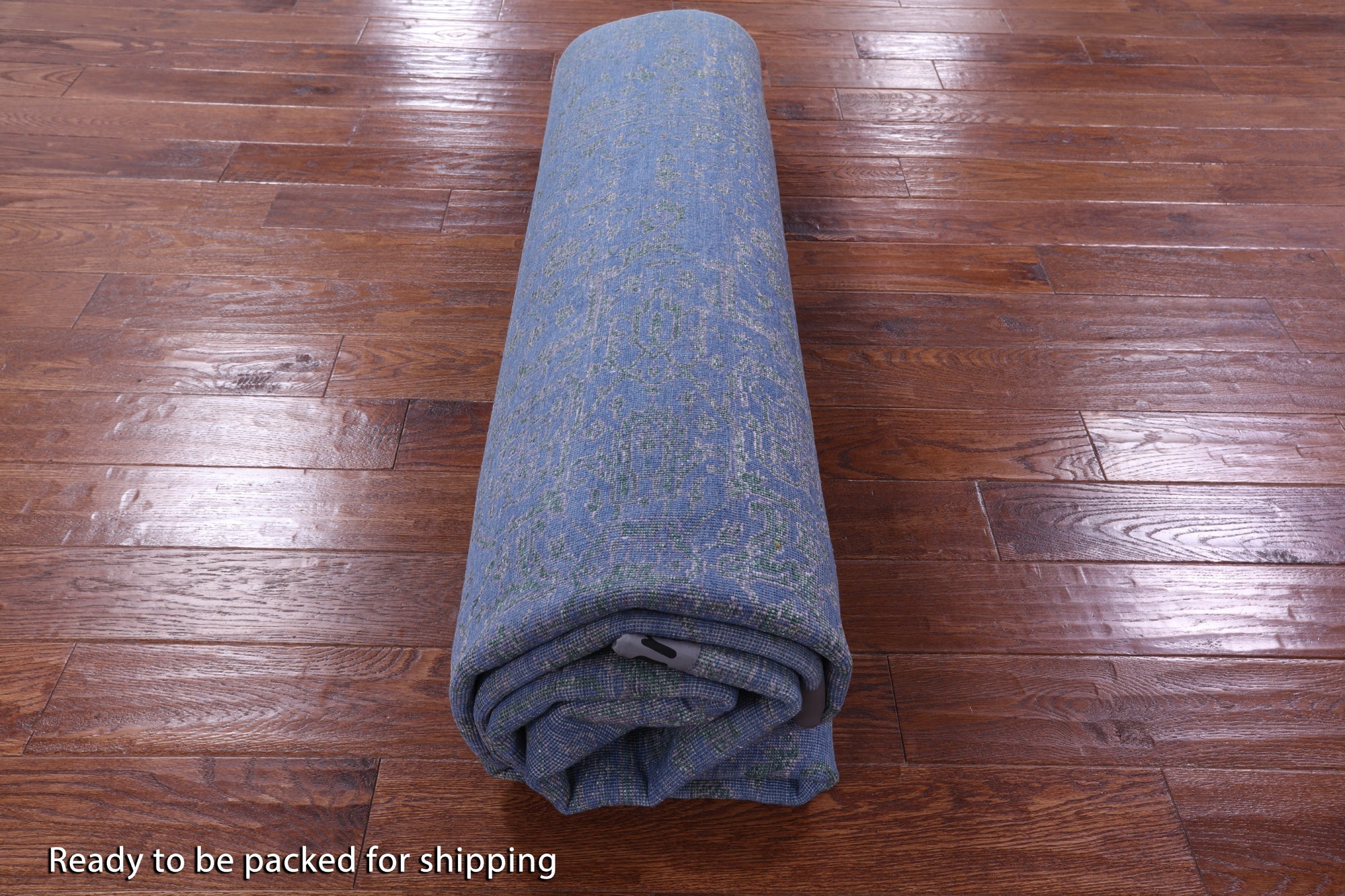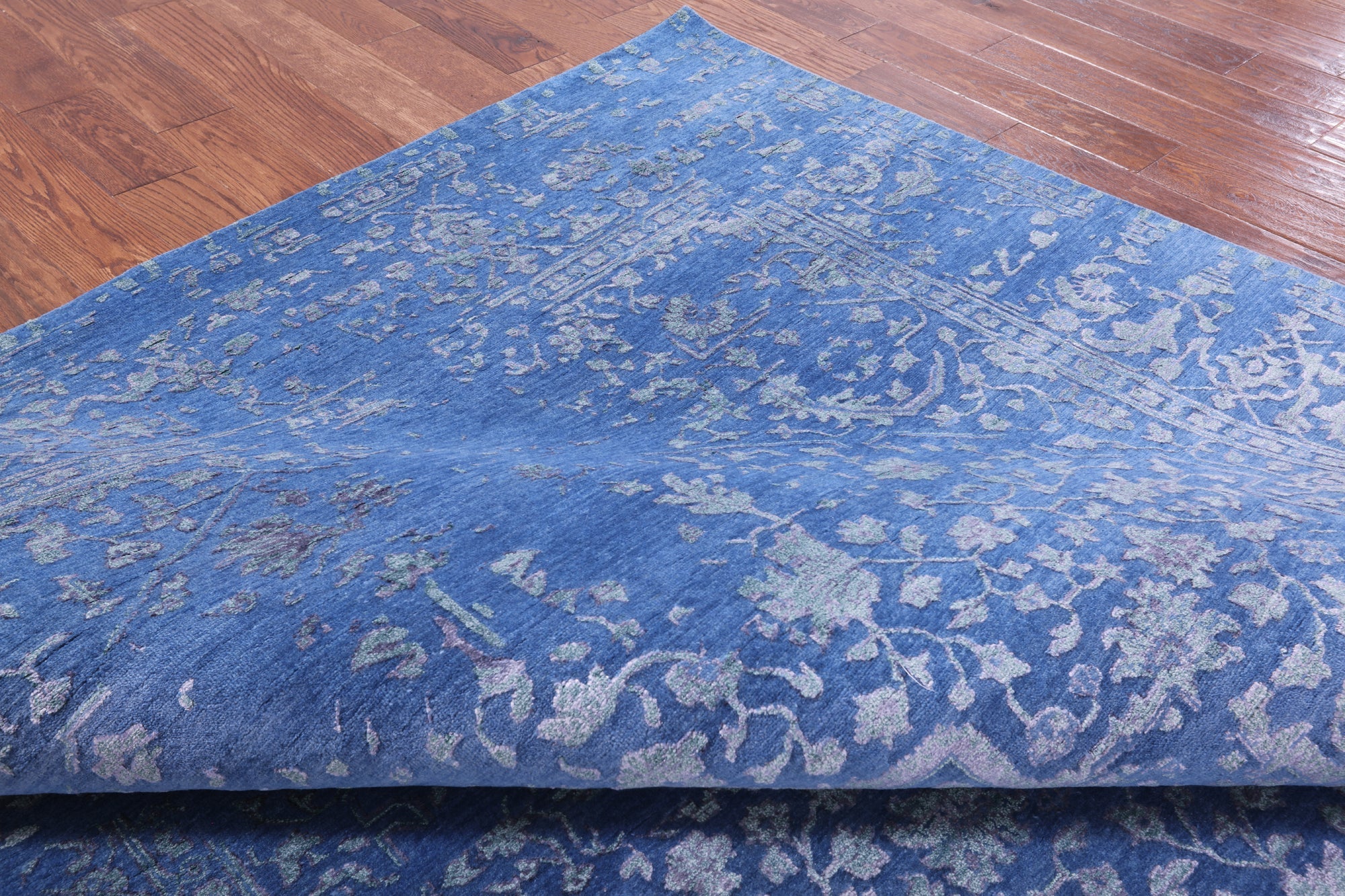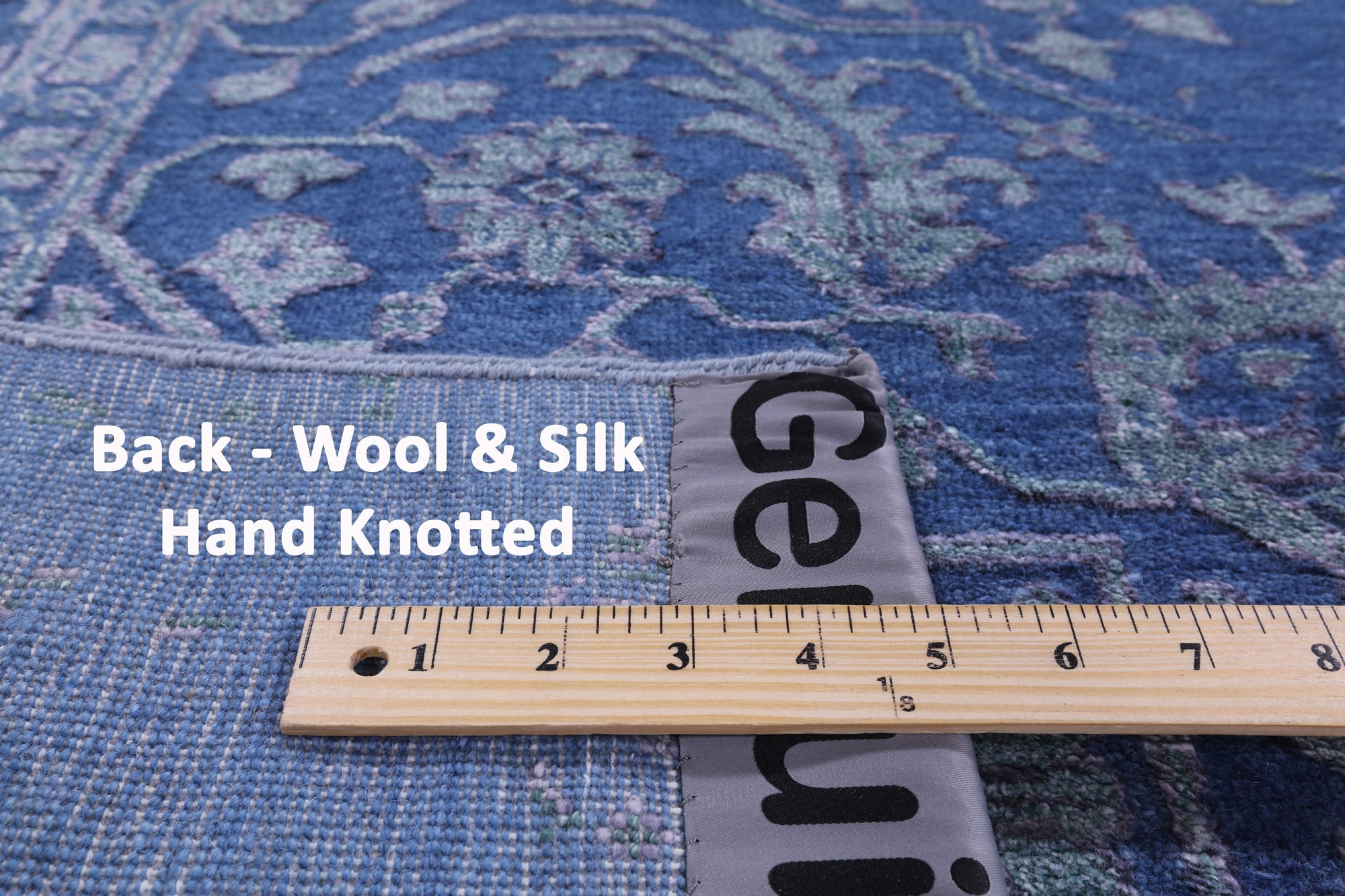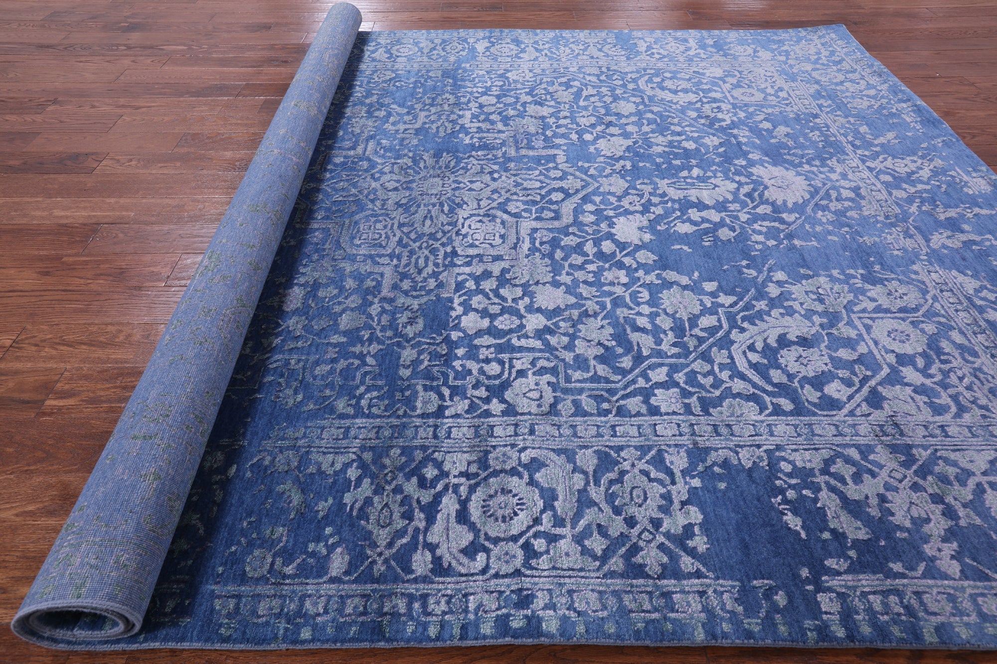 Blue 8' 1" X 10' 2" Wool & Silk Hand Knotted Heriz Serapi Persian Rug - Q9106