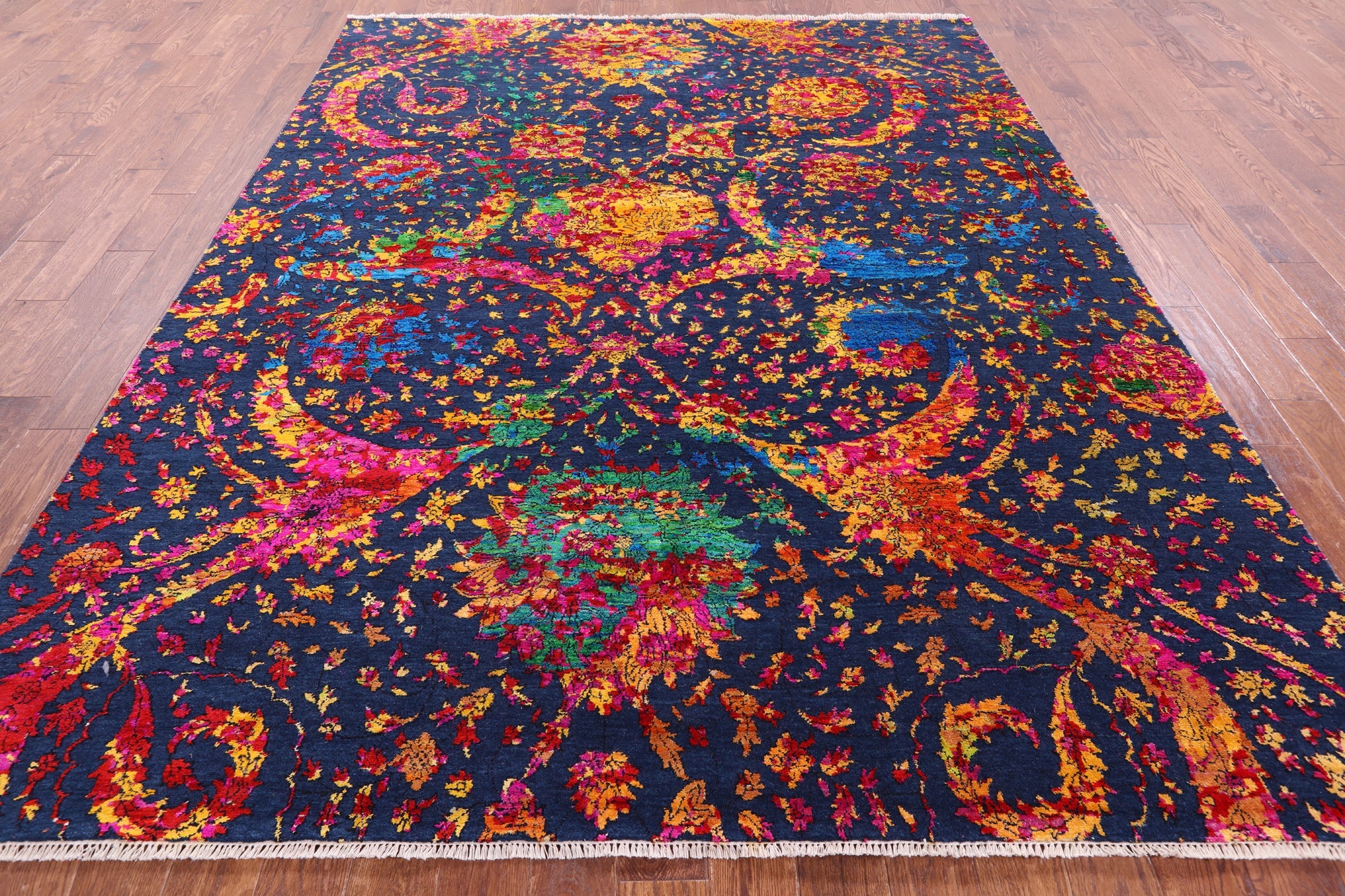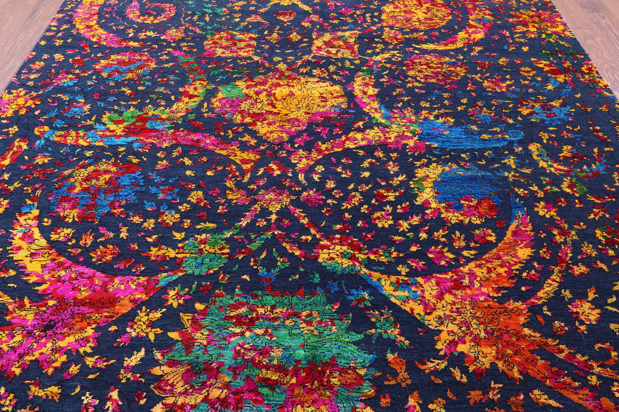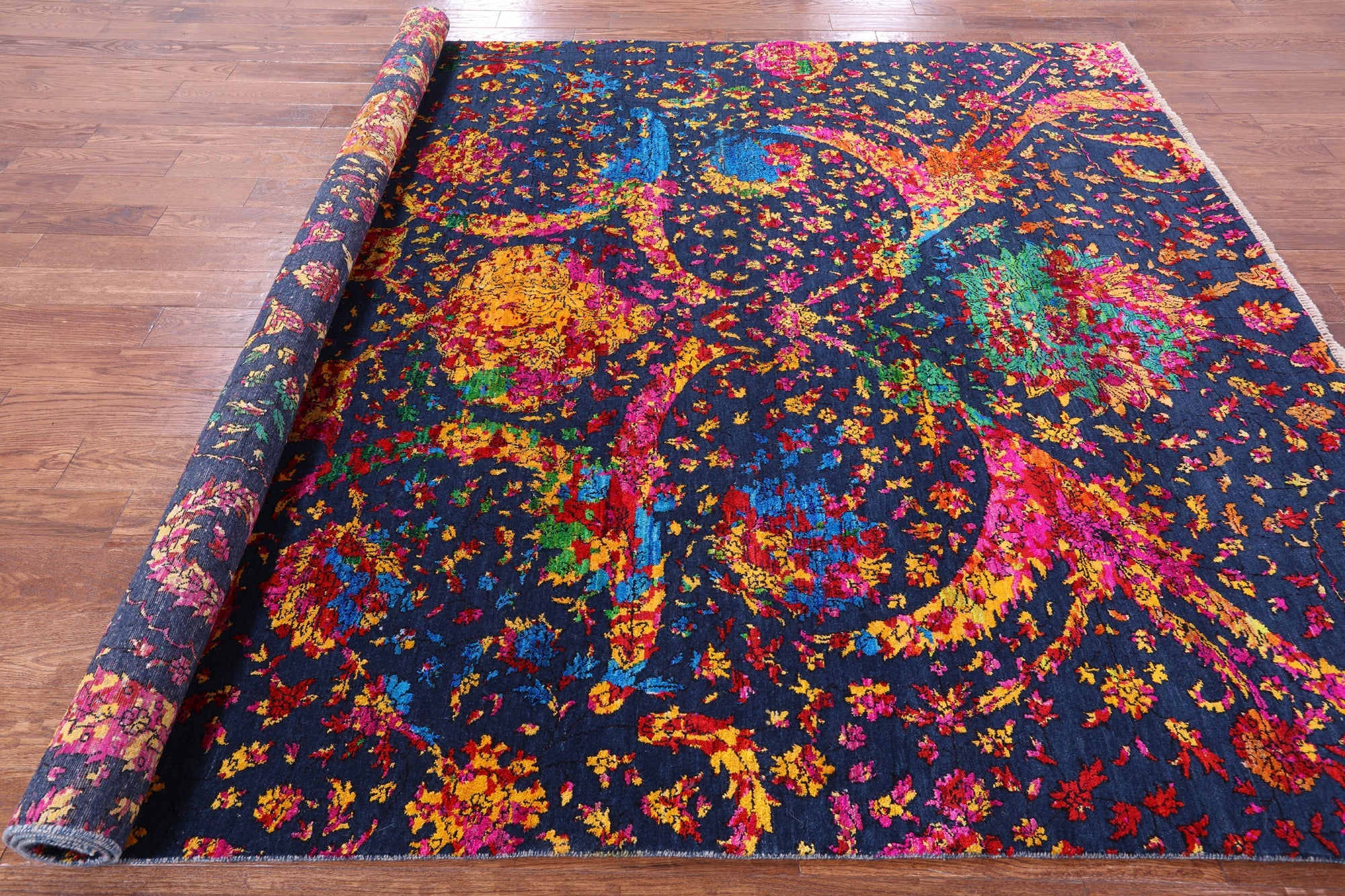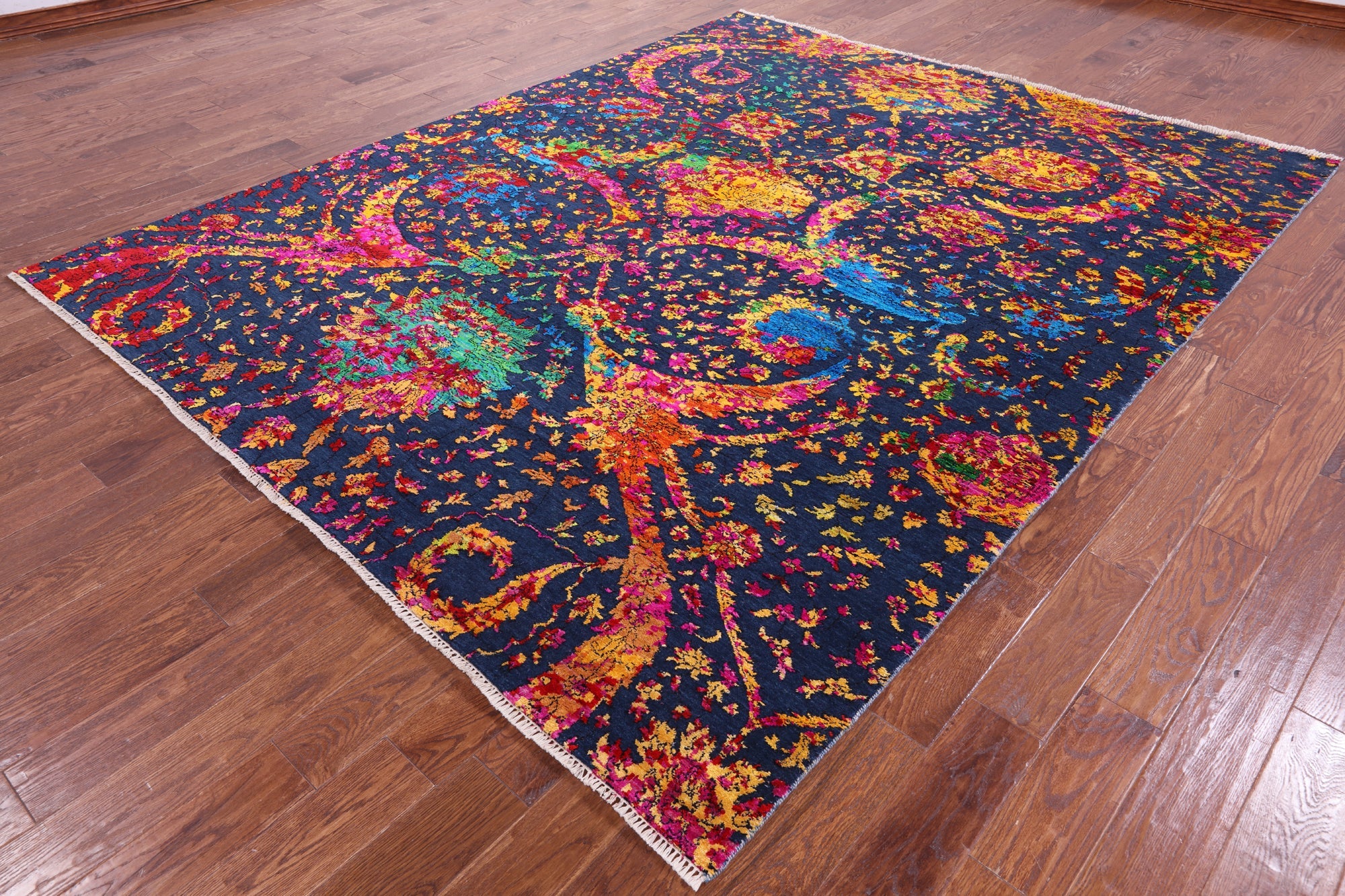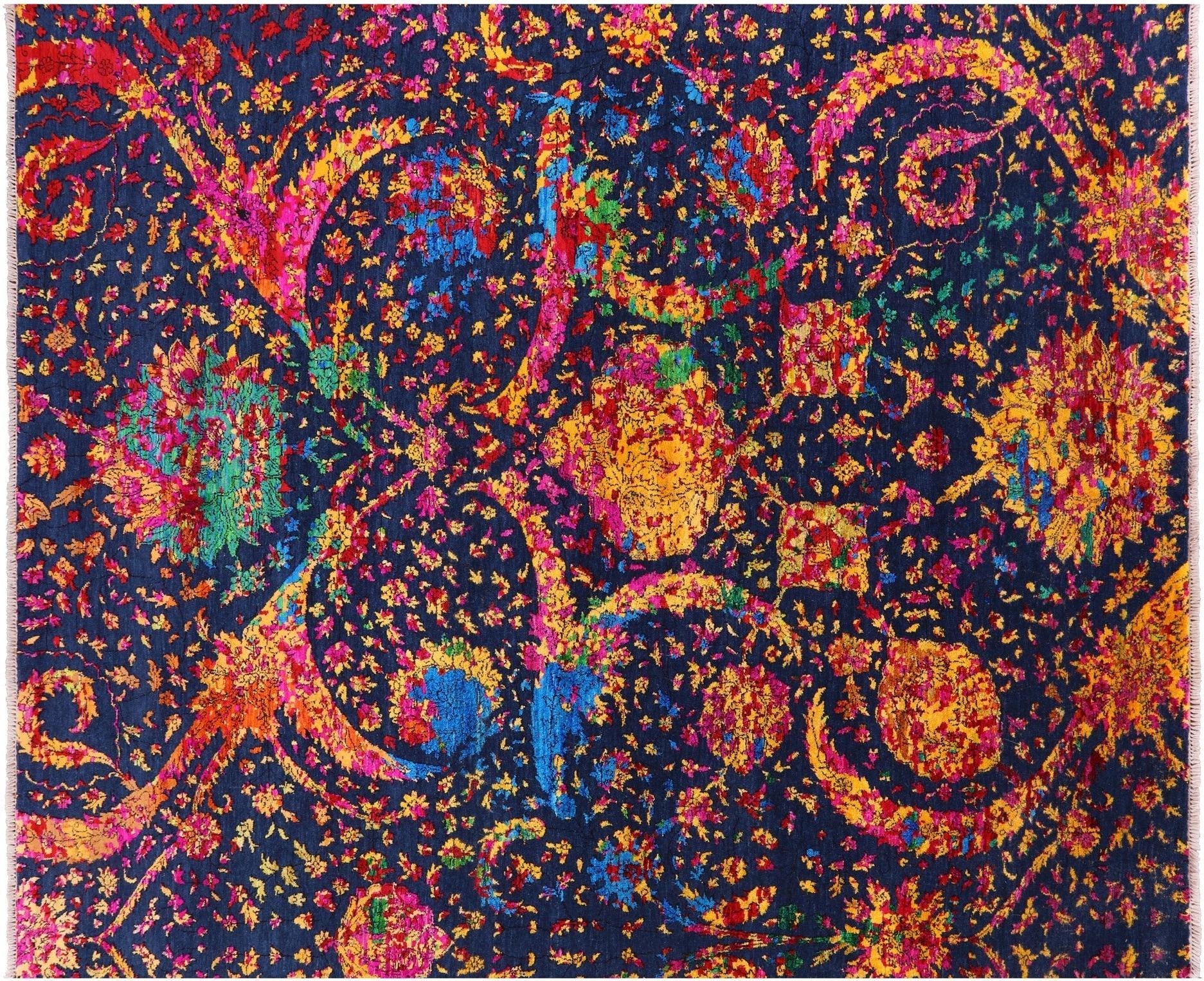 Blue 7' 11" X 9' 11" Wool & Silk Persian Sickle Leaf Design Handmade Rug - Q13492 is backordered and will ship as soon as it is back in stock.