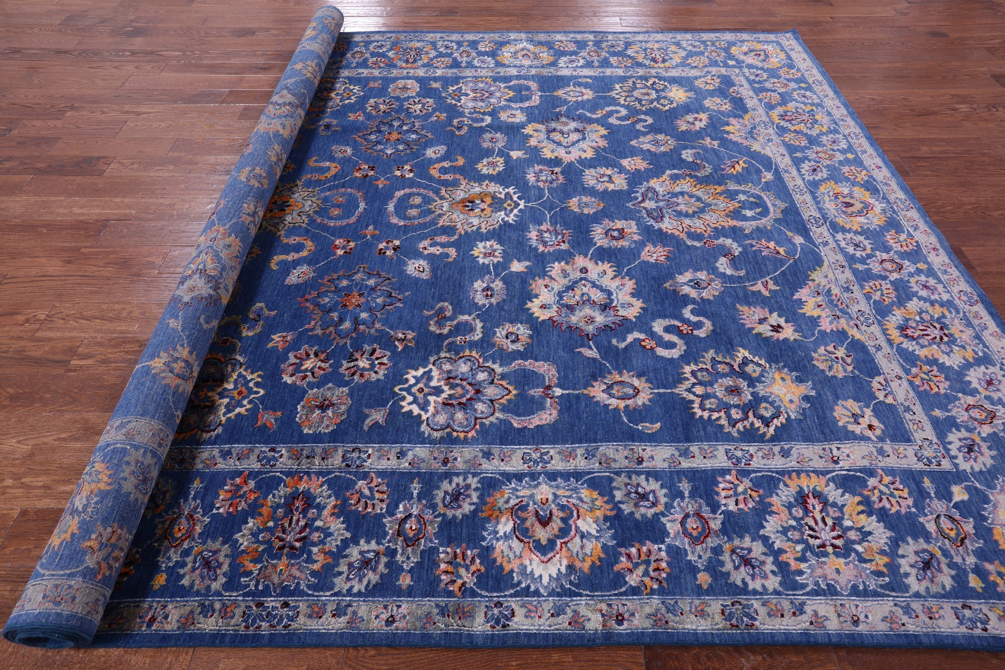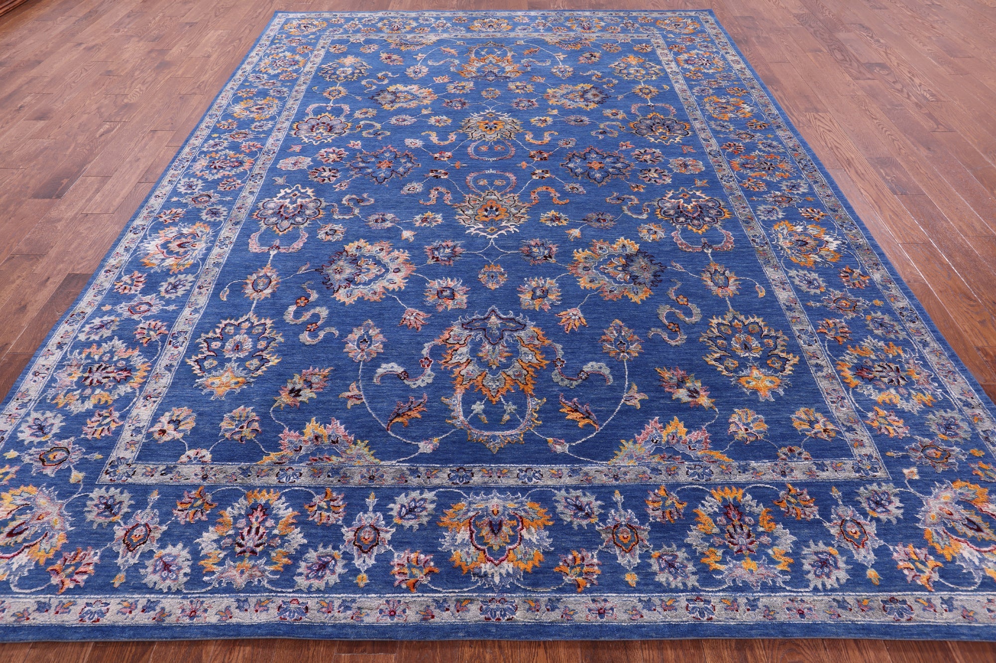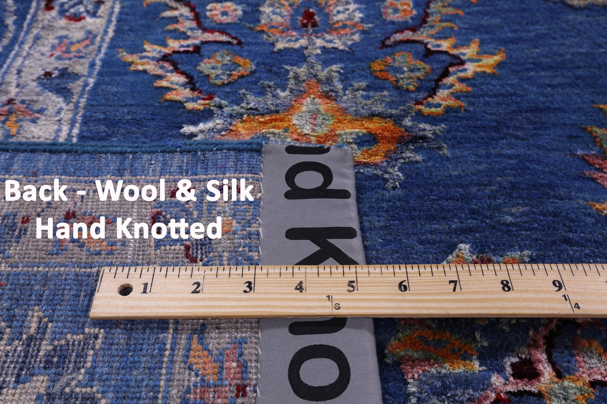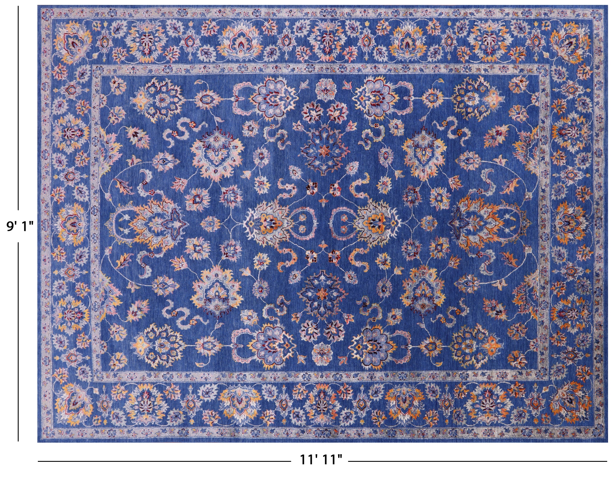 Blue 9' 1" X 11' 11" Wool & Silk Persian Tabriz Hand Knotted Rug - Q12089