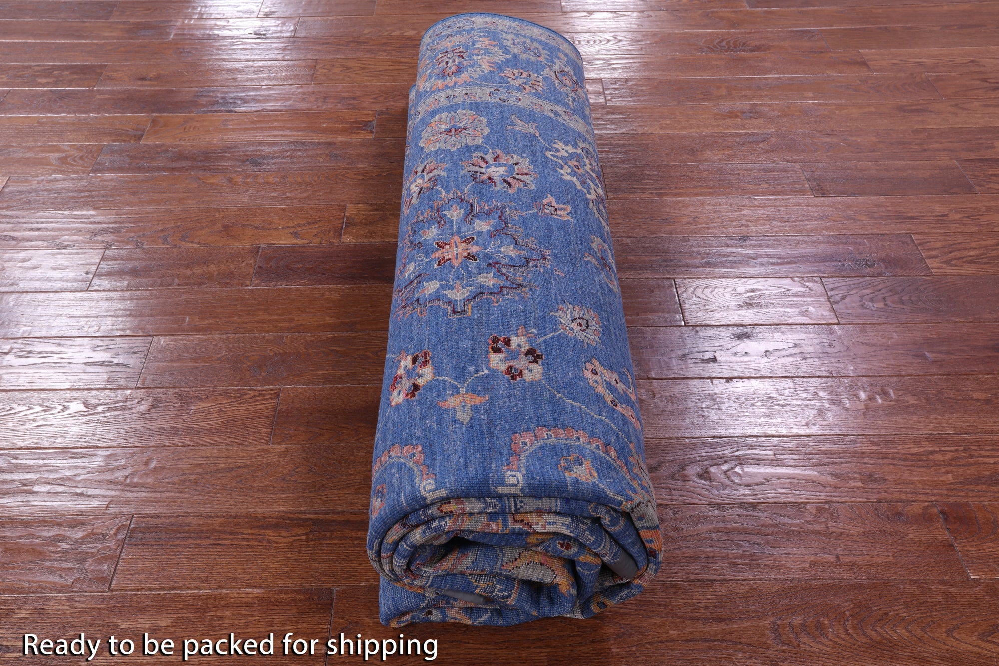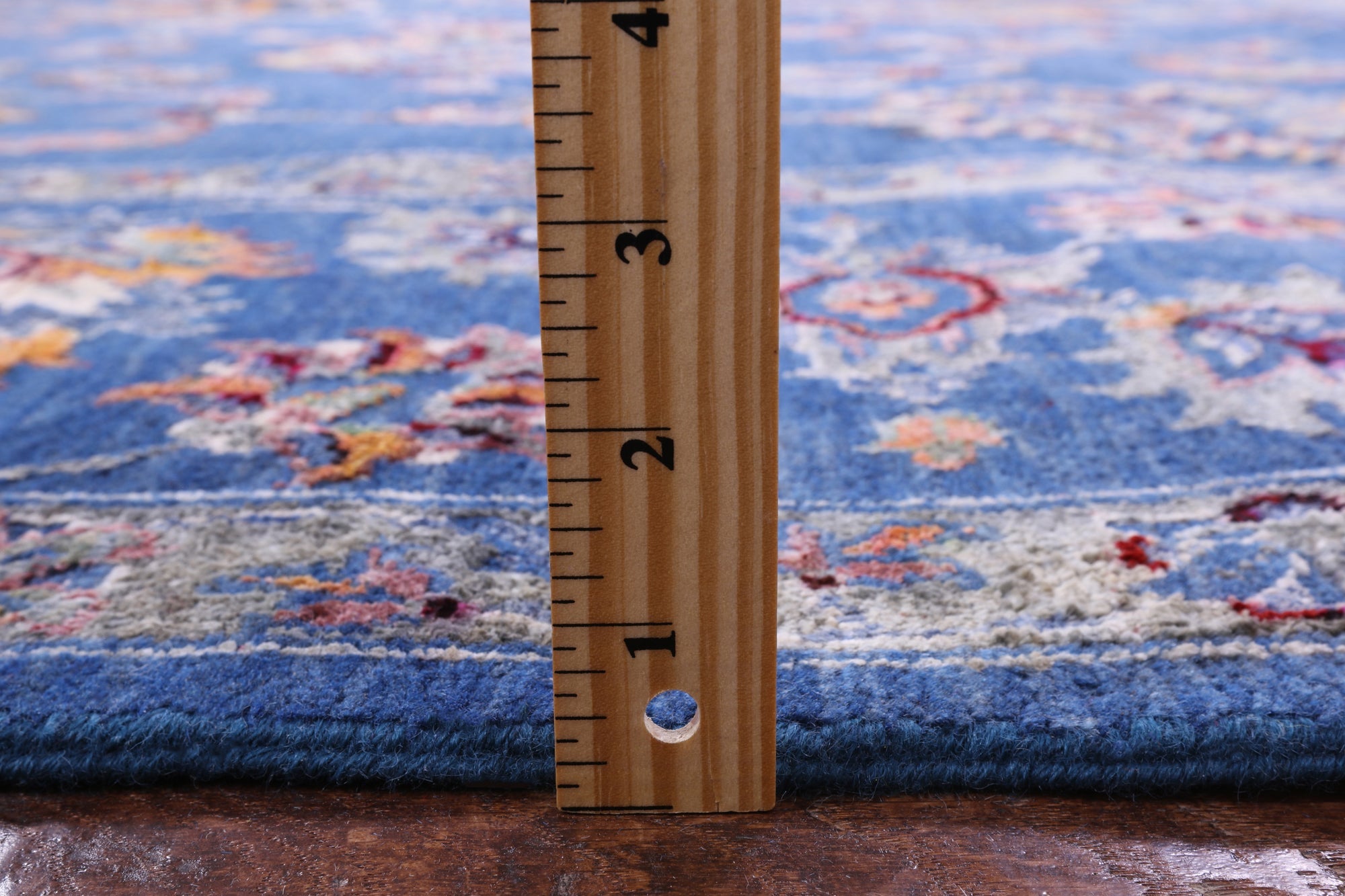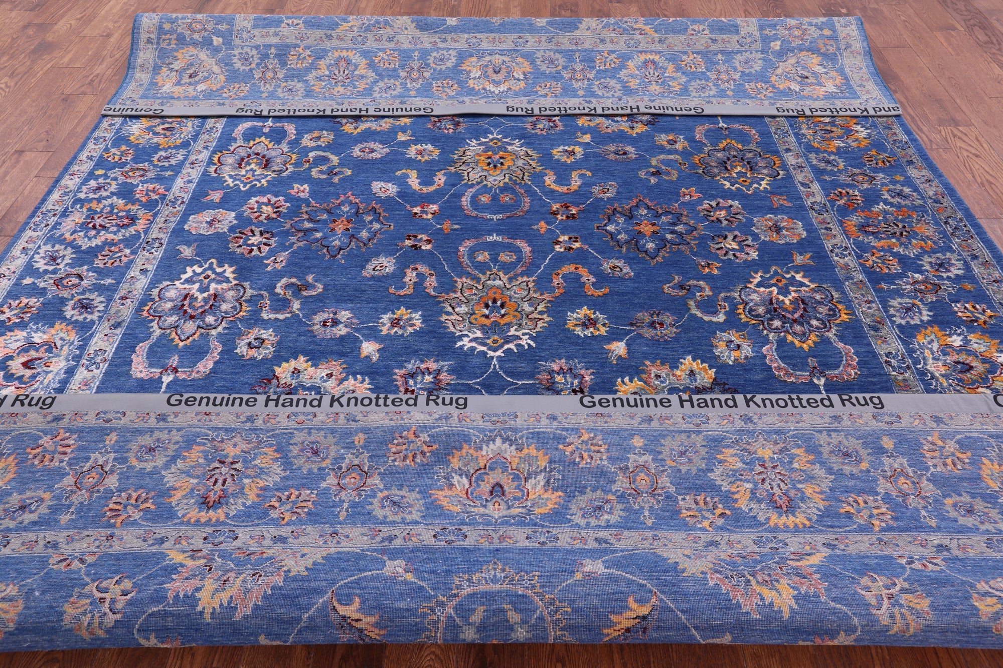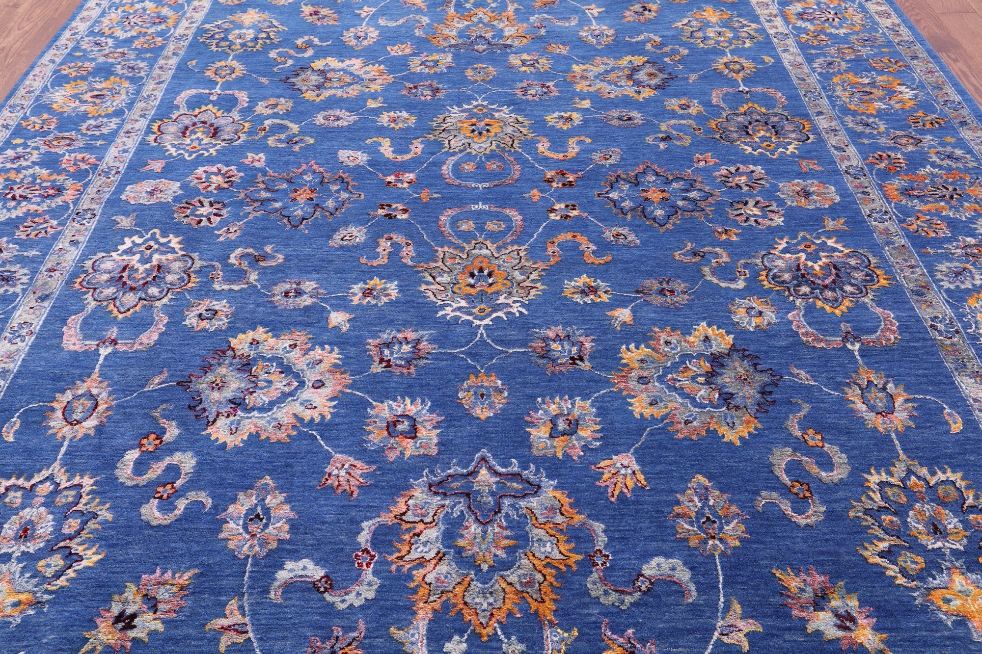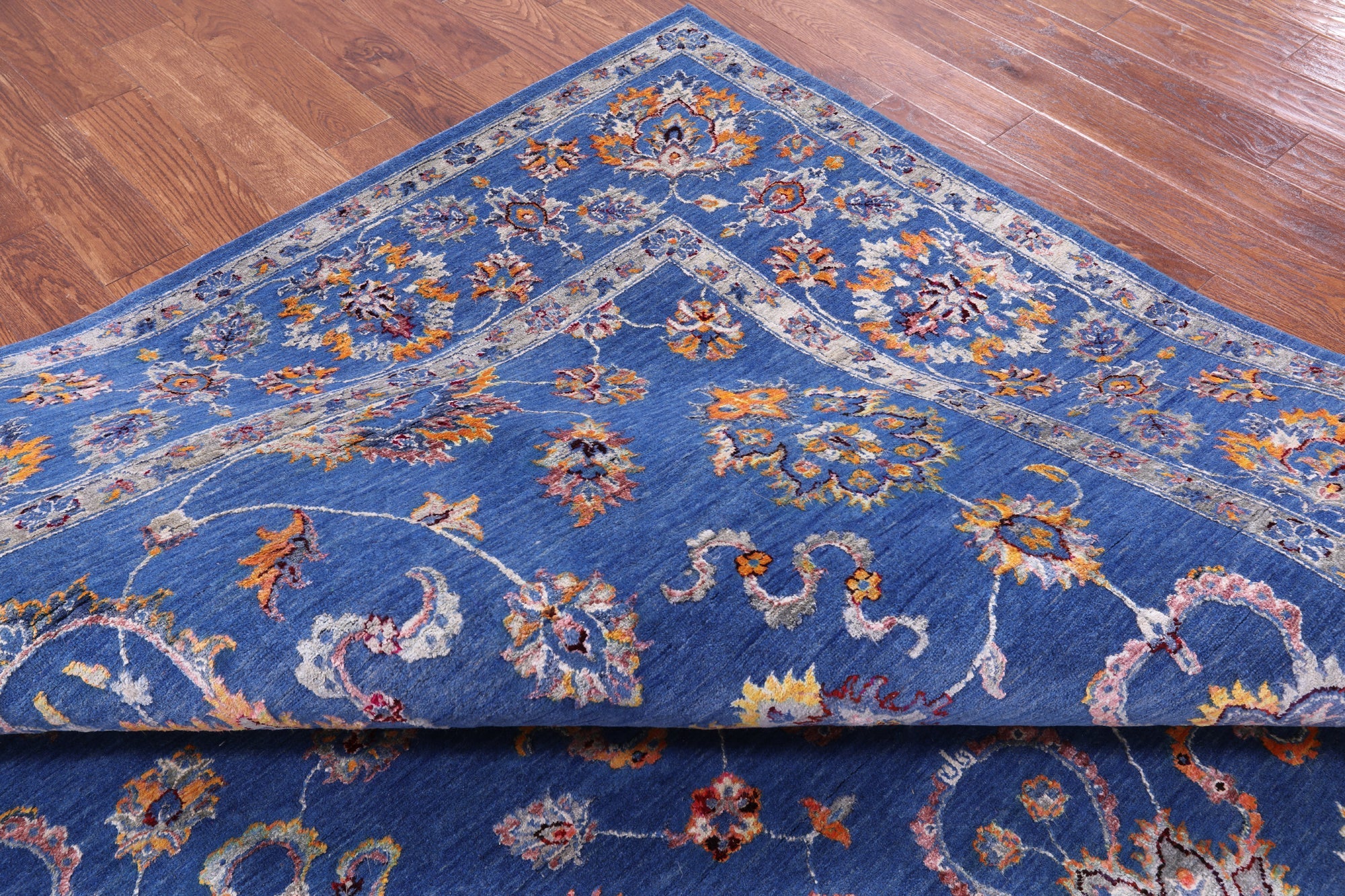 Blue 9' 1" X 11' 11" Wool & Silk Persian Tabriz Hand Knotted Rug - Q12089