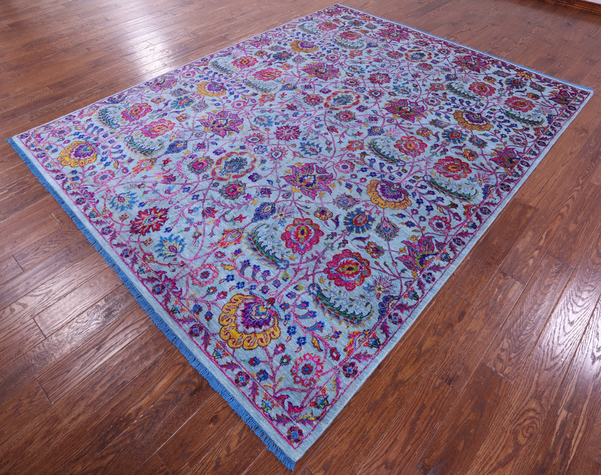 Blue 8' 0" X 10' 3" Wool & Silk Persian Tabriz Hand-Knotted Rug - Q21555 is backordered and will ship as soon as it is back in stock.