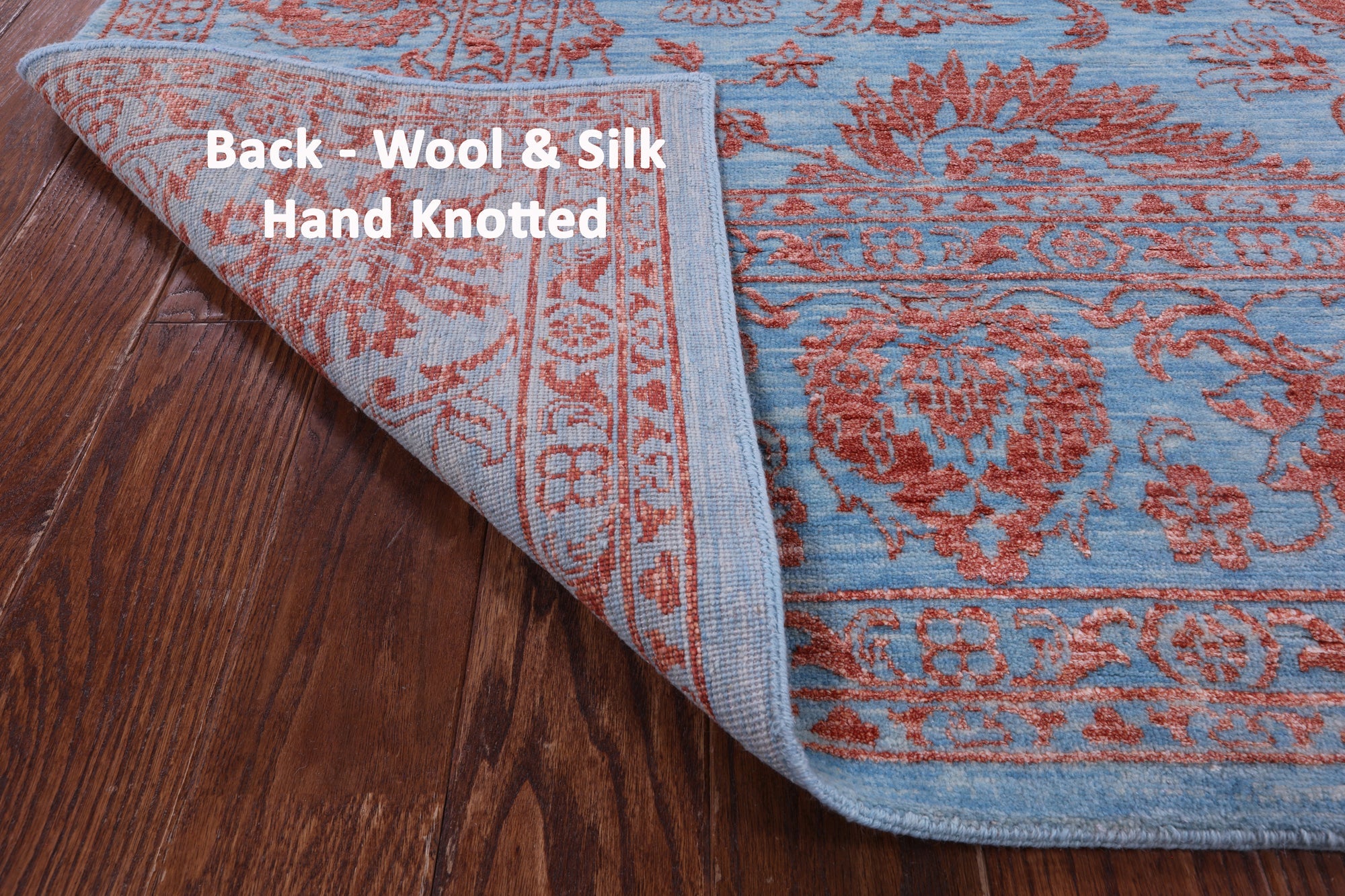 Blue 8' 0" X 10' 0" Wool & Silk Persian Tabriz Hand Knotted Rug - Q22428