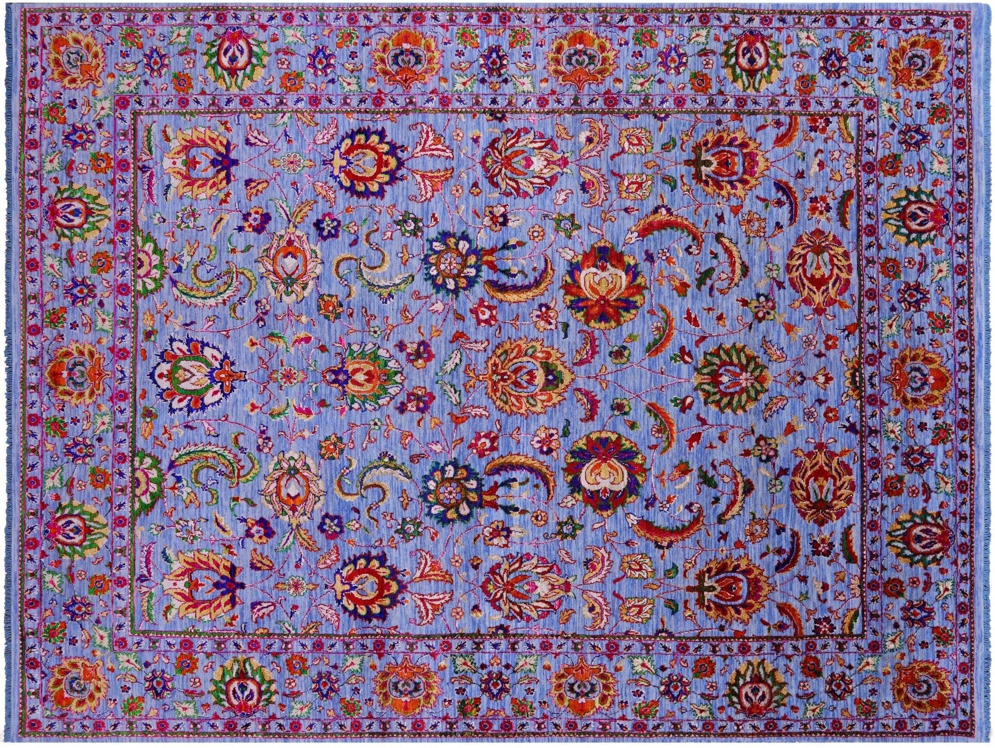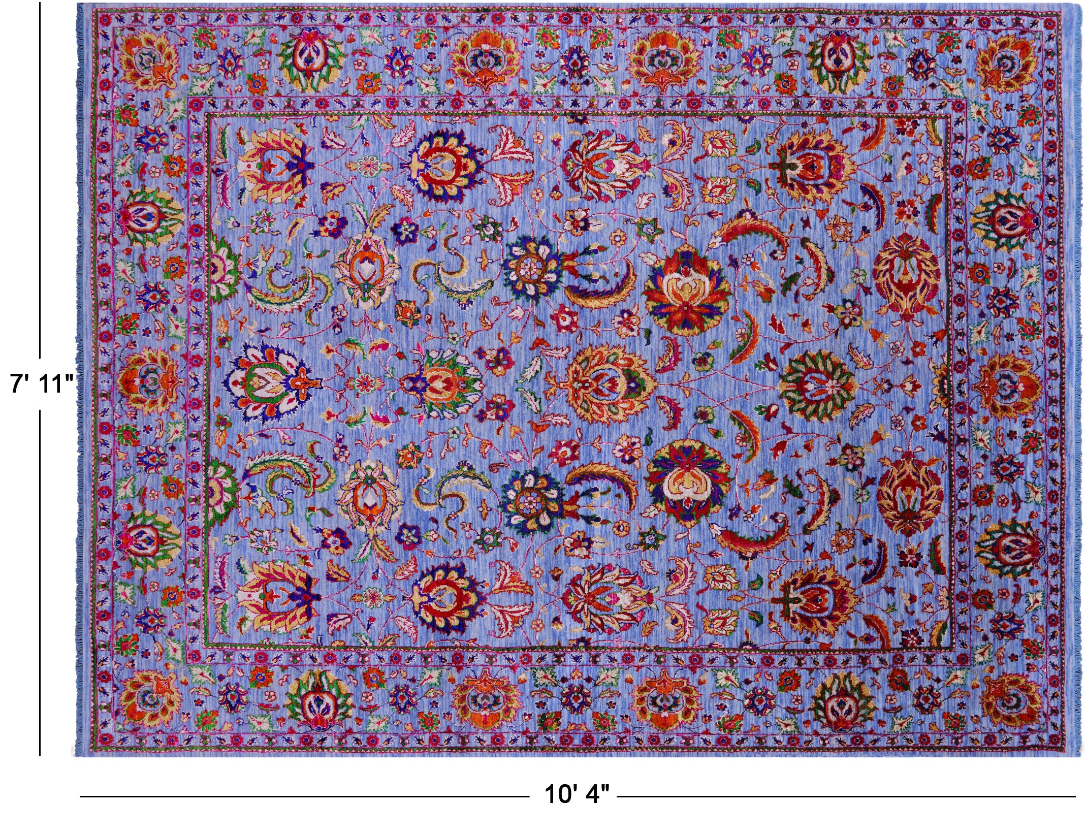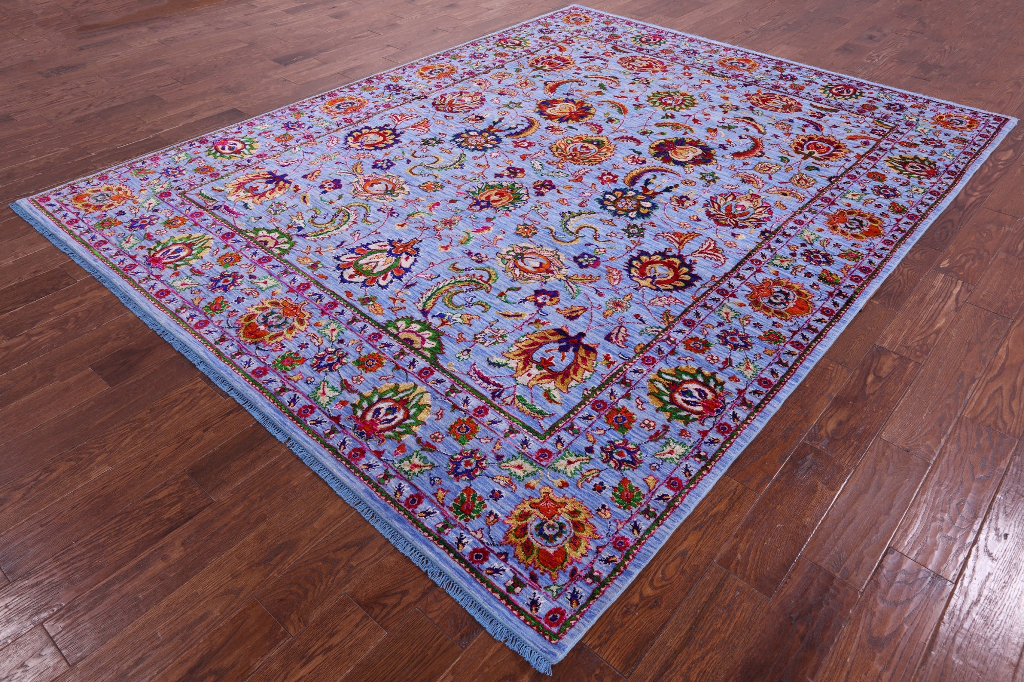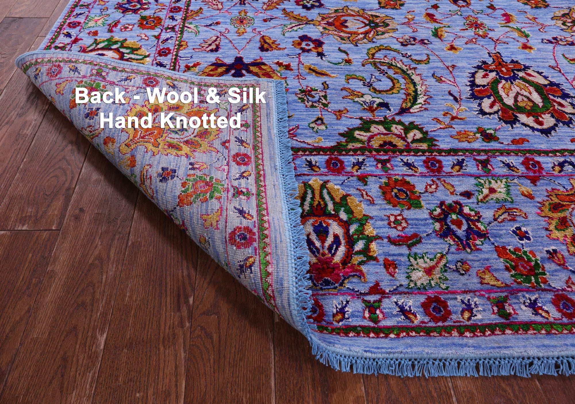 Blue 7' 11" X 10' 4" Wool & Silk Persian Tabriz Hand Knotted Rug - Q22529