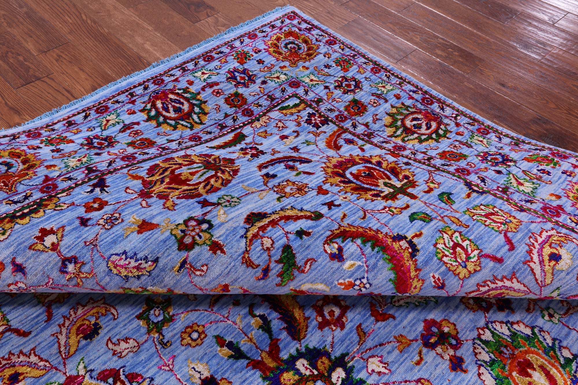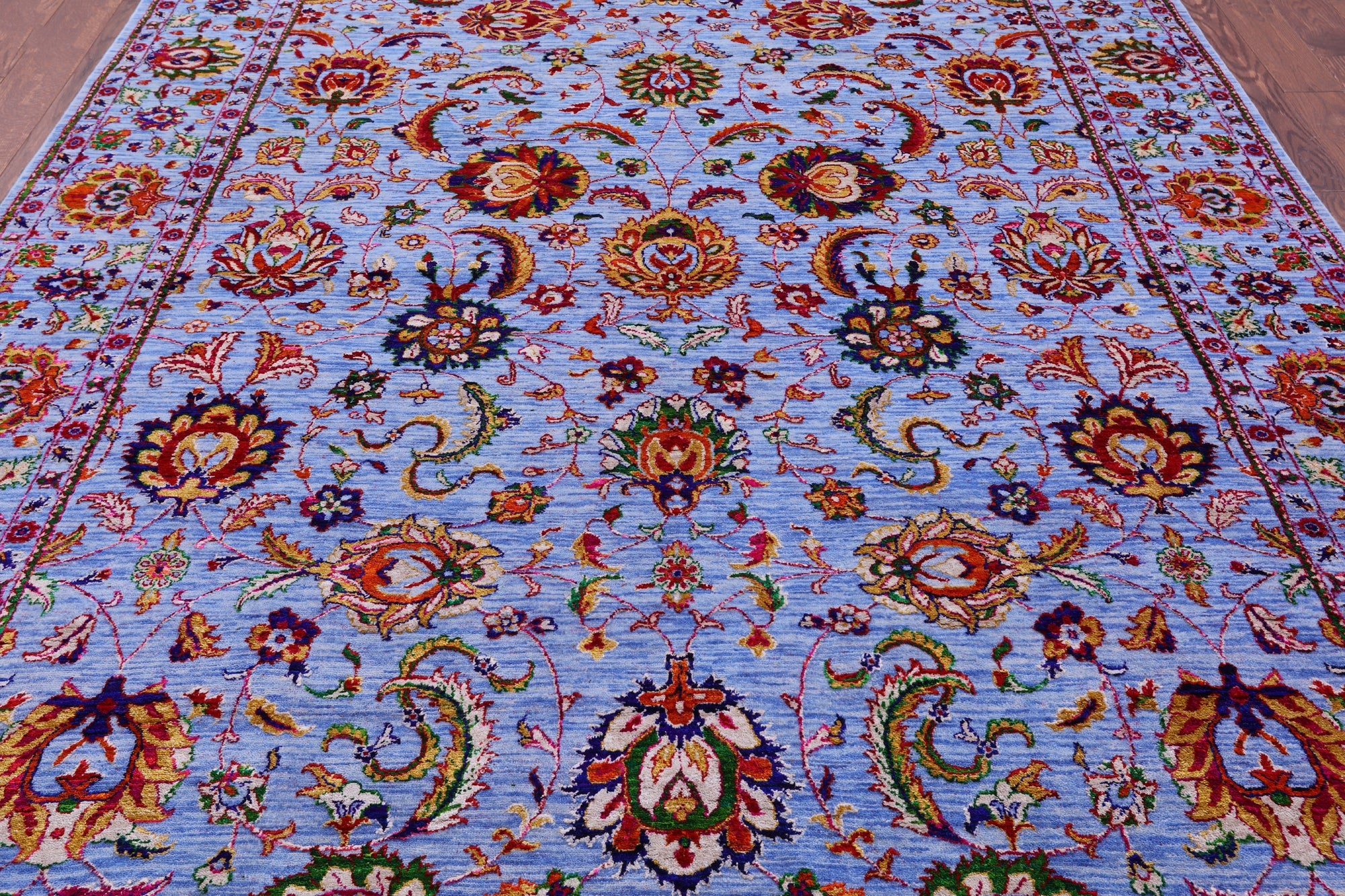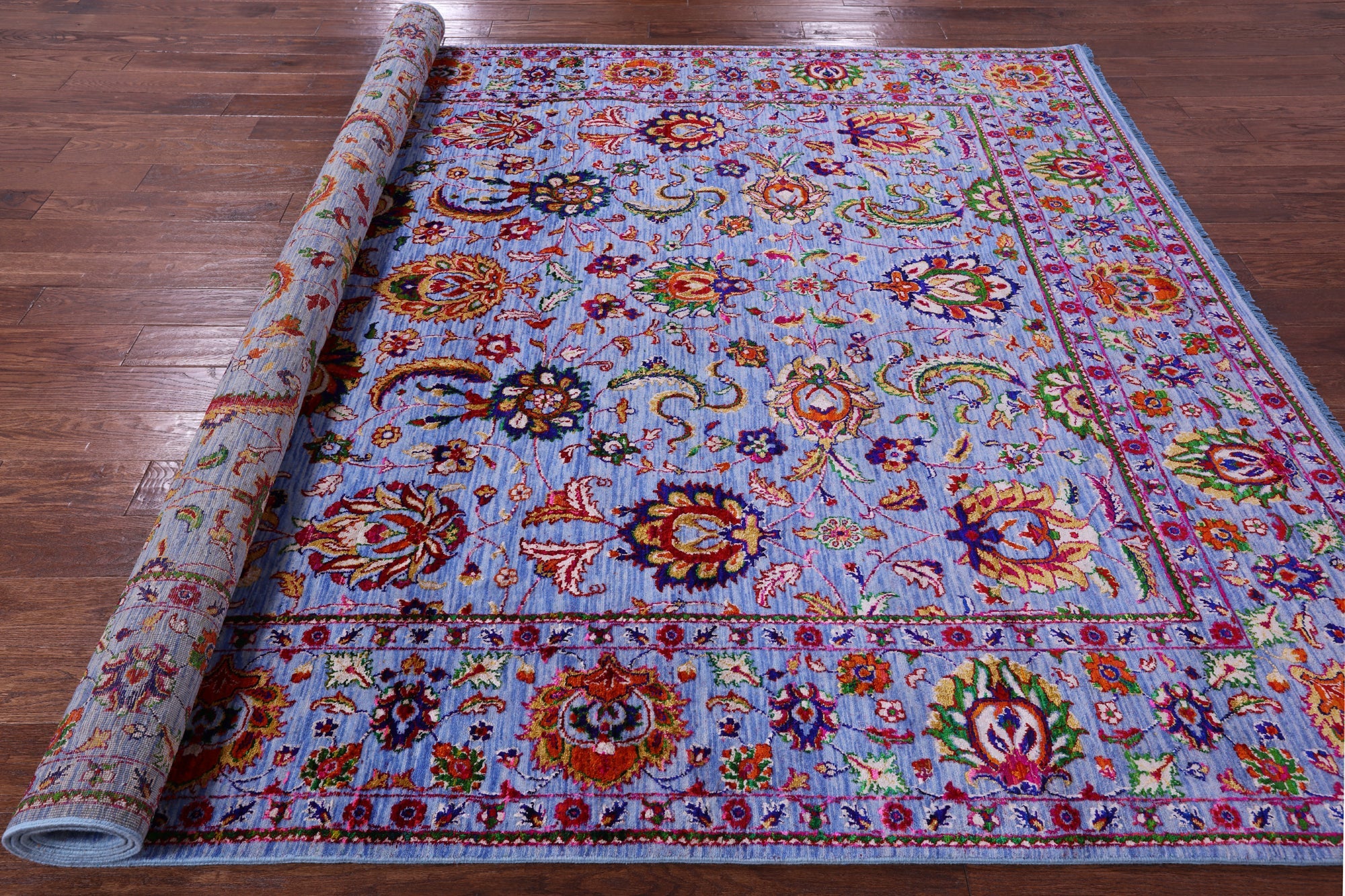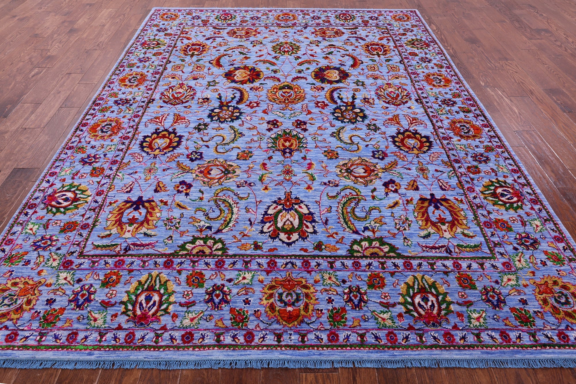 Blue 7' 11" X 10' 4" Wool & Silk Persian Tabriz Hand Knotted Rug - Q22529