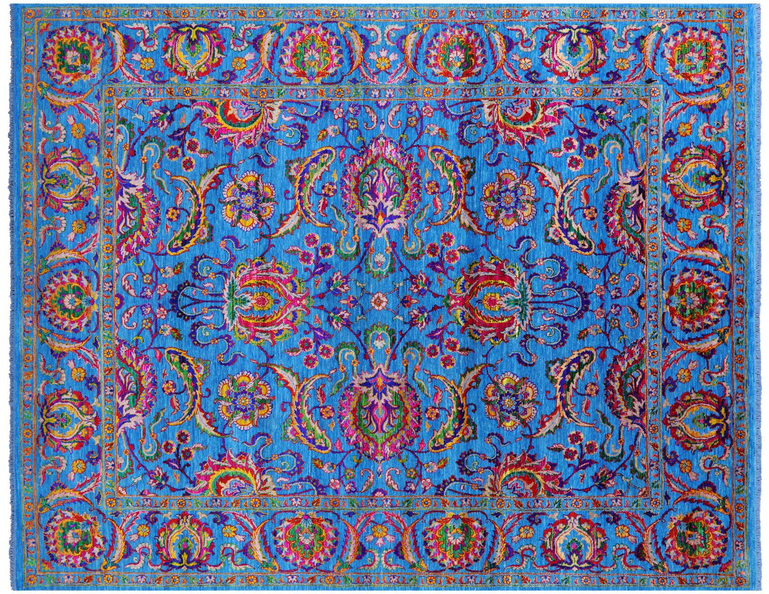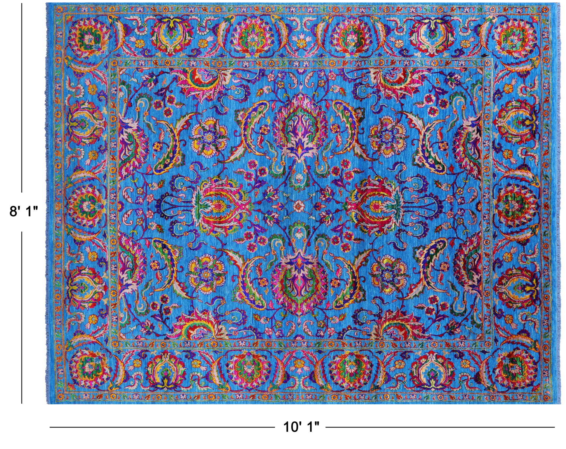 Blue 8' 1" X 10' 1" Wool & Silk Persian Tabriz Handmade Rug - Q23426