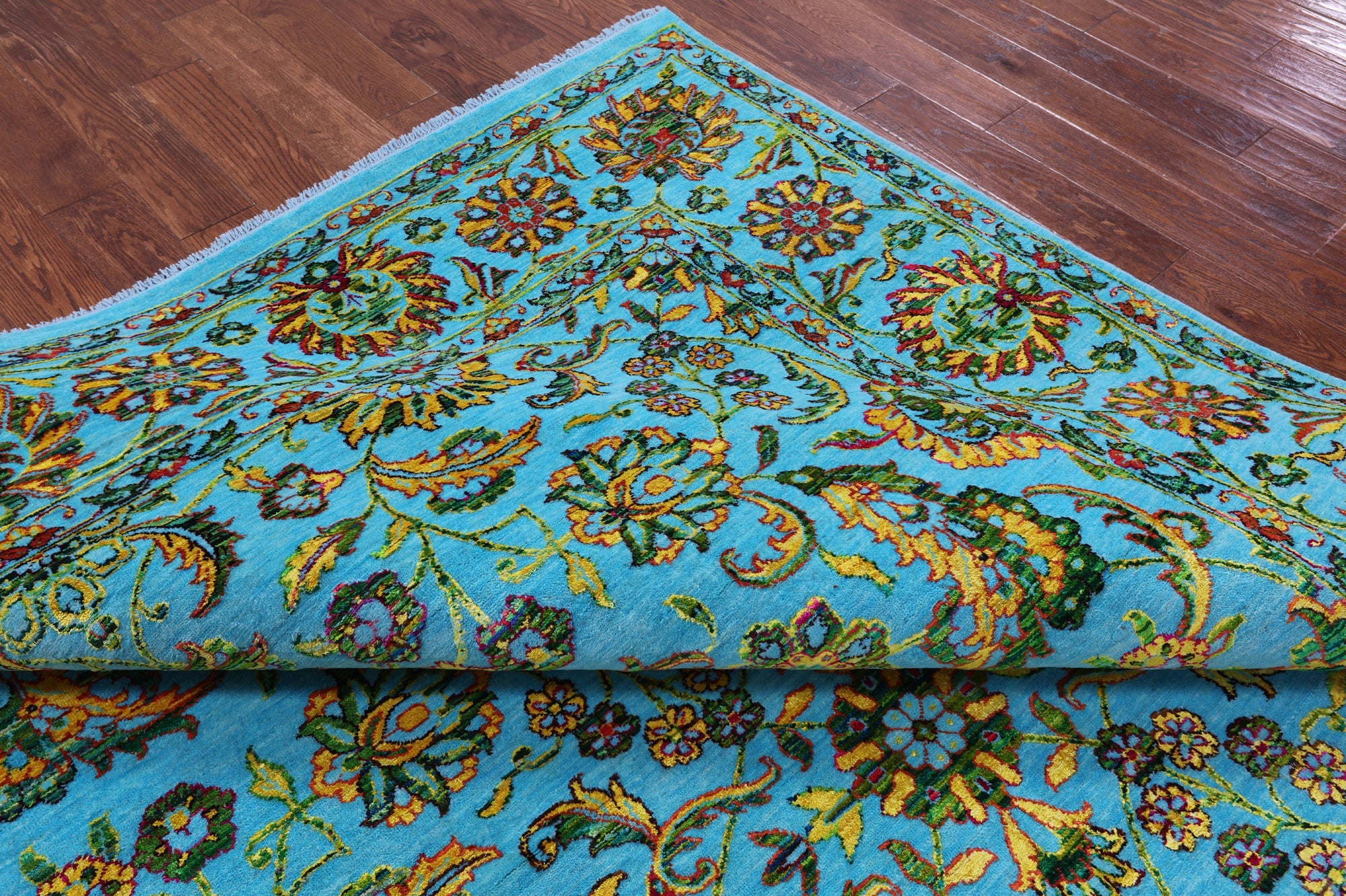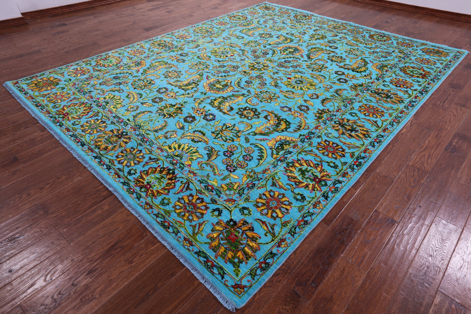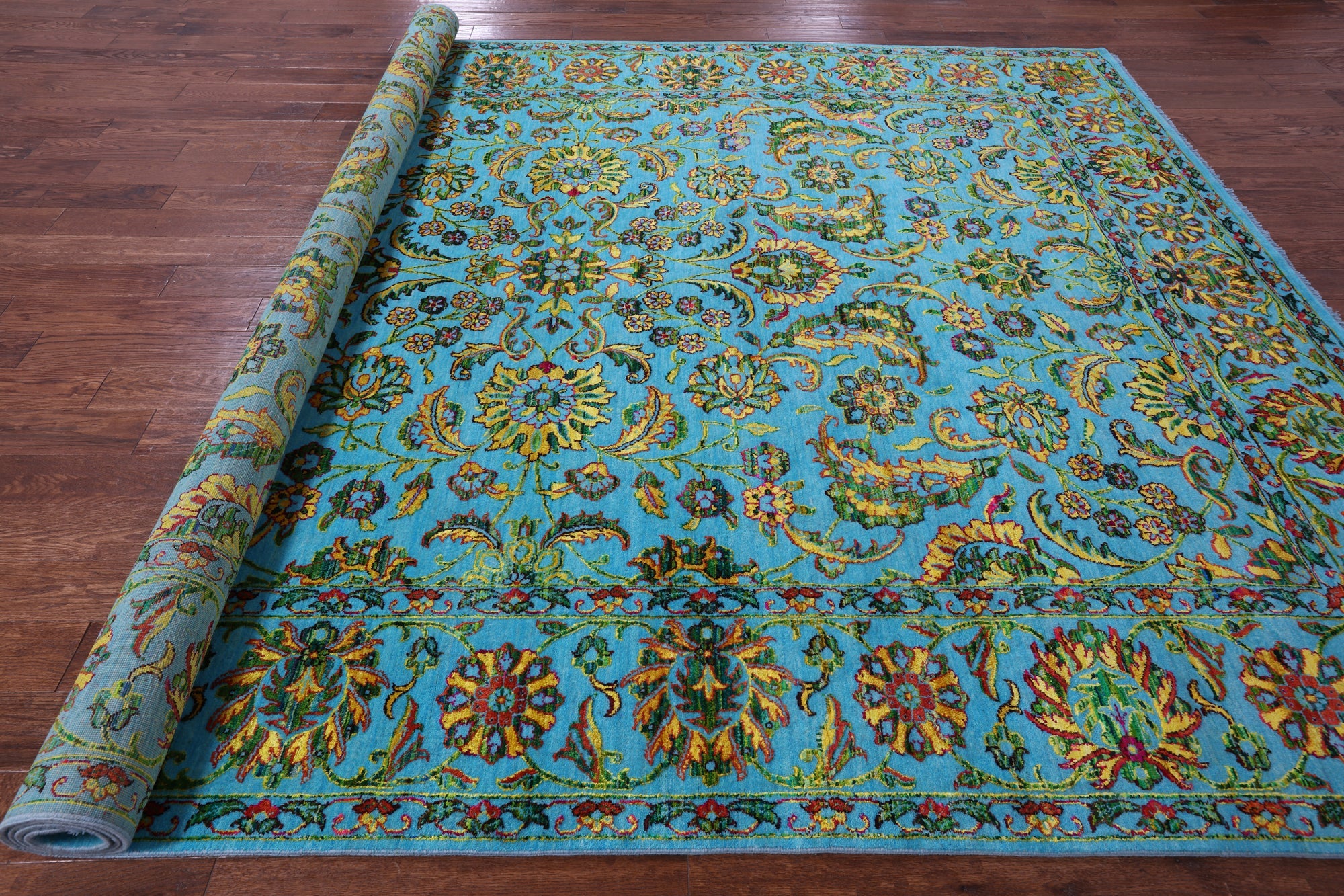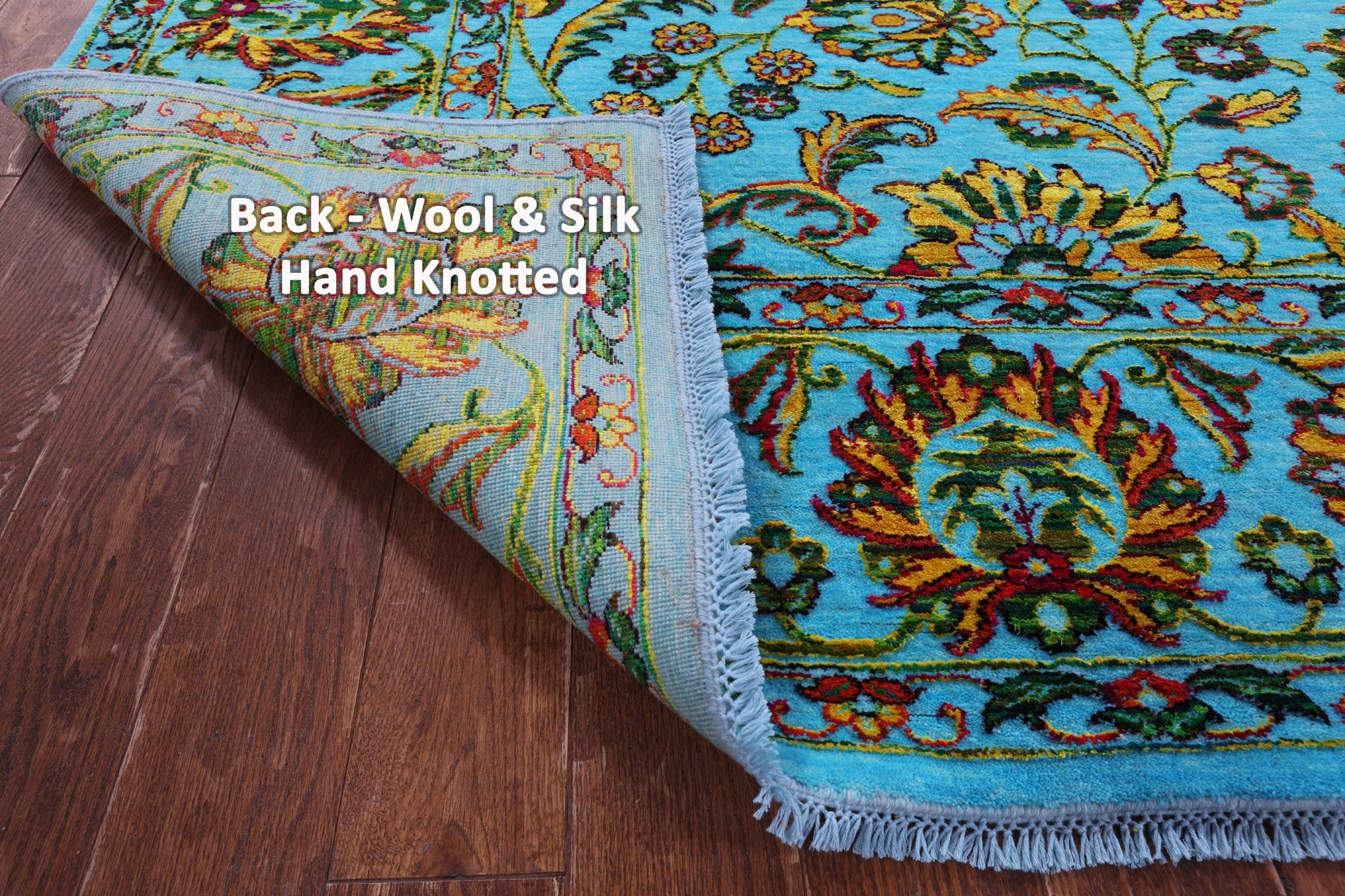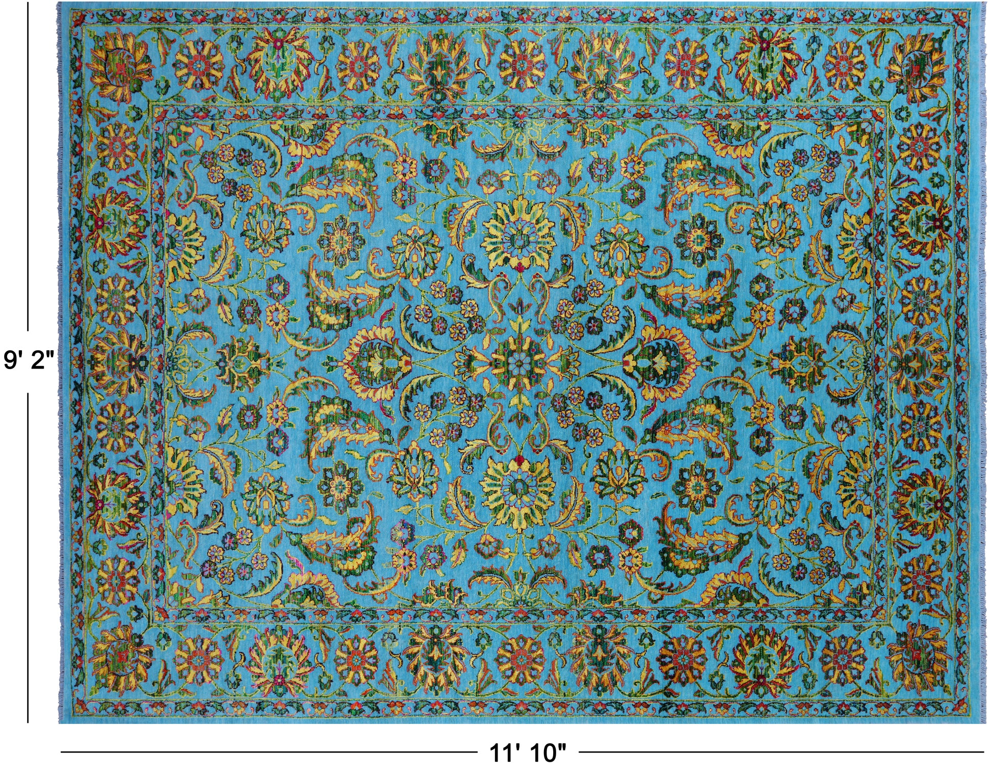 Blue 9' 2" X 11' 10" Wool & Silk Persian Tabriz Handmade Rug - Q23432