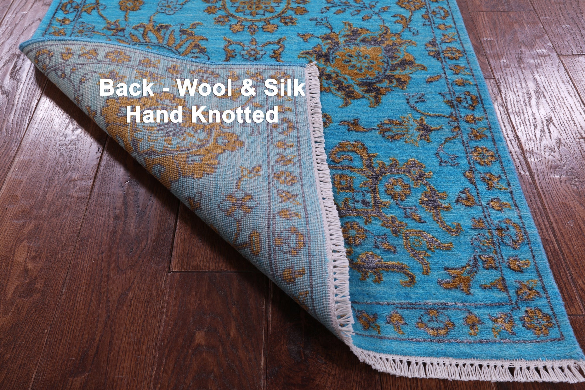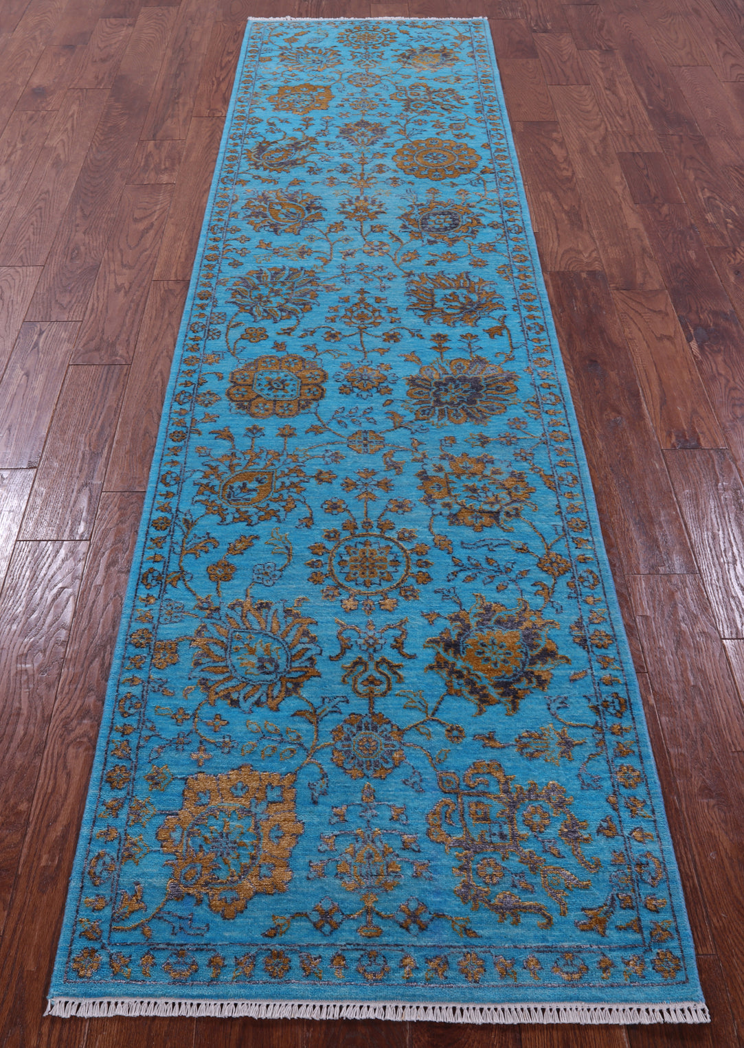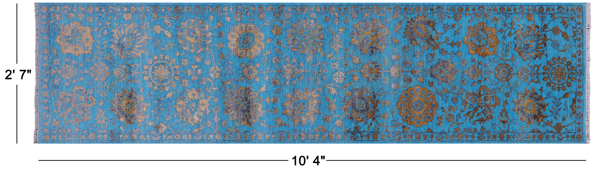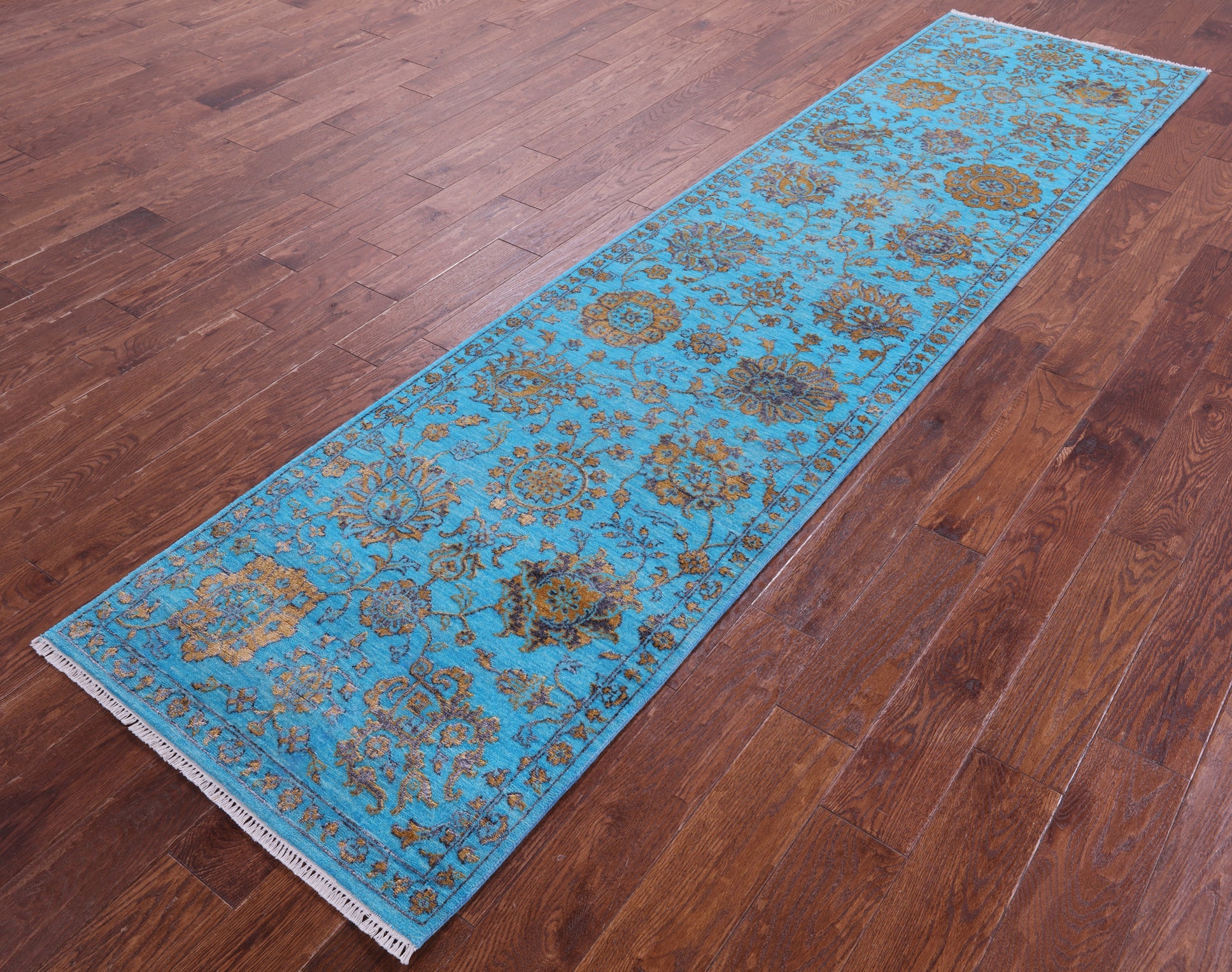 Blue 2' 7" X 10' 4" Wool & Silk Persian Tabriz Handmade Runner Rug - Q23485 is backordered and will ship as soon as it is back in stock.