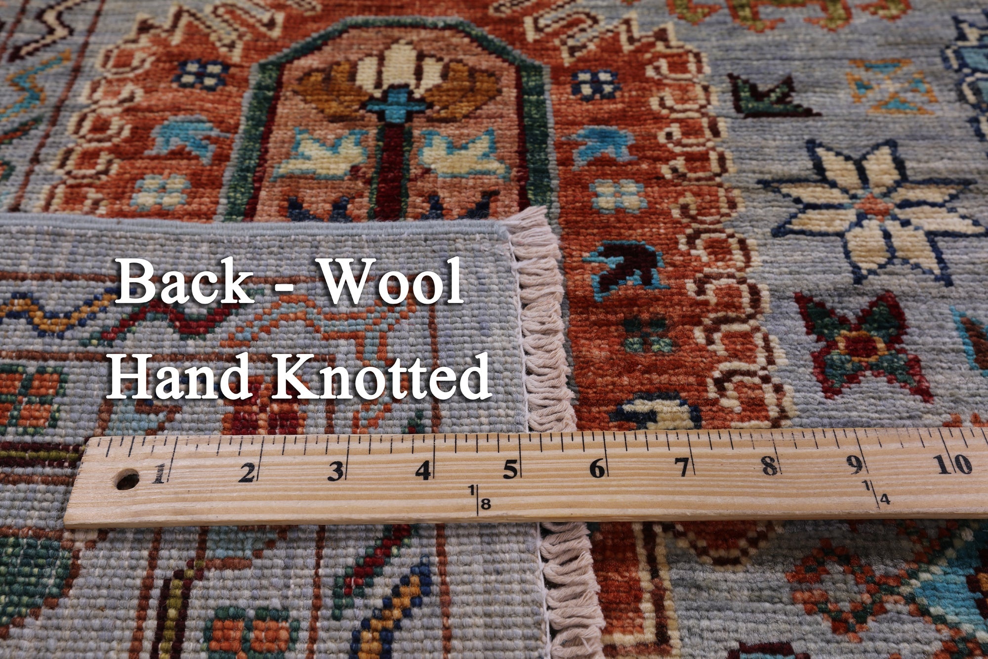 This is a genuine hand knotted cut pile rug, not tufted, hooked, or machine made. All we do is hand knotted.