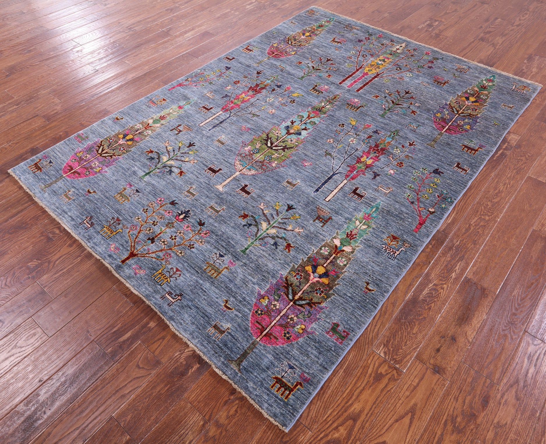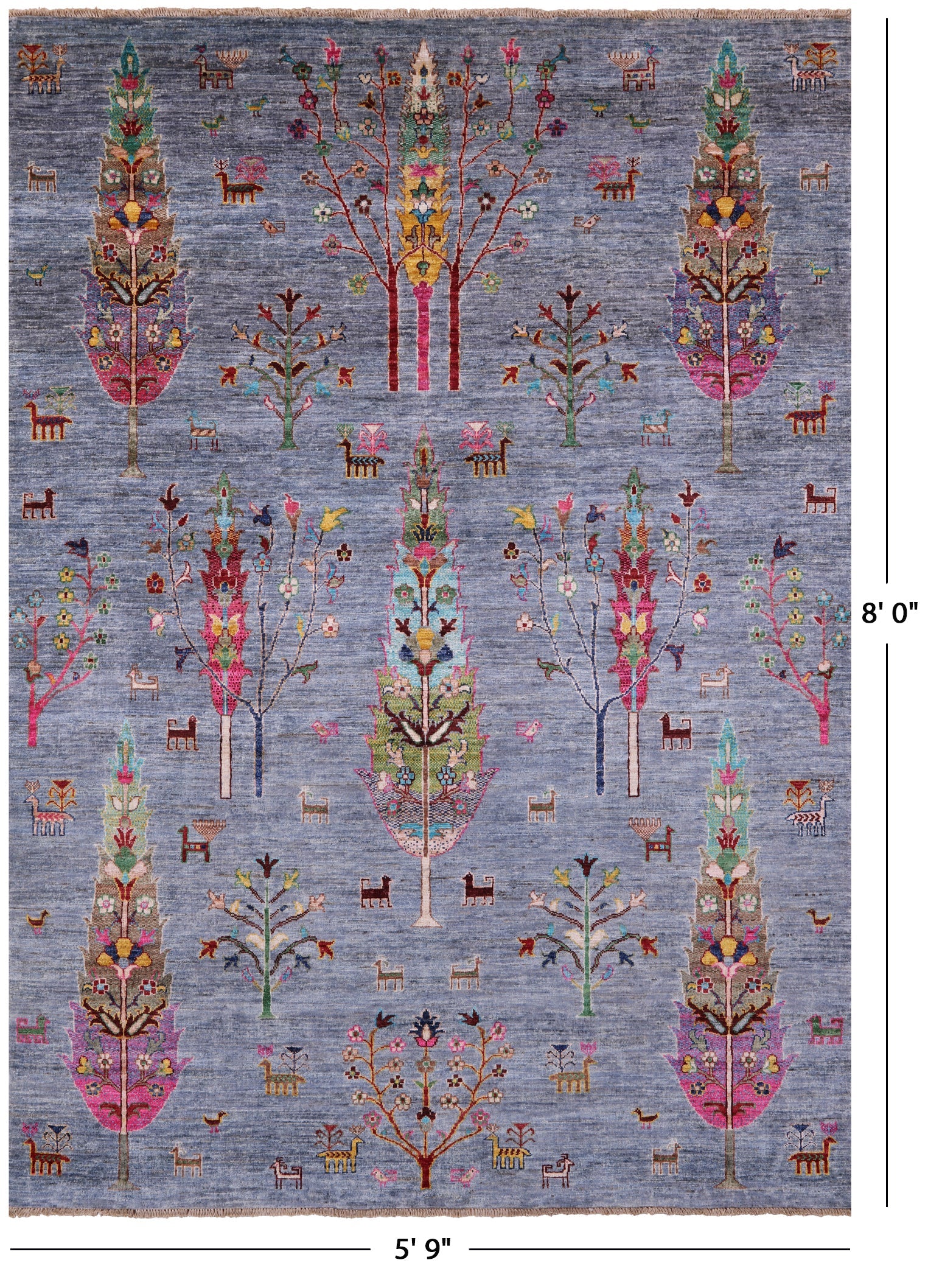 5' 9" X 8' 0" Hand-Knotted Tribal Persian Gabbeh Wool Rug - Q18291 is backordered and will ship as soon as it is back in stock.