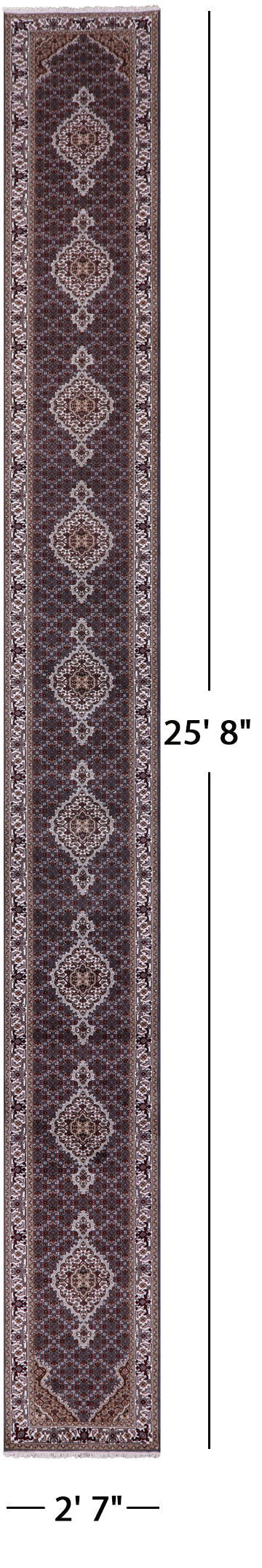 2' 7" X 25' 8" Hand Knotted Wool & Silk Persian Tabriz Runner Rug - Q8947