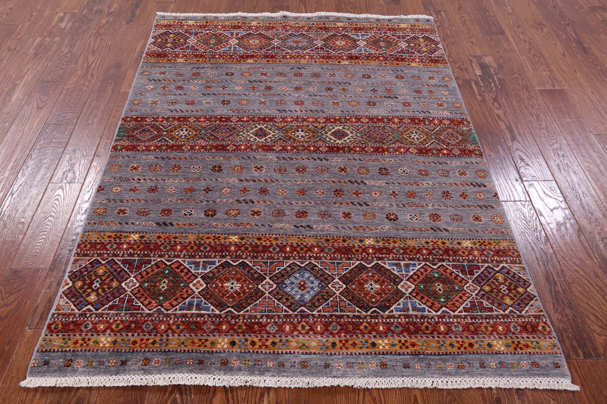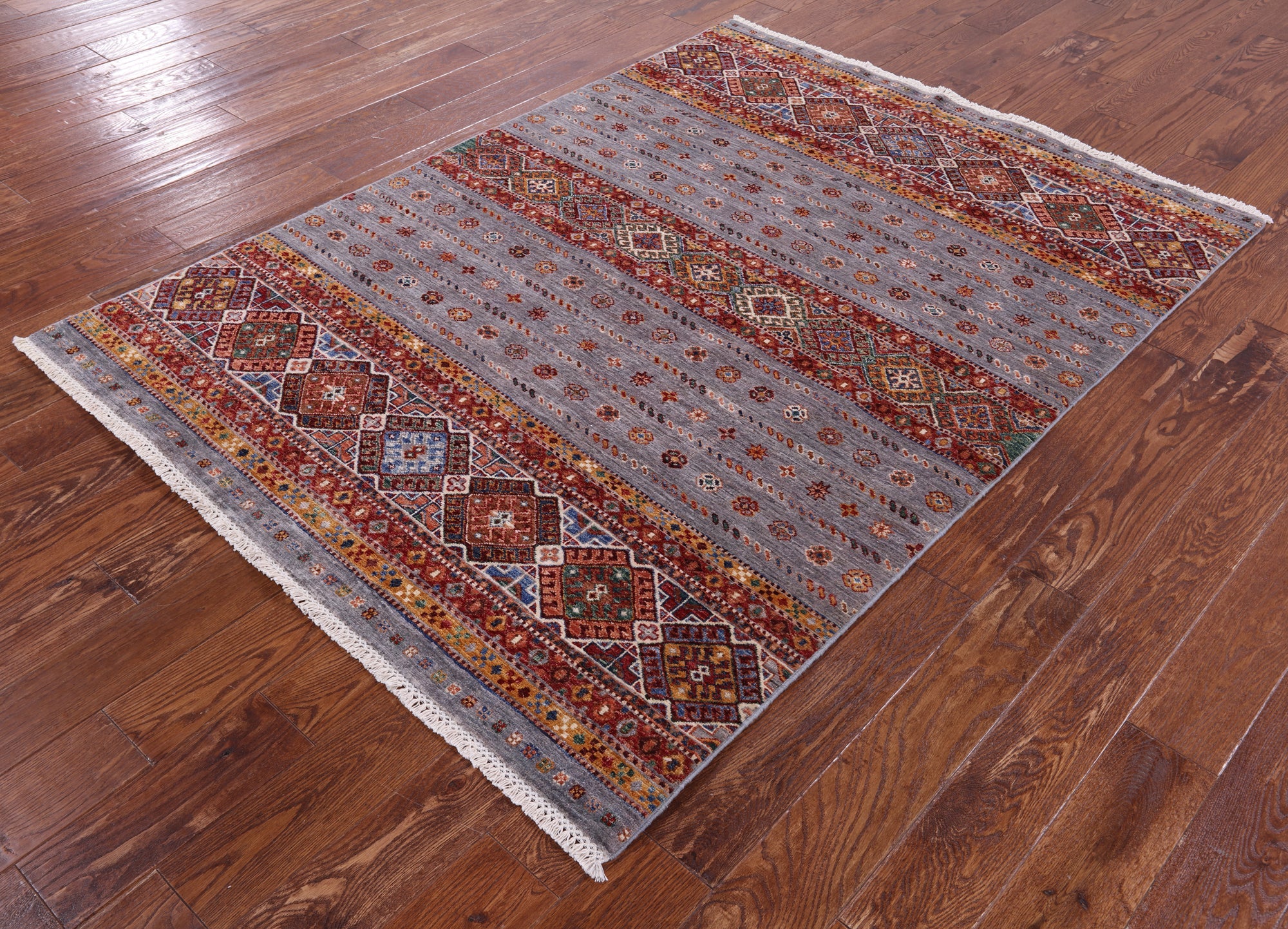 4' 10" X 6' 7" Handmade Khorjin Super Kazak Wool Rug - Q11204 is backordered and will ship as soon as it is back in stock.