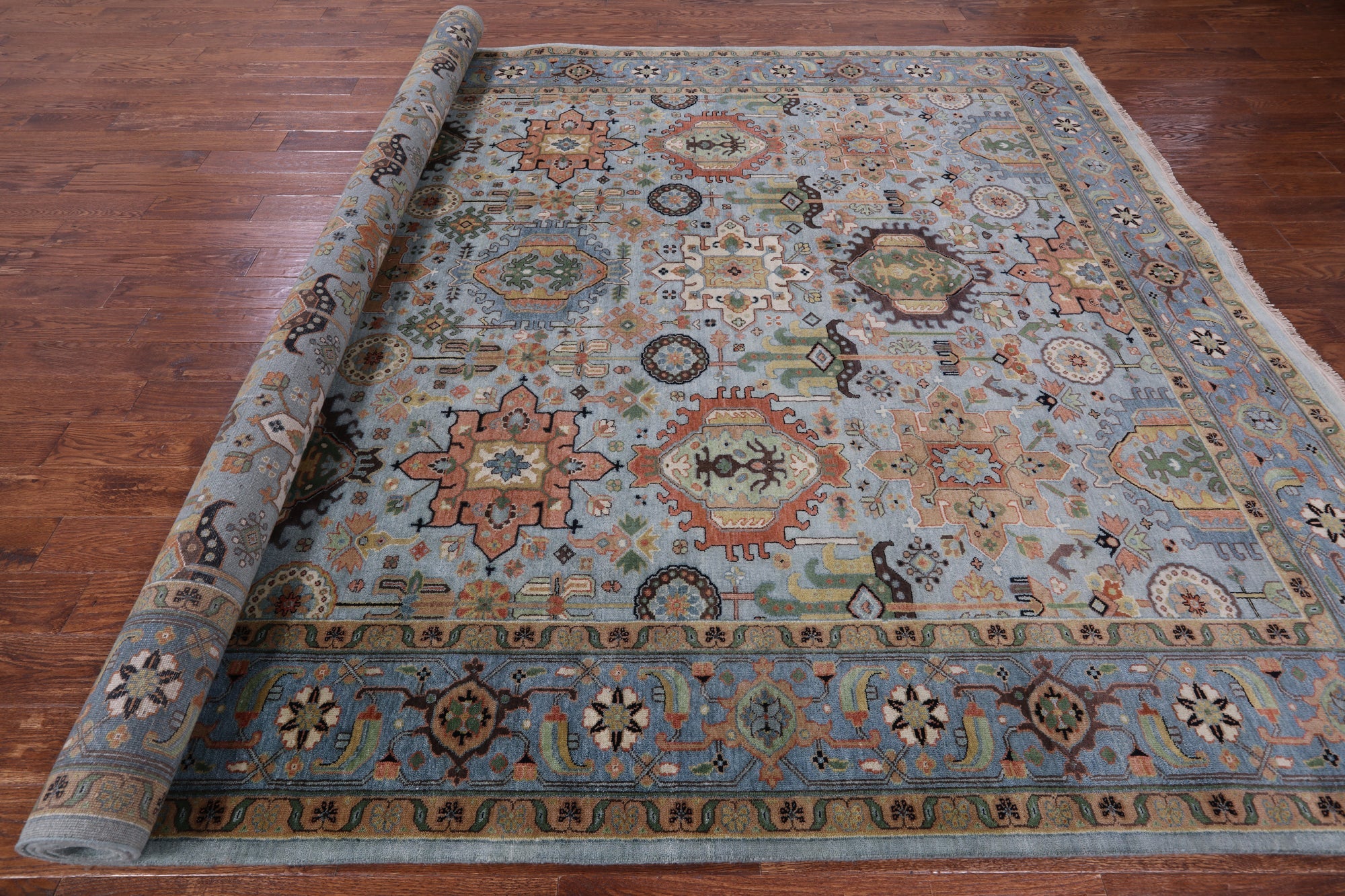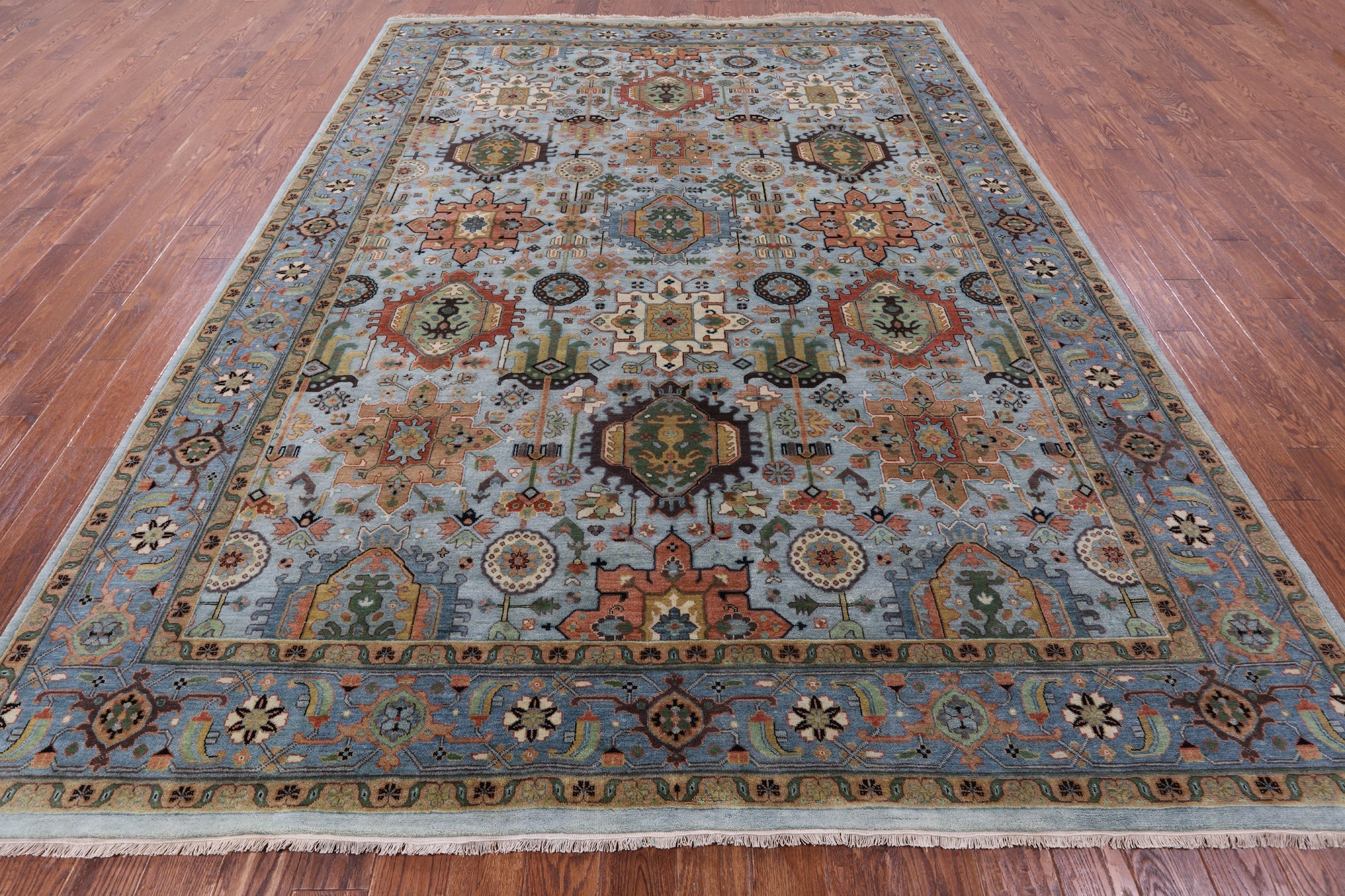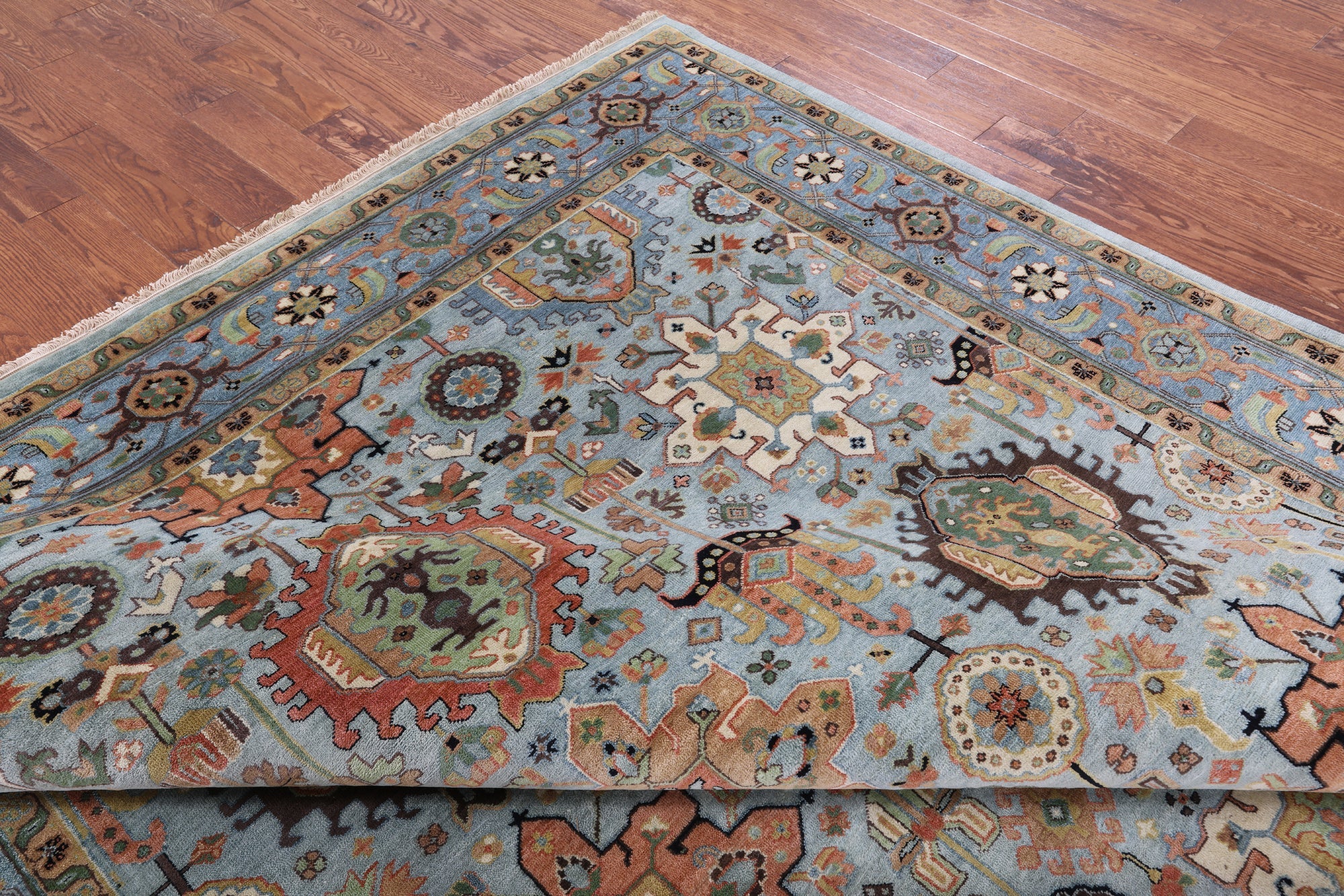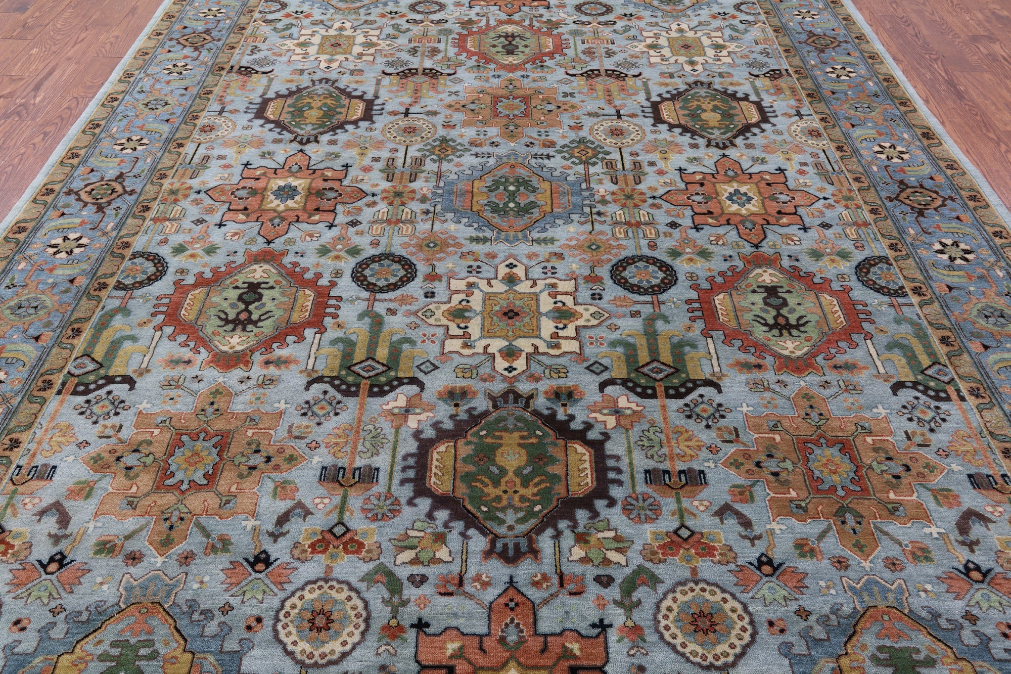 Heriz, Serapi rugs are well known for their bold and angular designs. Many being symmetric, they withhold boldly done geometric and floral-inspired shapes. These shapes are brought out with rich reds, blues, greens, and yellows contrasted against ivory. Heriz, Serapi rugs are very elegant and durable, perfect for a variety of different rooms and spaces within a home.