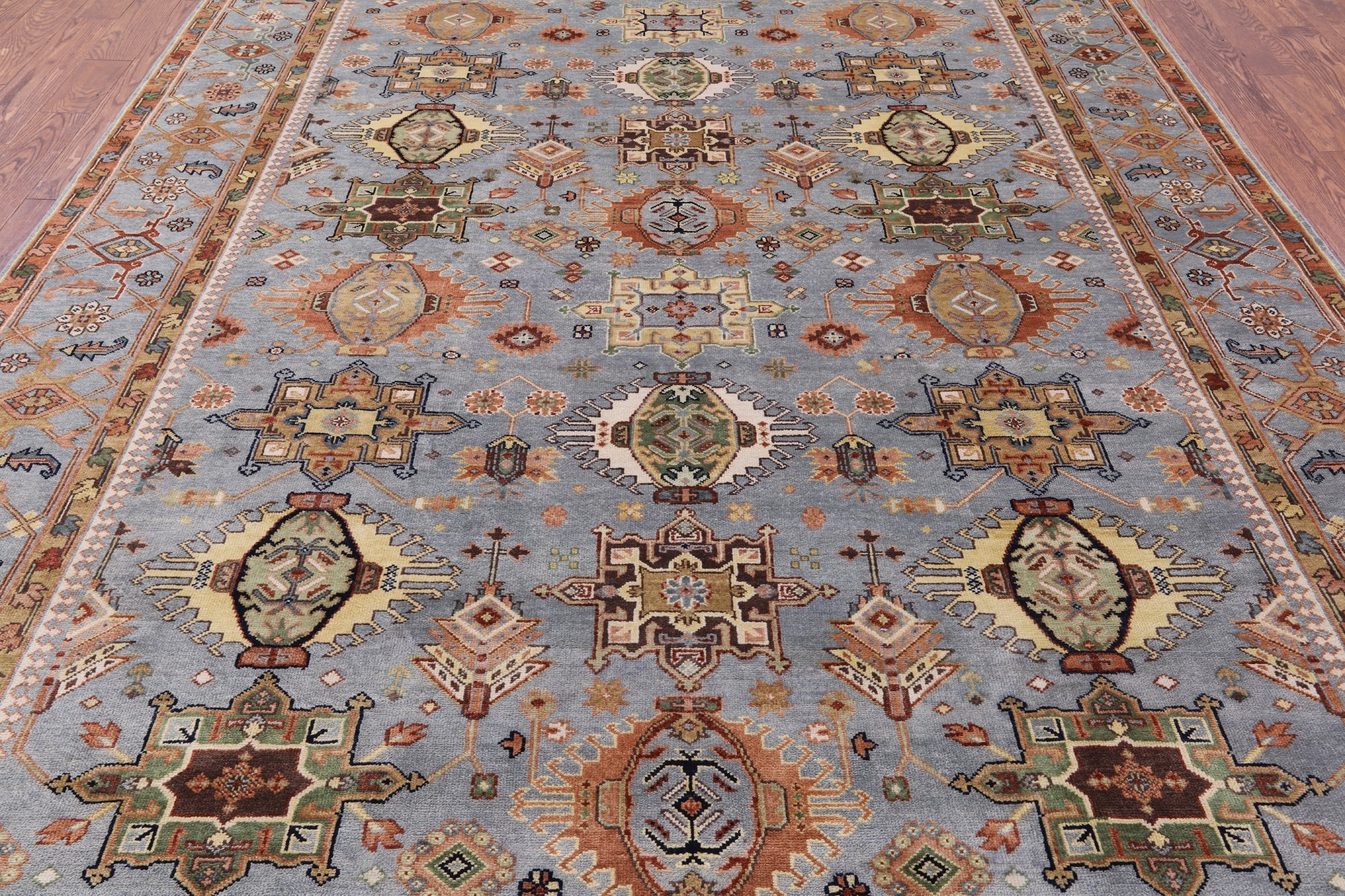 Heriz, Serapi rugs are well known for their bold and angular designs. Many being symmetric, they withhold boldly done geometric and floral-inspired shapes. These shapes are brought out with rich reds, blues, greens, and yellows contrasted against ivory. Heriz, Serapi rugs are very elegant and durable, perfect for a variety of different rooms and spaces within a home.