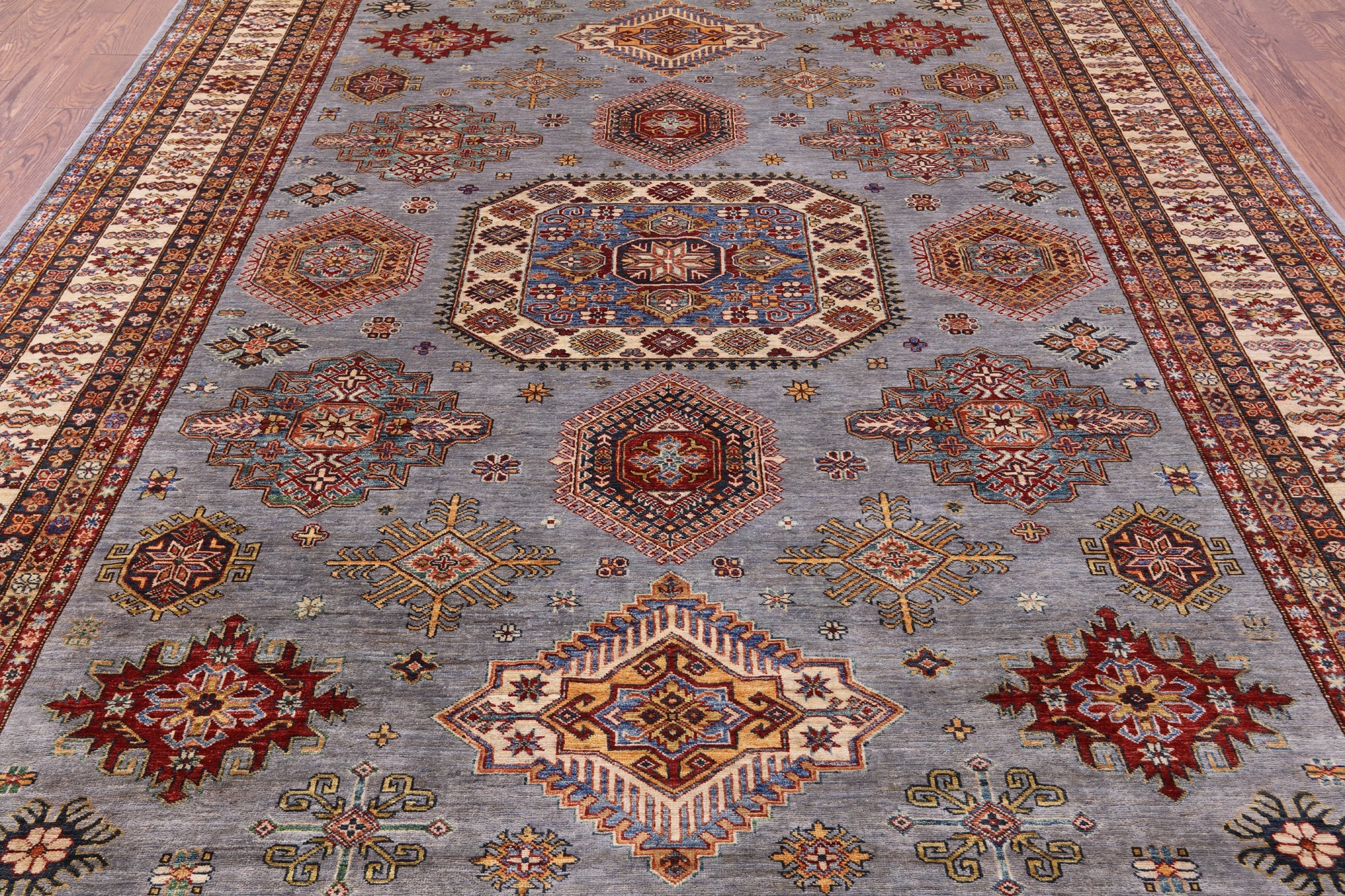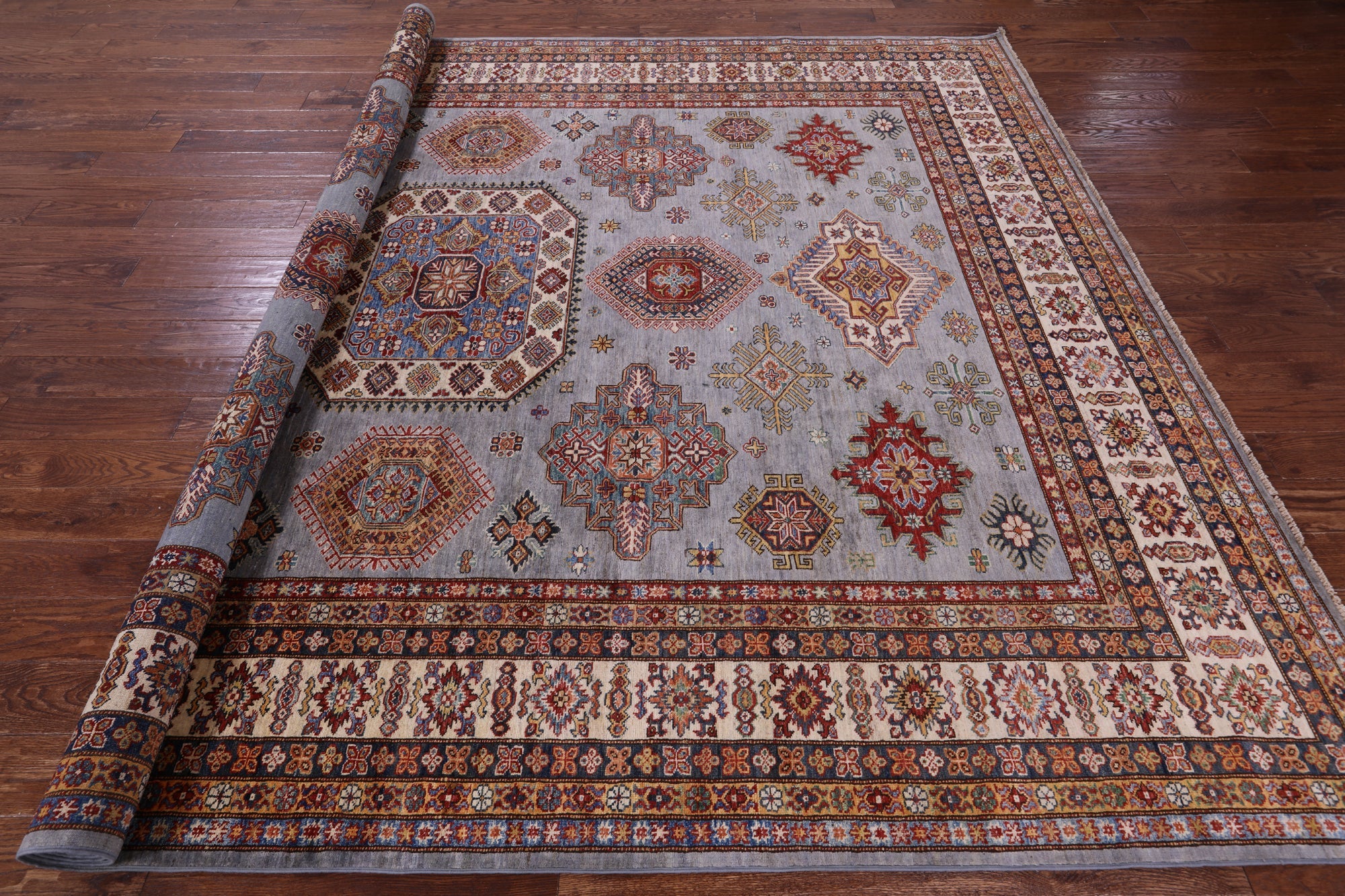 Super Kazak rugs were woven in the south of Caucasus and are very regional in their designs. Super Kazak rugs are very traditional in look and the patterns can vary from geometric shapes, tribal designs like people and animals, and symbolic medallions. They are beautifully intricate and heavy in design. These rugs come in varieties of rich, warm, jewel tones that can liven up any space.