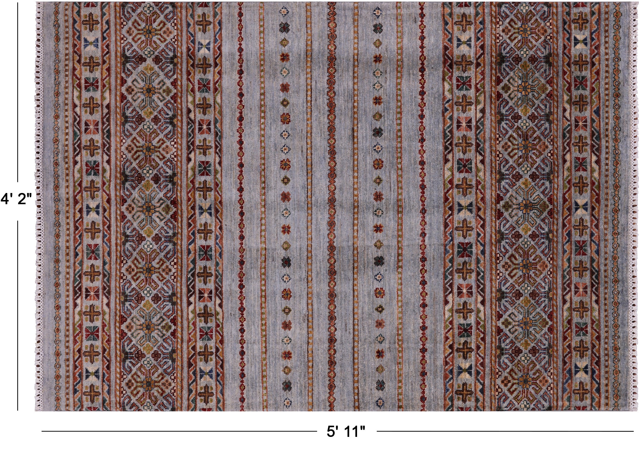 4' 2" X 5' 11" Khorjin Super Kazak Hand-Knotted Rug - Q12514