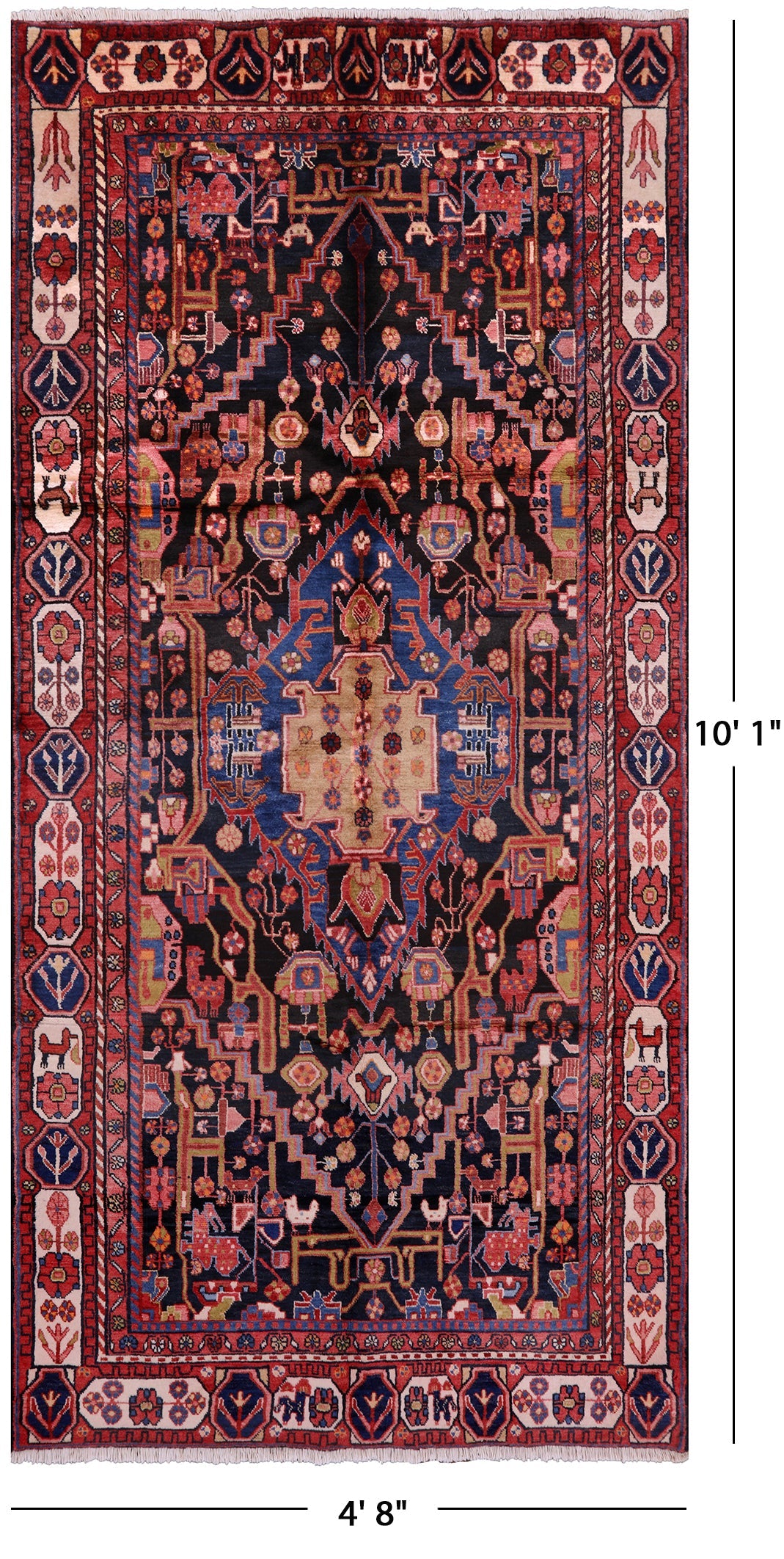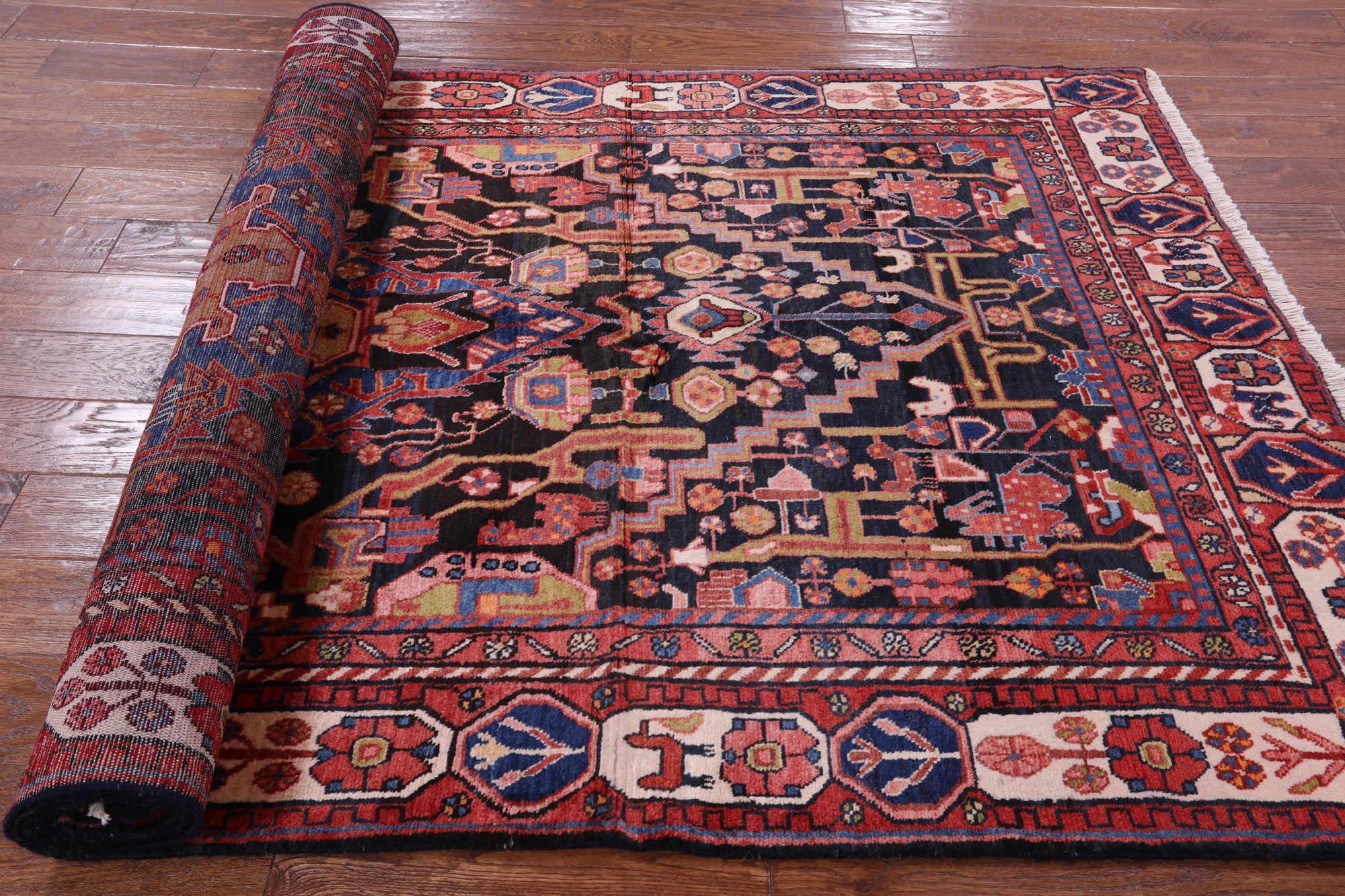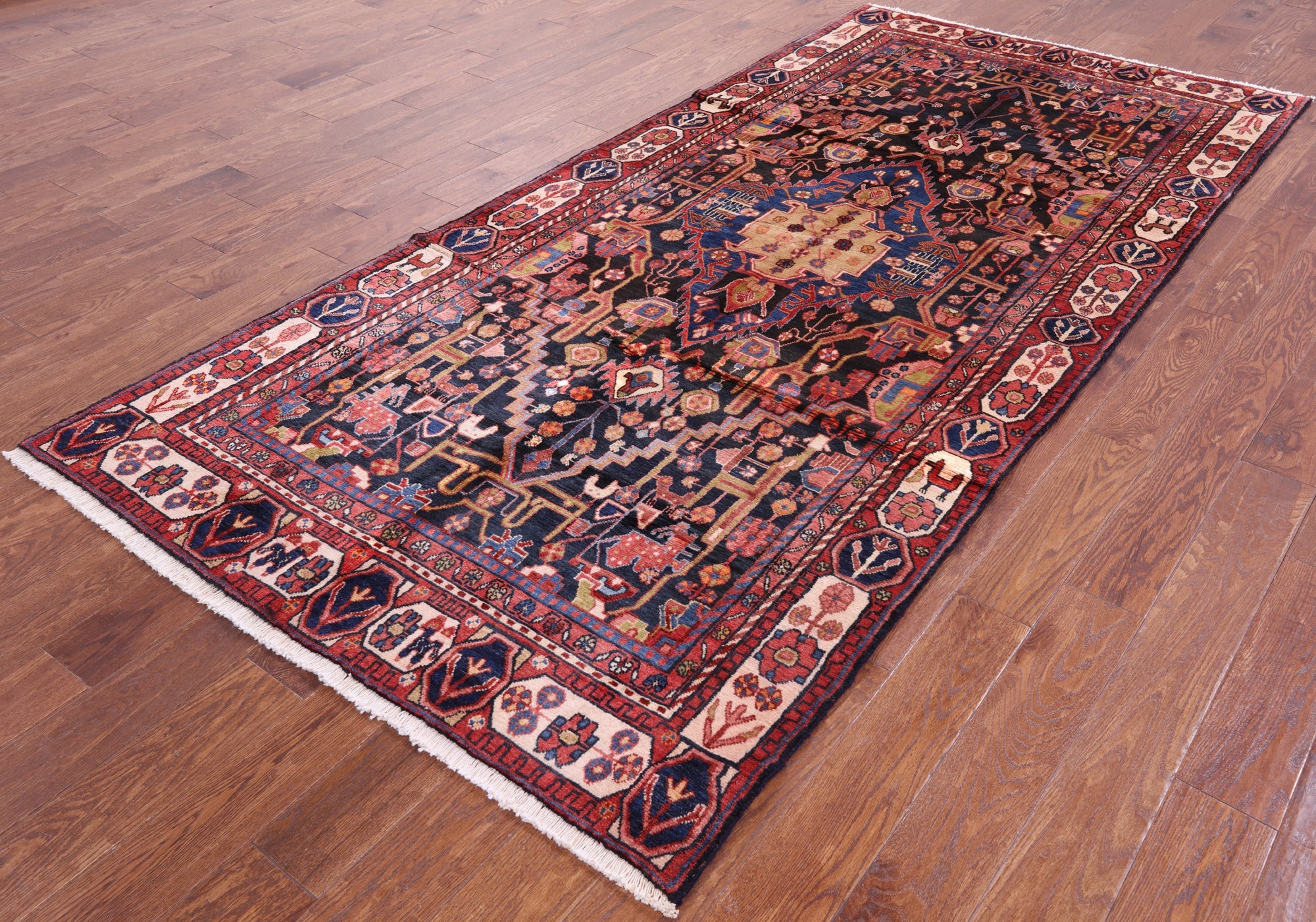 Nahavand rugs comes from the city of Nahavand in Persia. These rugs have a tribal style look, often using floral medallions and a variety of vegetable dyed colors such as reds, blues, greens and different shades of ivory. Nahavand rugs are made with very high quality wool, which gives it a shine. They are very durable rugs that will last a lifetime.