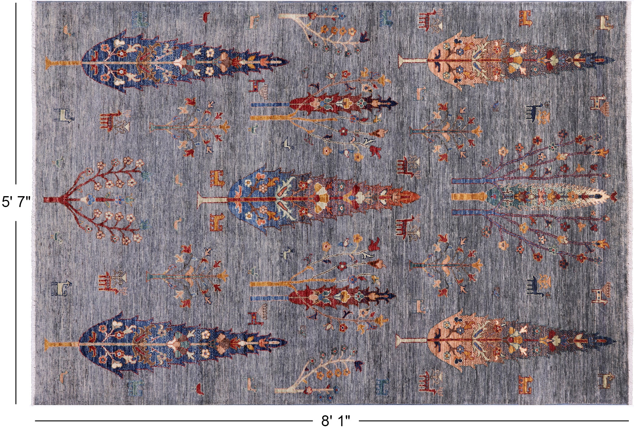 Persian Gabbeh Tribal Hand Knotted Wool Rug 5' 7" X 8' 1" - Q9972