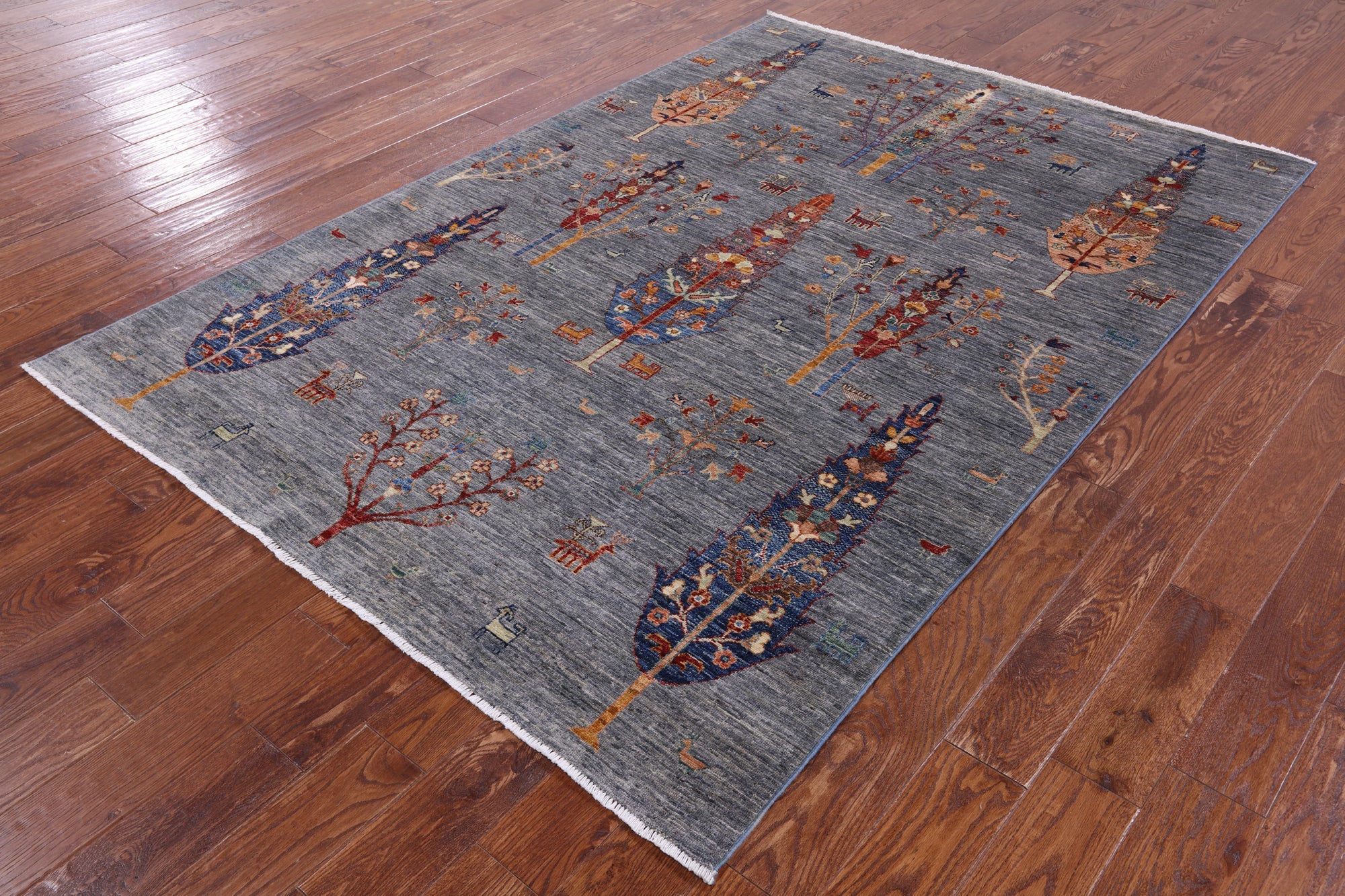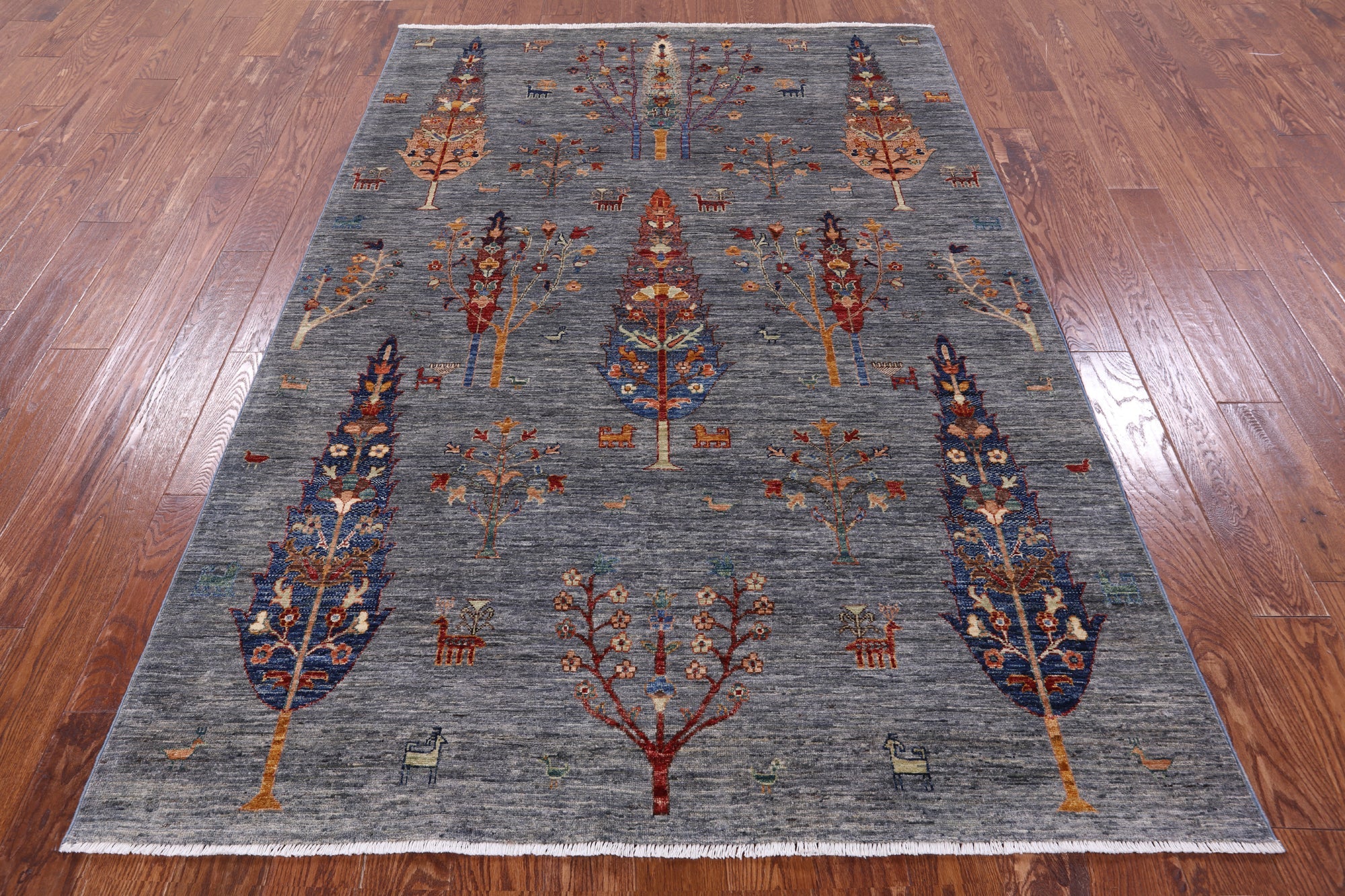 Gabbeh rugs are nothing short of simplistic and tribal, with designs consisting of primarily geometric shapes, animals, and plants. All done in a simplified way and based on the nomadic observation. Commonly brightly colored, these rugs are fun and beautiful and will add a warm touch to any home.