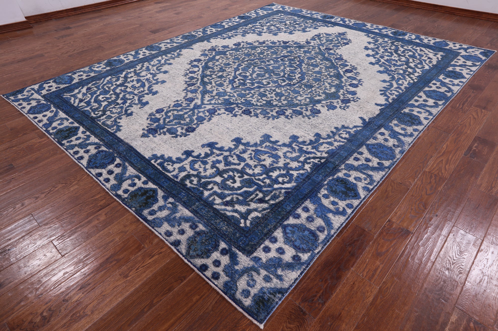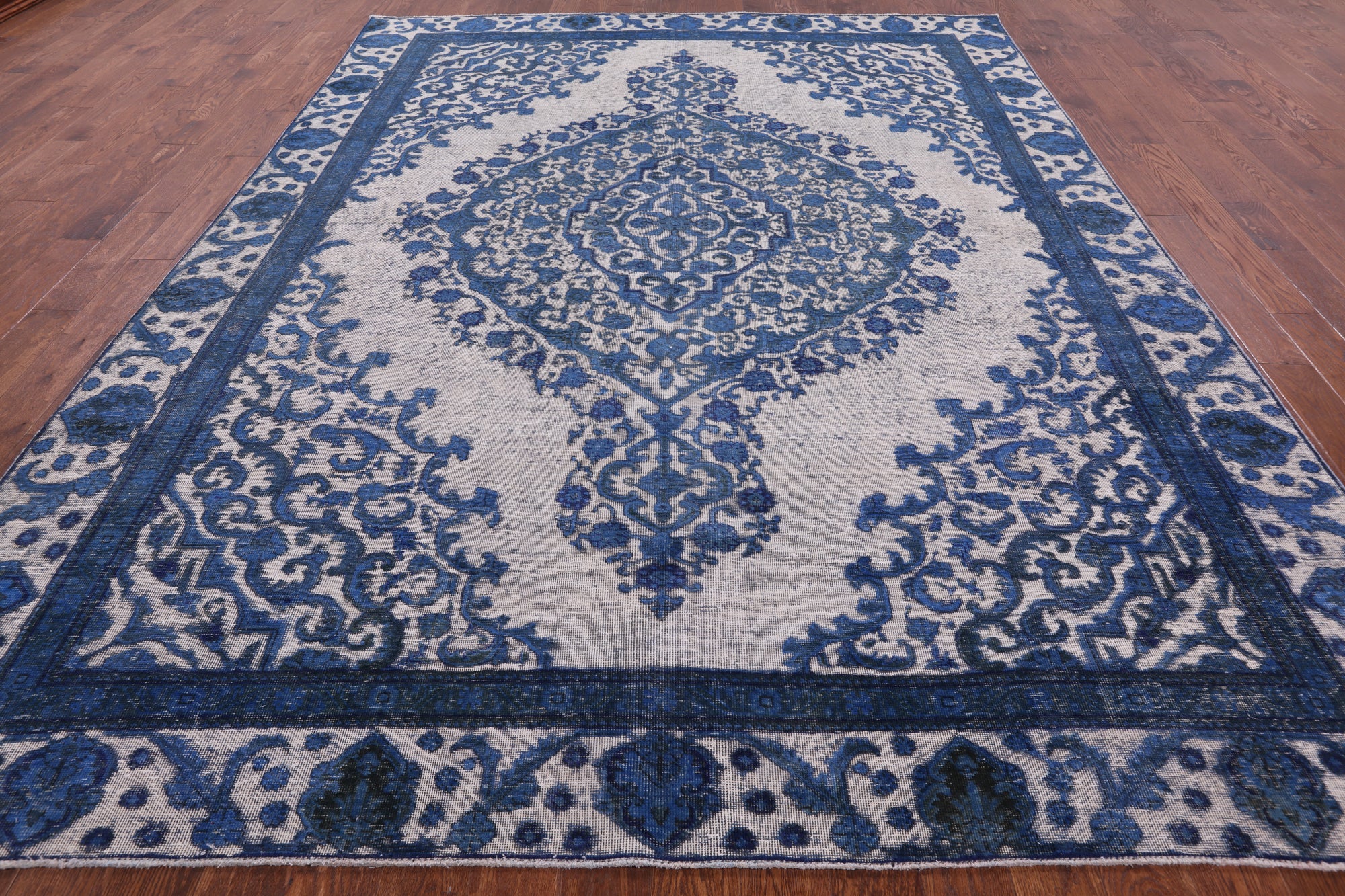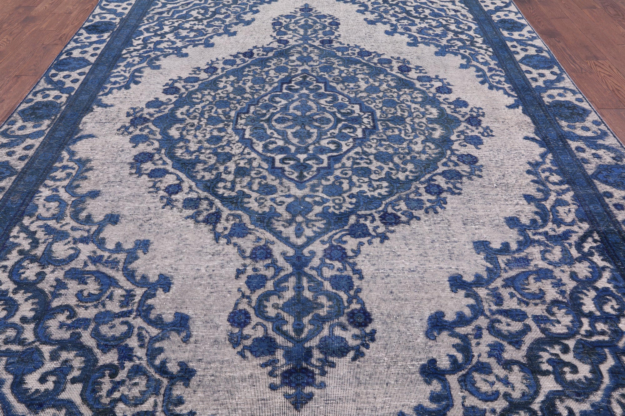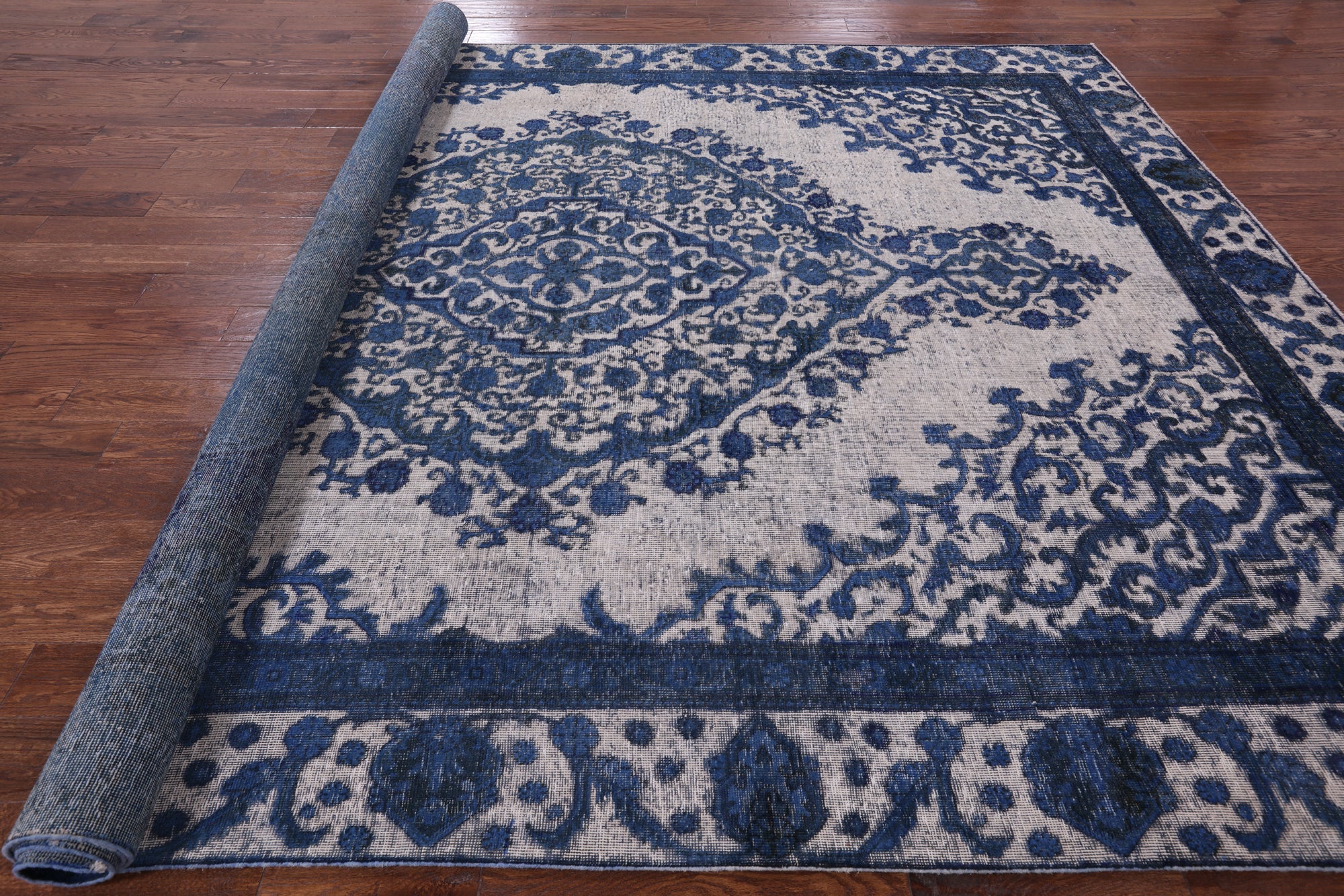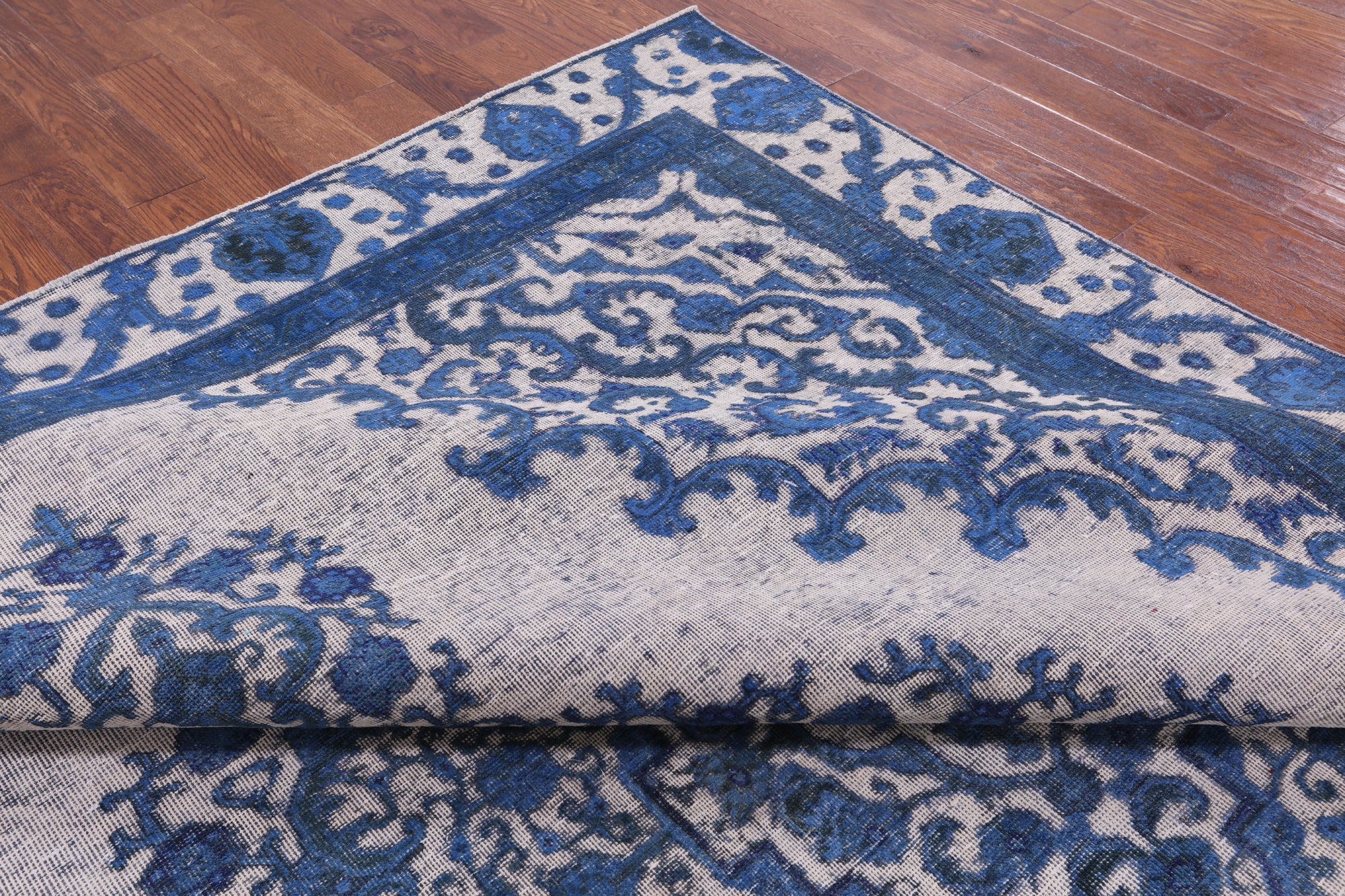 Overdyed rugs have become popular, because of their vibrant colors and vintage look. Each one is unique; there are no two alike. They are hand knotted and are made through a natural dye process. After this process is completed the end result is an oversaturated color.