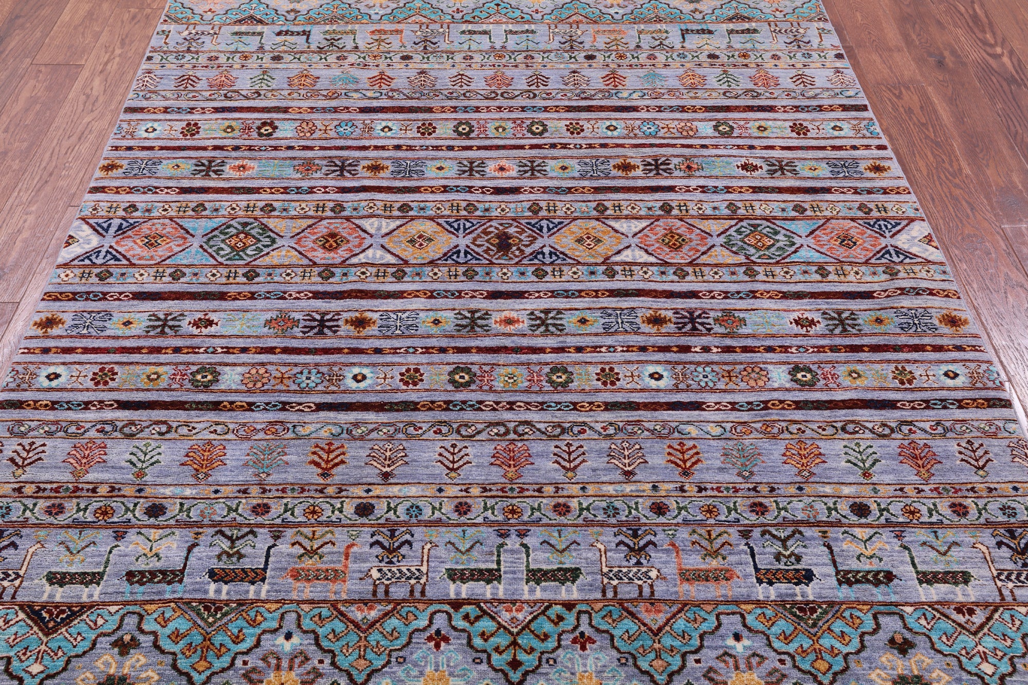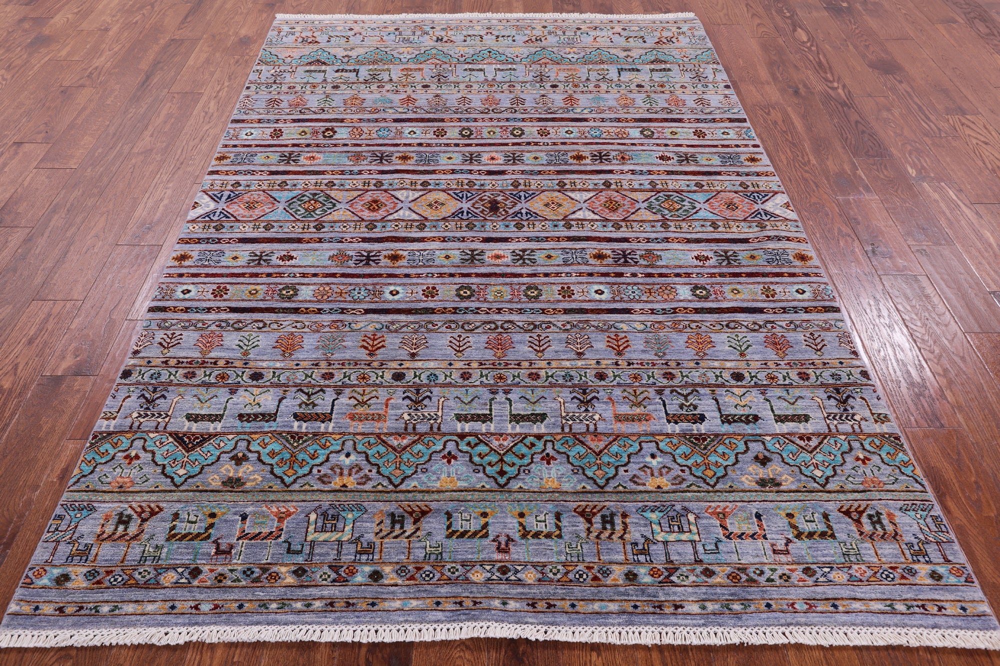 Gabbeh rugs are nothing short of simplistic and tribal, with designs consisting of primarily geometric shapes, animals, and plants. All done in a simplified way and based on the nomadic observation. Commonly brightly colored, these rugs are fun and beautiful and will add a warm touch to any home.