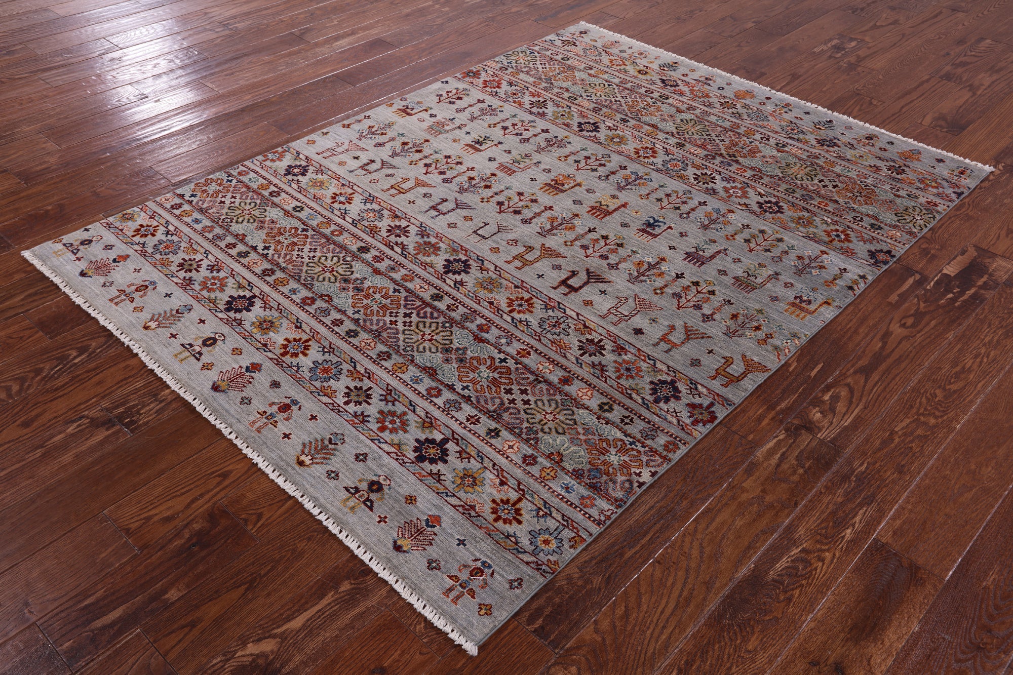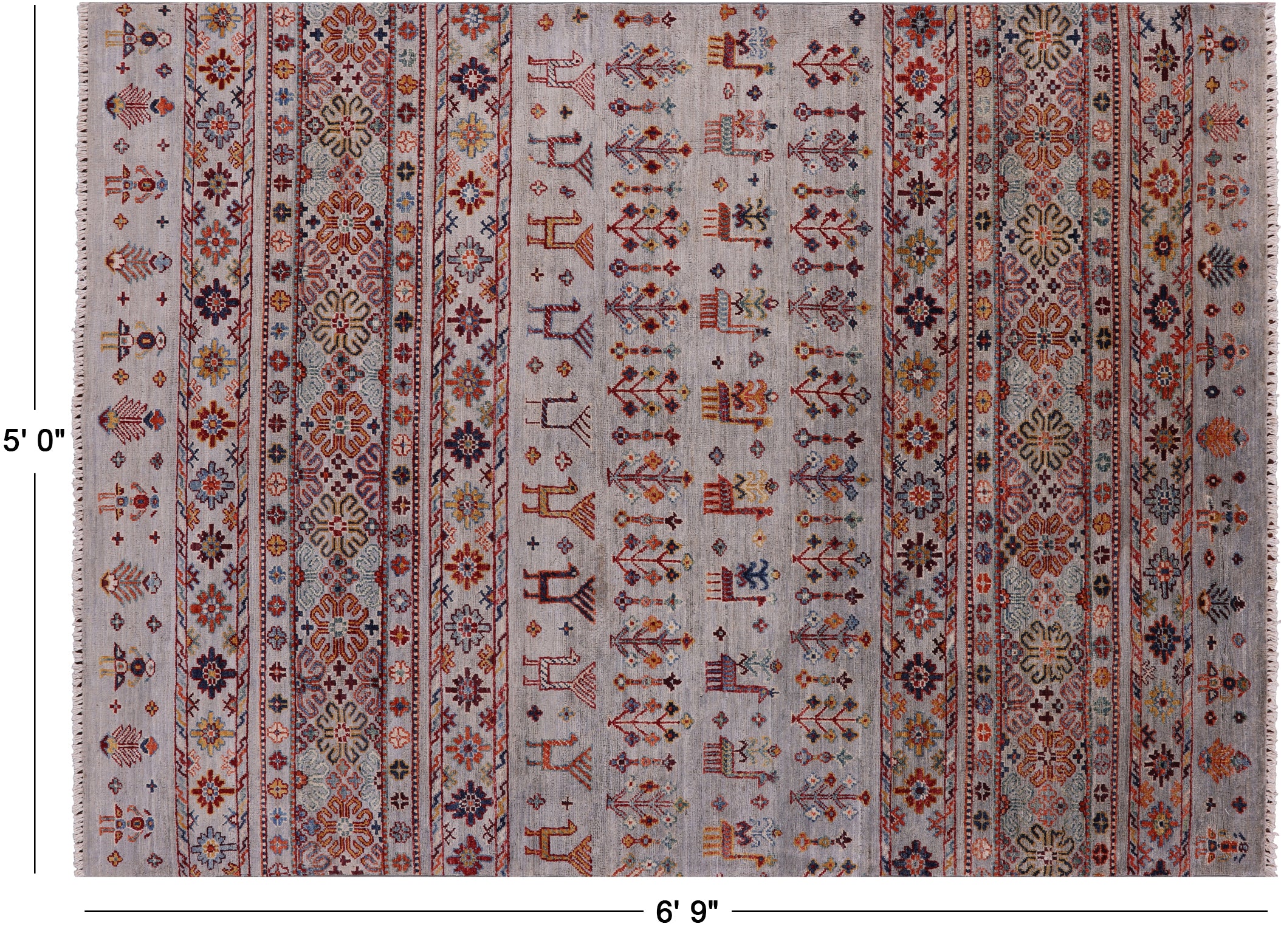 5' 0" X 6' 9" Tribal Persian Gabbeh Handmade Wool Rug - Q11130