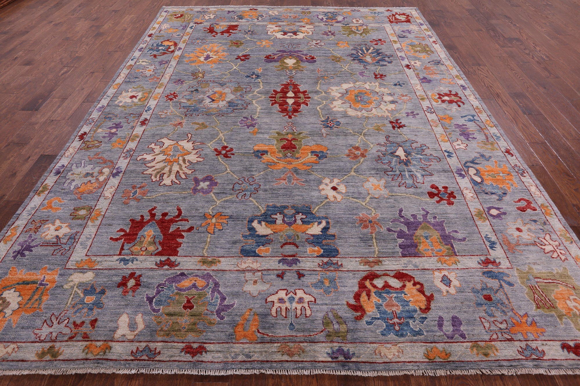Oushak rugs, hand-knotted with meticulous craftsmanship, are celebrated for their timeless beauty, luxurious feel, and vibrant colors. These rugs feature a harmonious blend of muted earthy tones and colorful hues, with intricate designs inspired by traditional Turkish motifs. Their versatile style seamlessly complements various interiors, from traditional to modern. With a dense pile and careful hand-knotting techniques, Oushak handmade rugs not only enhance visual appeal but also stand as enduring pieces, adding a touch of refined elegance and a splash of color to any space.