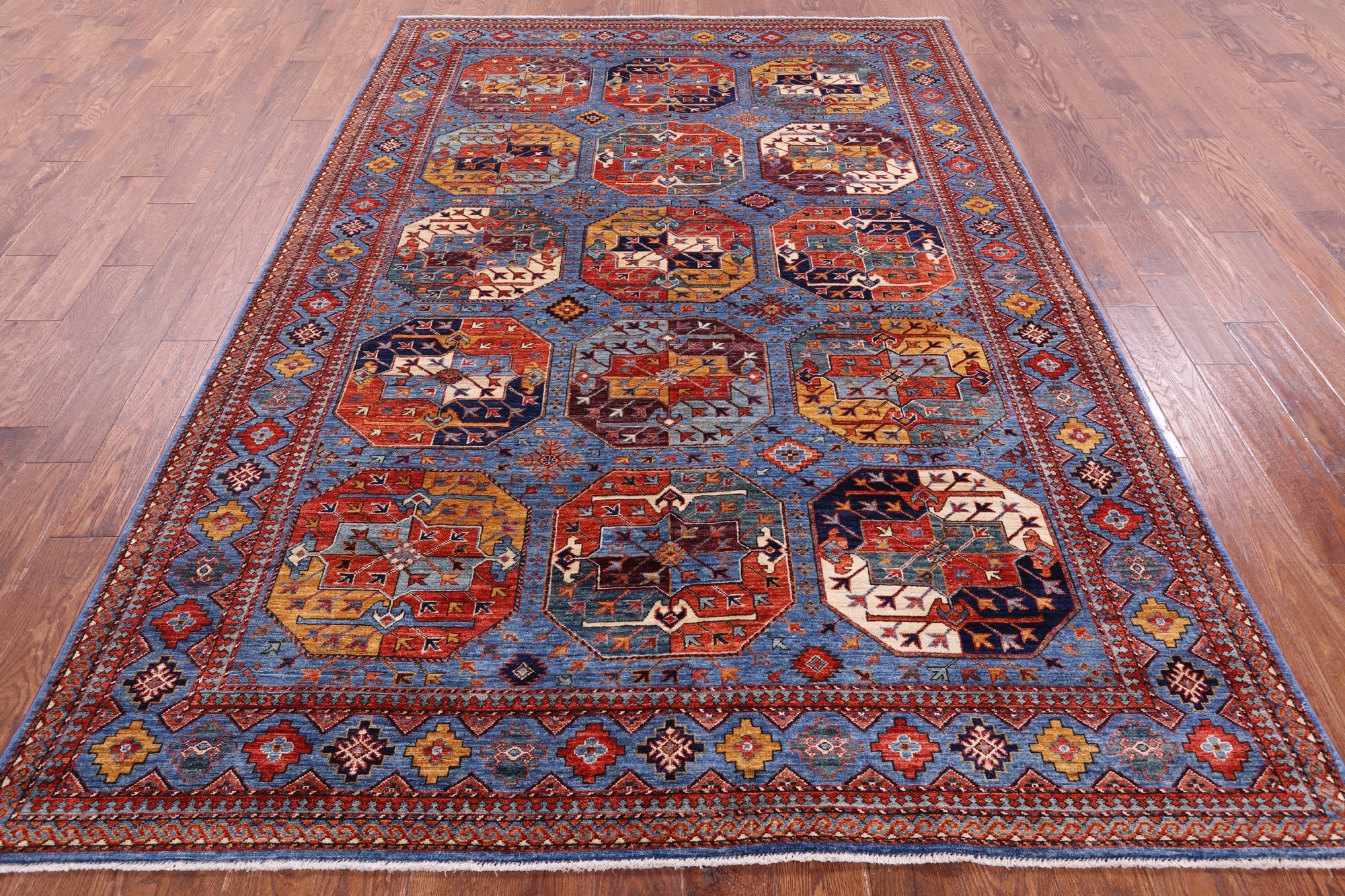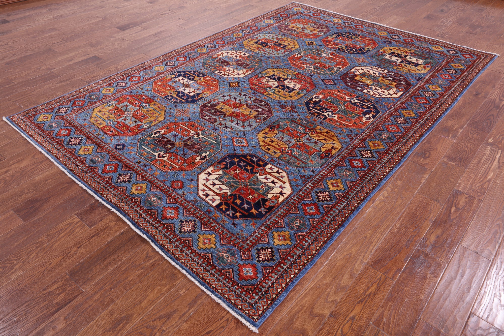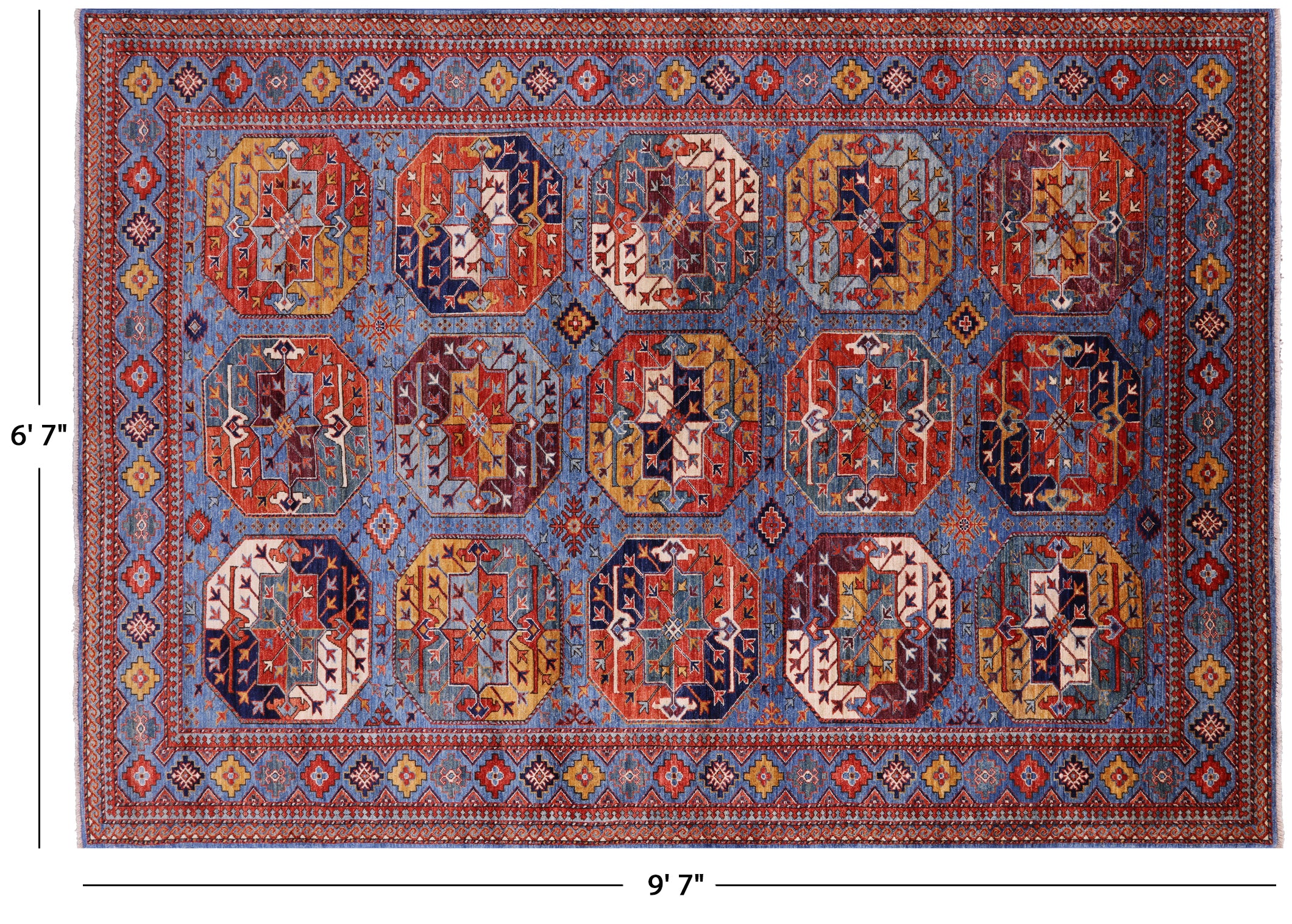 Blue 6' 7" X 9' 7" Bokhara Handmade Wool Rug - Q12681