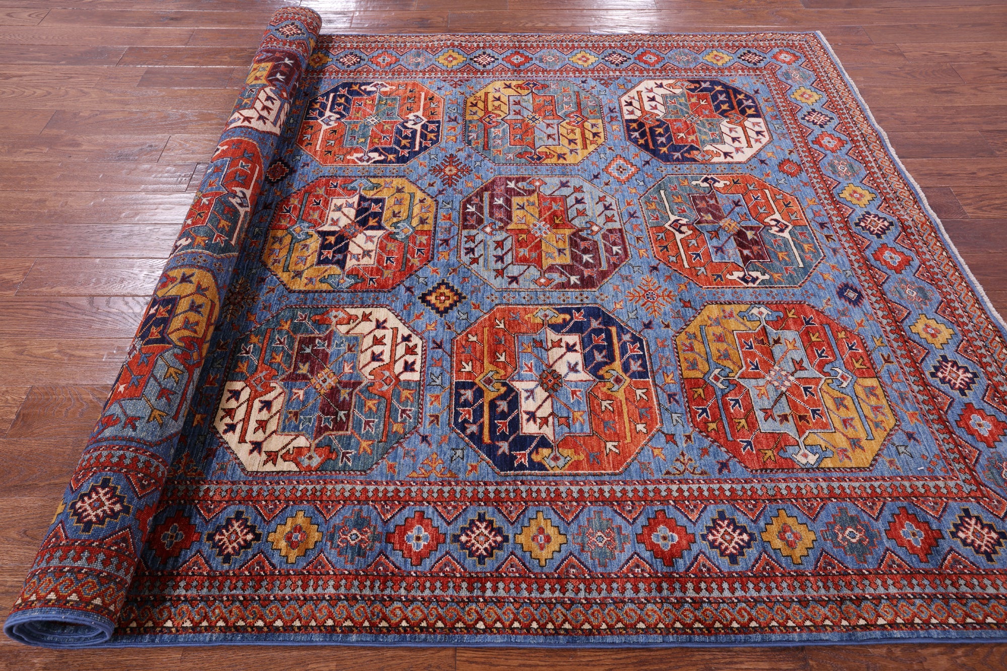 Bokharas are a type of handmade Pakistani rug; also known as Bukharas or Bokaras. Most are based on Turkmen prototypes called Tekkes. Pakistani Bokhara rugs are among the most popular handmade rugs in the world. They are popular for their soft, luxurious feel, heavy pile, attractive colors and appearance that consist of repeating octagonal figures called guls, usually on fields of burgundy red, gray blue, or sometimes green.