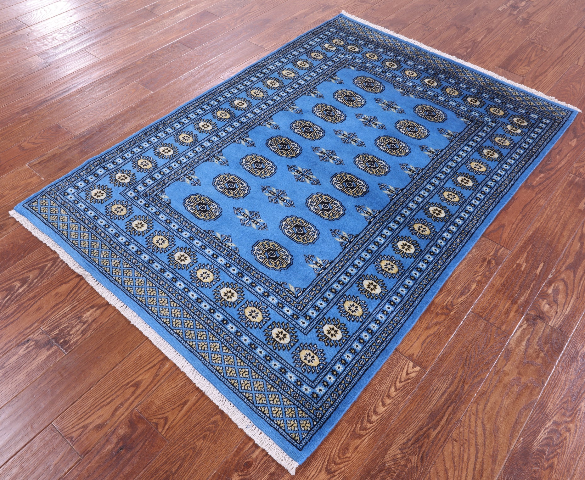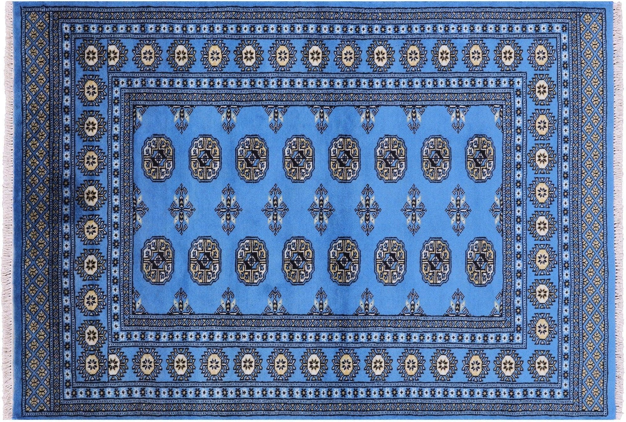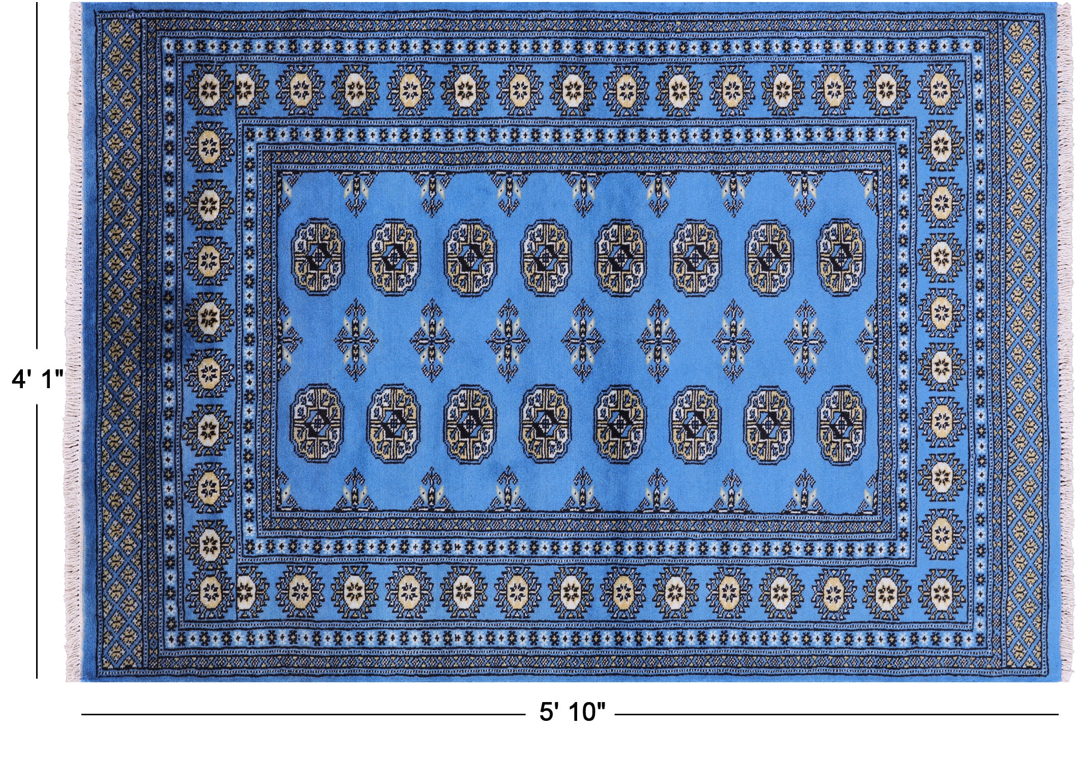 Blue 4' 1" X 5' 10" Hand Knotted Silky Bokhara Wool Rug - Q21845