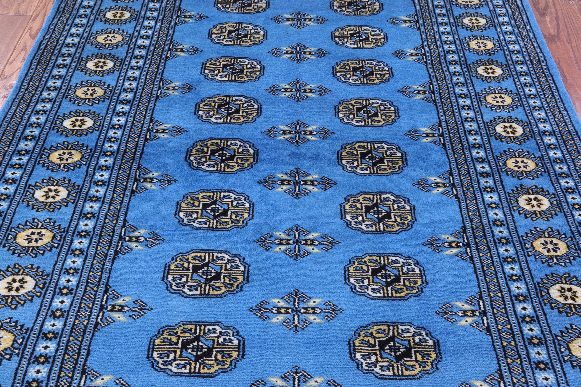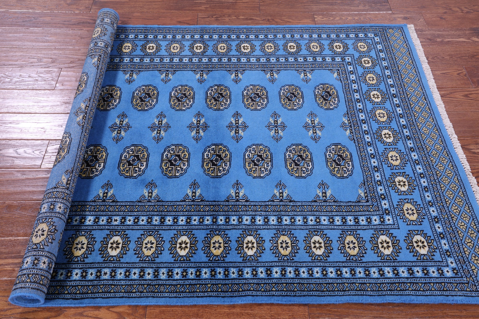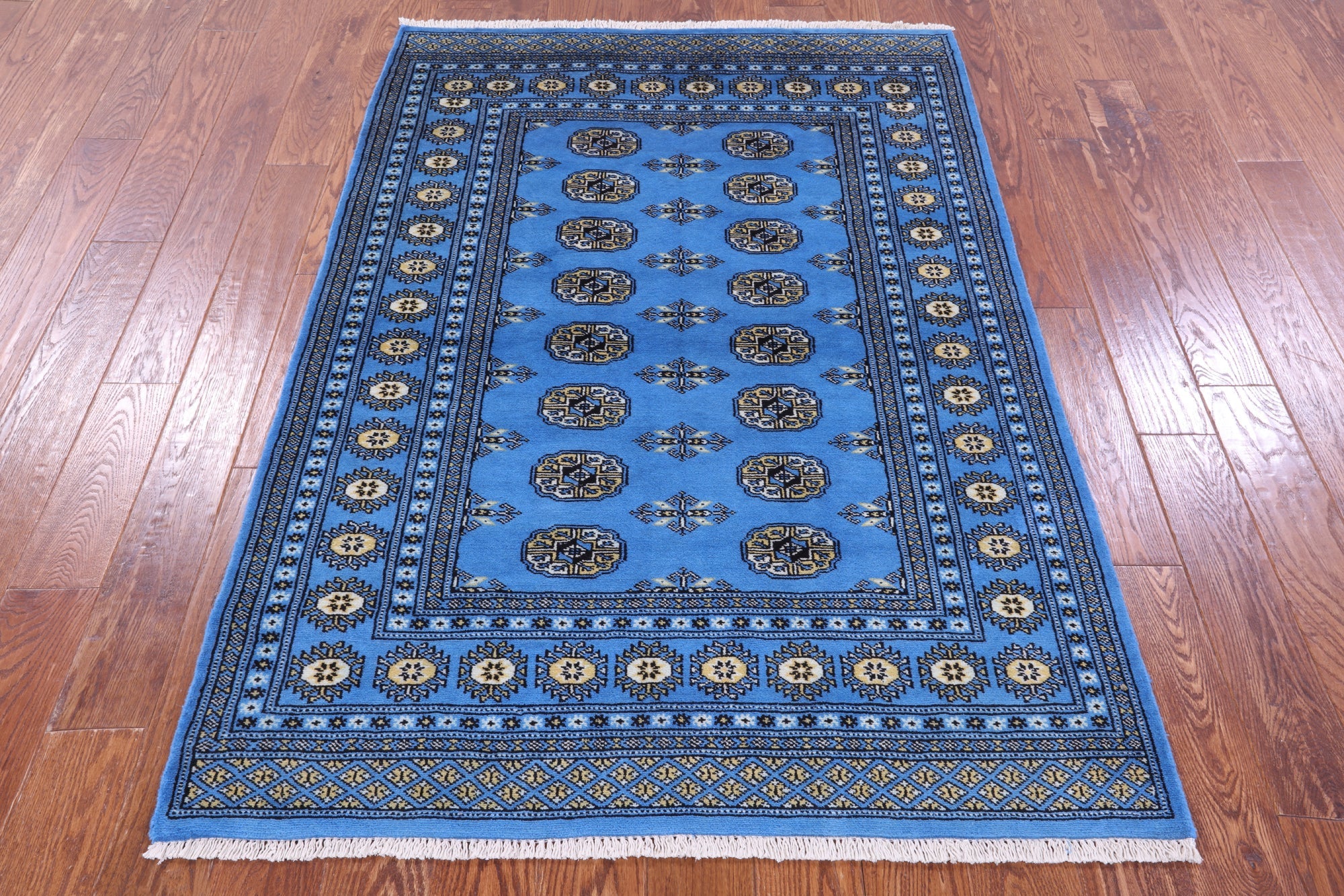 Blue 4' 1" X 5' 10" Hand Knotted Silky Bokhara Wool Rug - Q21845