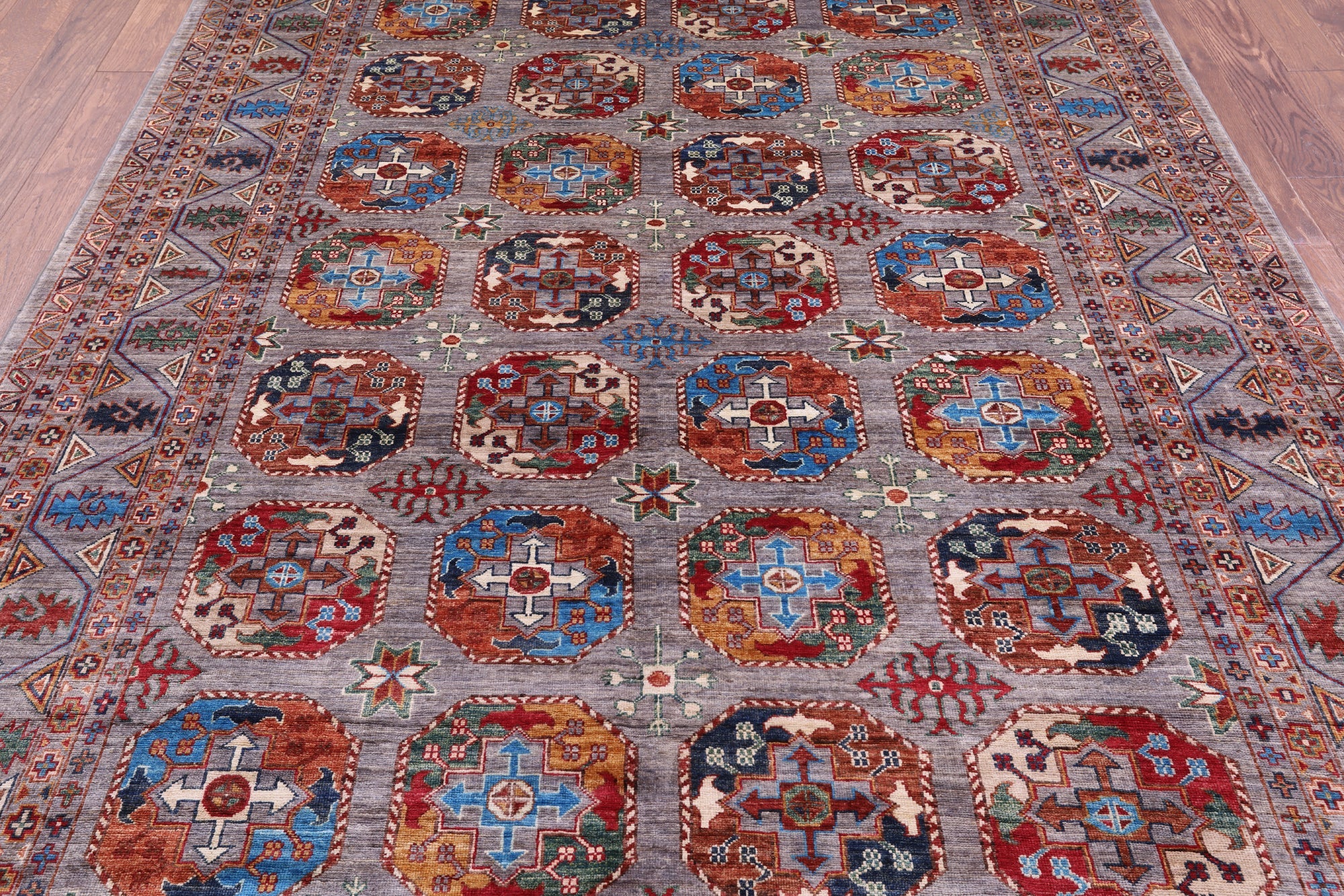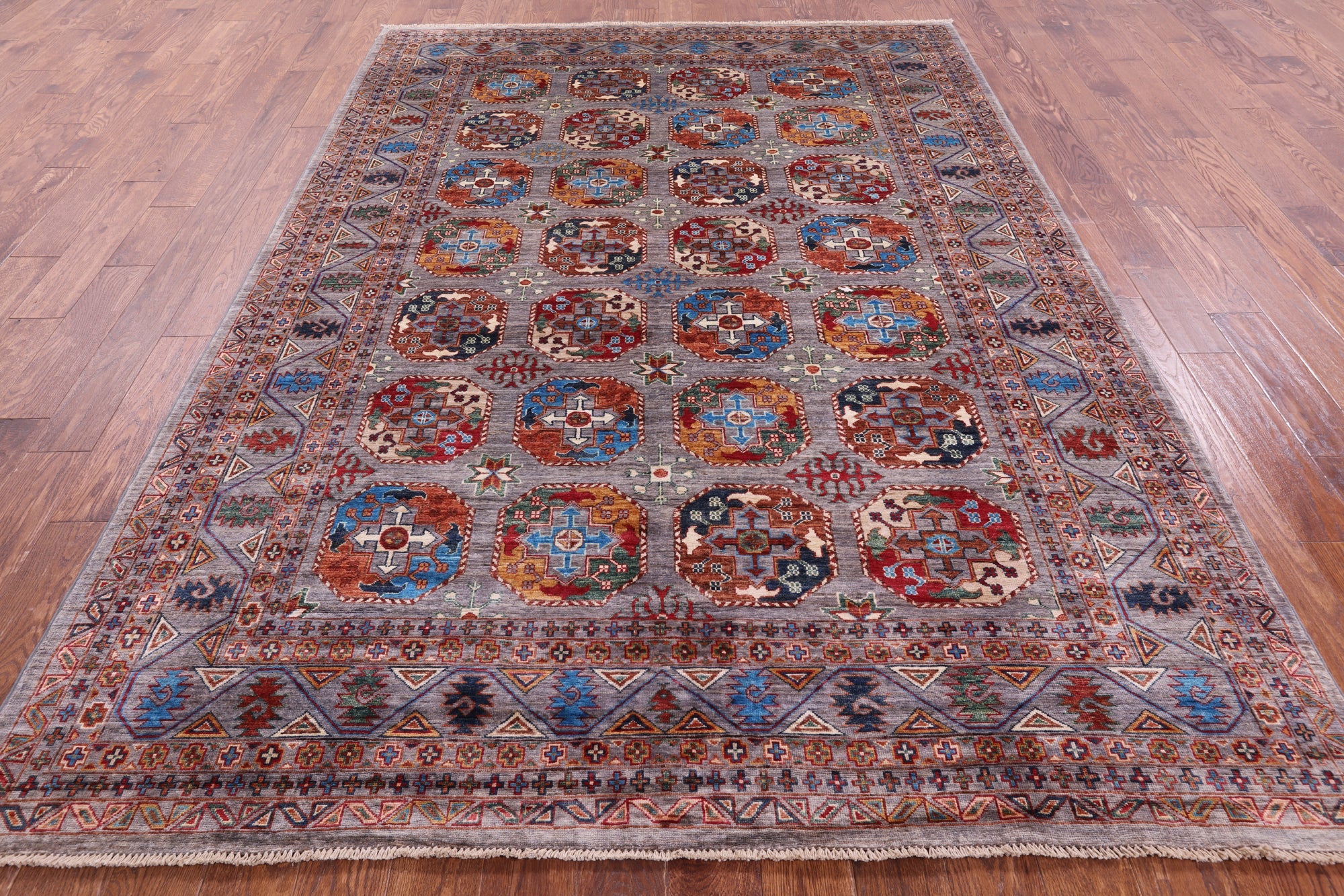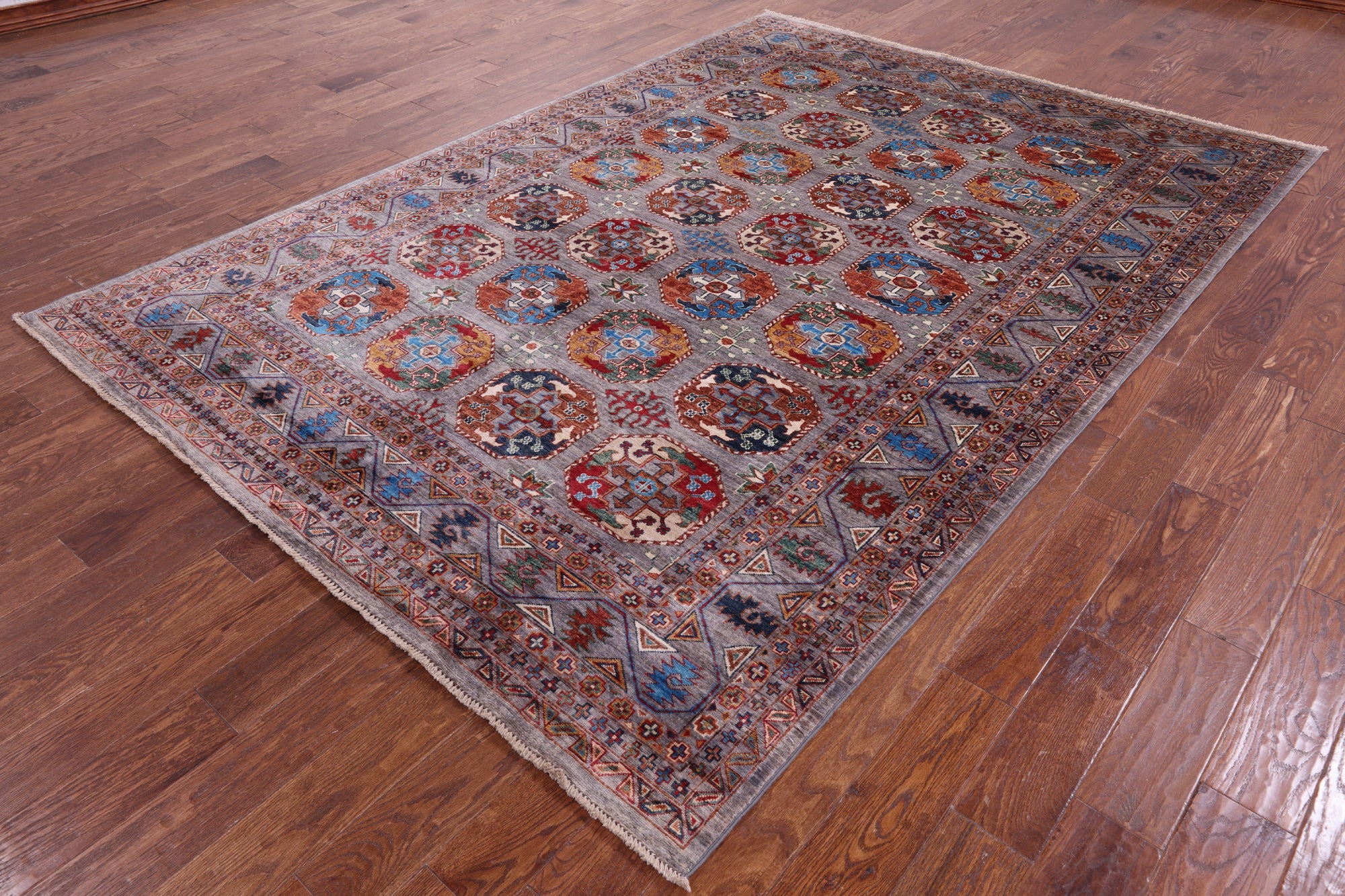 Grey Bokhara Hand-Knotted Wool Rug 6' 10" X 9' 10" - Q12195 is backordered and will ship as soon as it is back in stock.