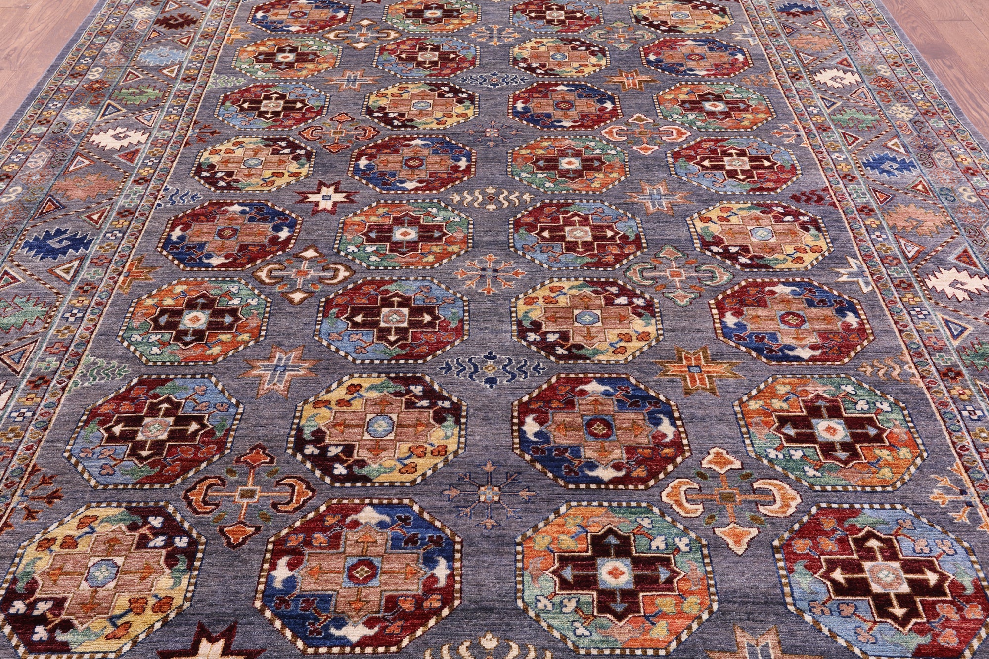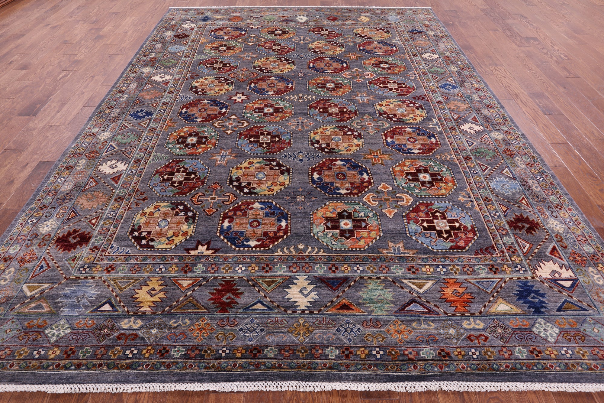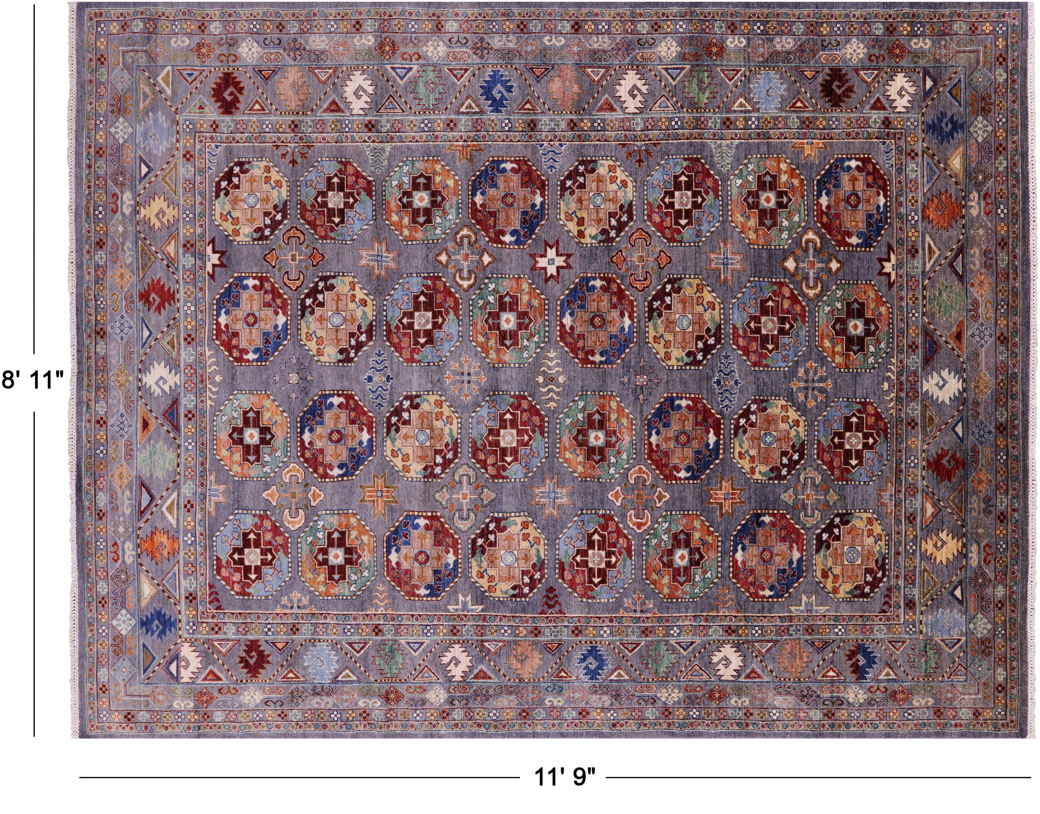 Grey 8' 11" X 11' 9" Hand-Knotted Bokhara Wool Rug - Q11132 is backordered and will ship as soon as it is back in stock.