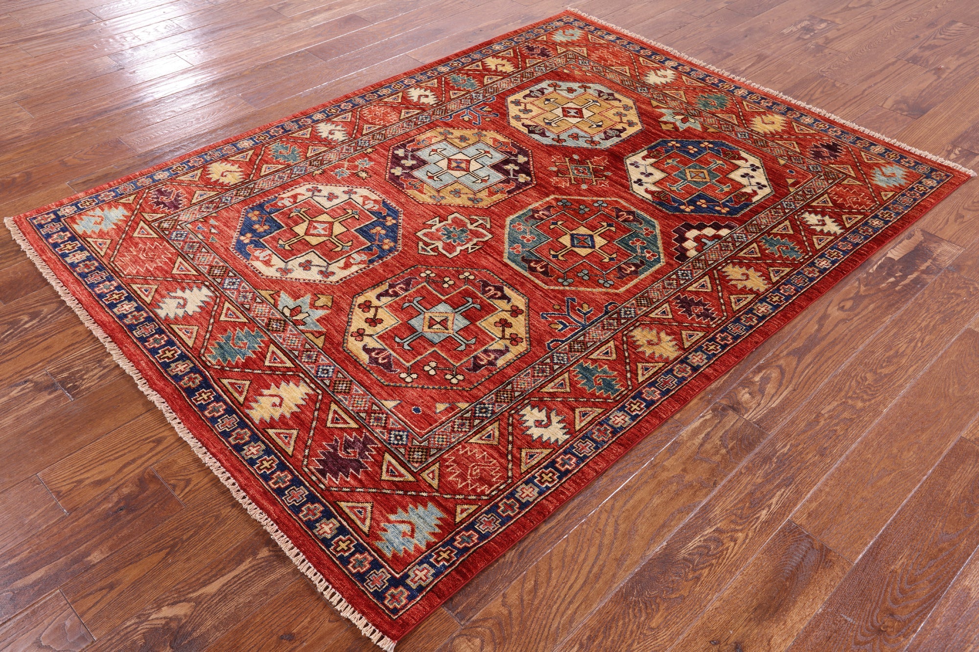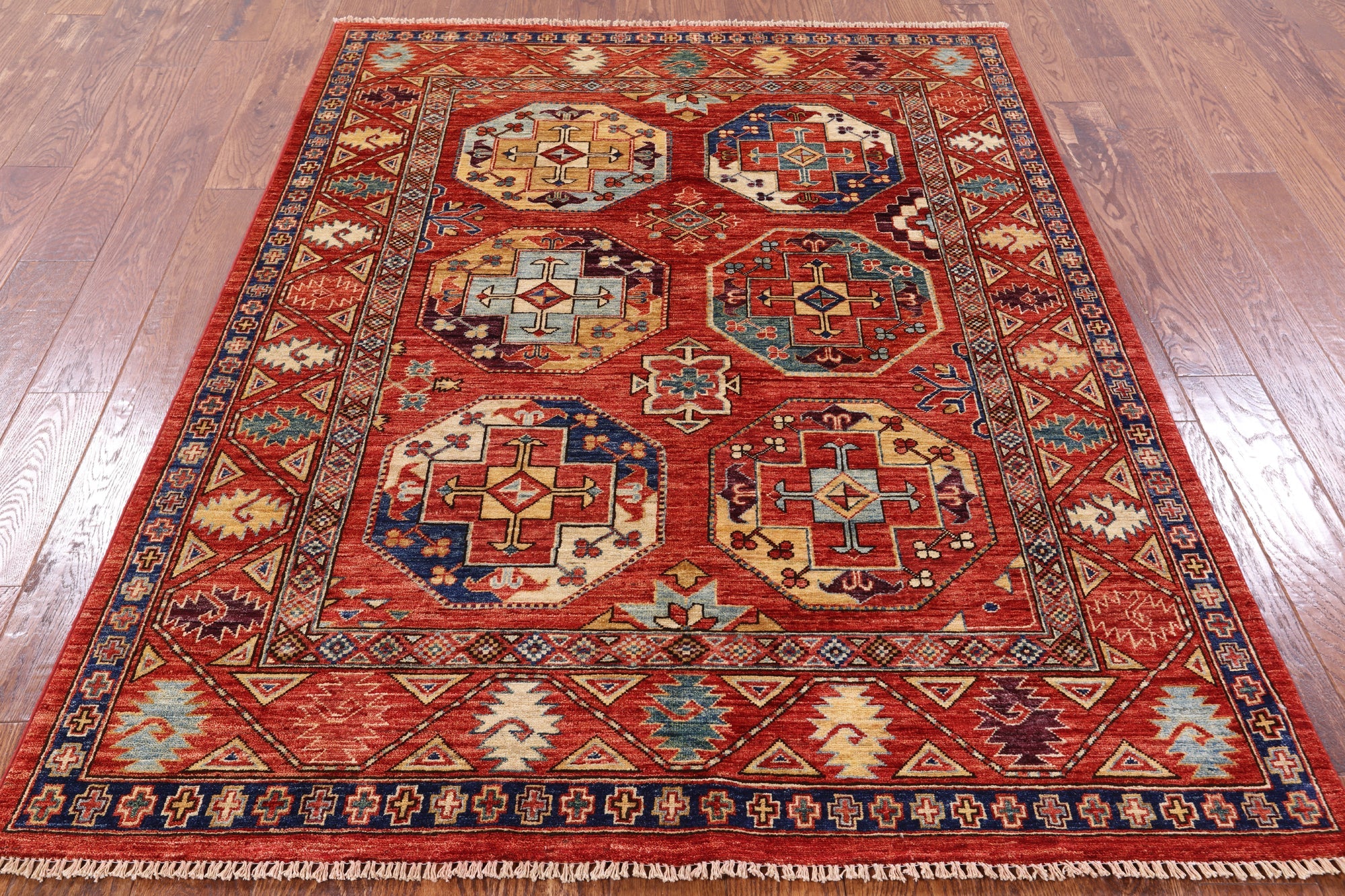 Red 5' 0" X 6' 8" Bokhara Handmade Wool Rug - Q5195 is backordered and will ship as soon as it is back in stock.