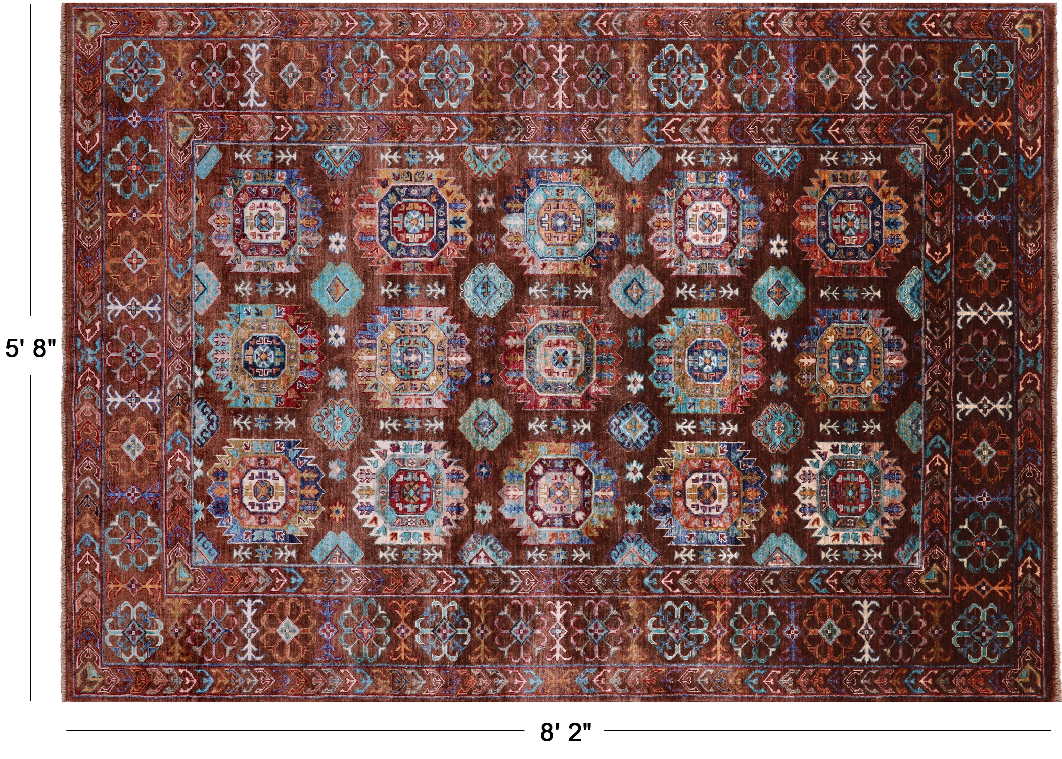 Brown 5' 8" X 8' 2" Fine Turkmen Ersari Handmade Wool Rug - Q16442