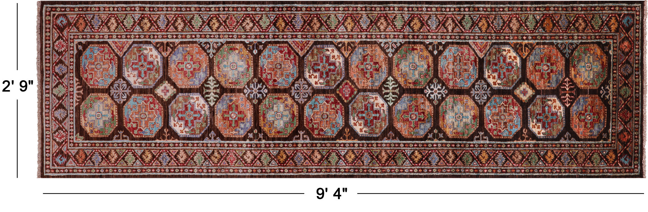 Brown 2' 9" X 9' 4" Fine Turkmen Hand Knotted Wool Runner Rug - Q16694