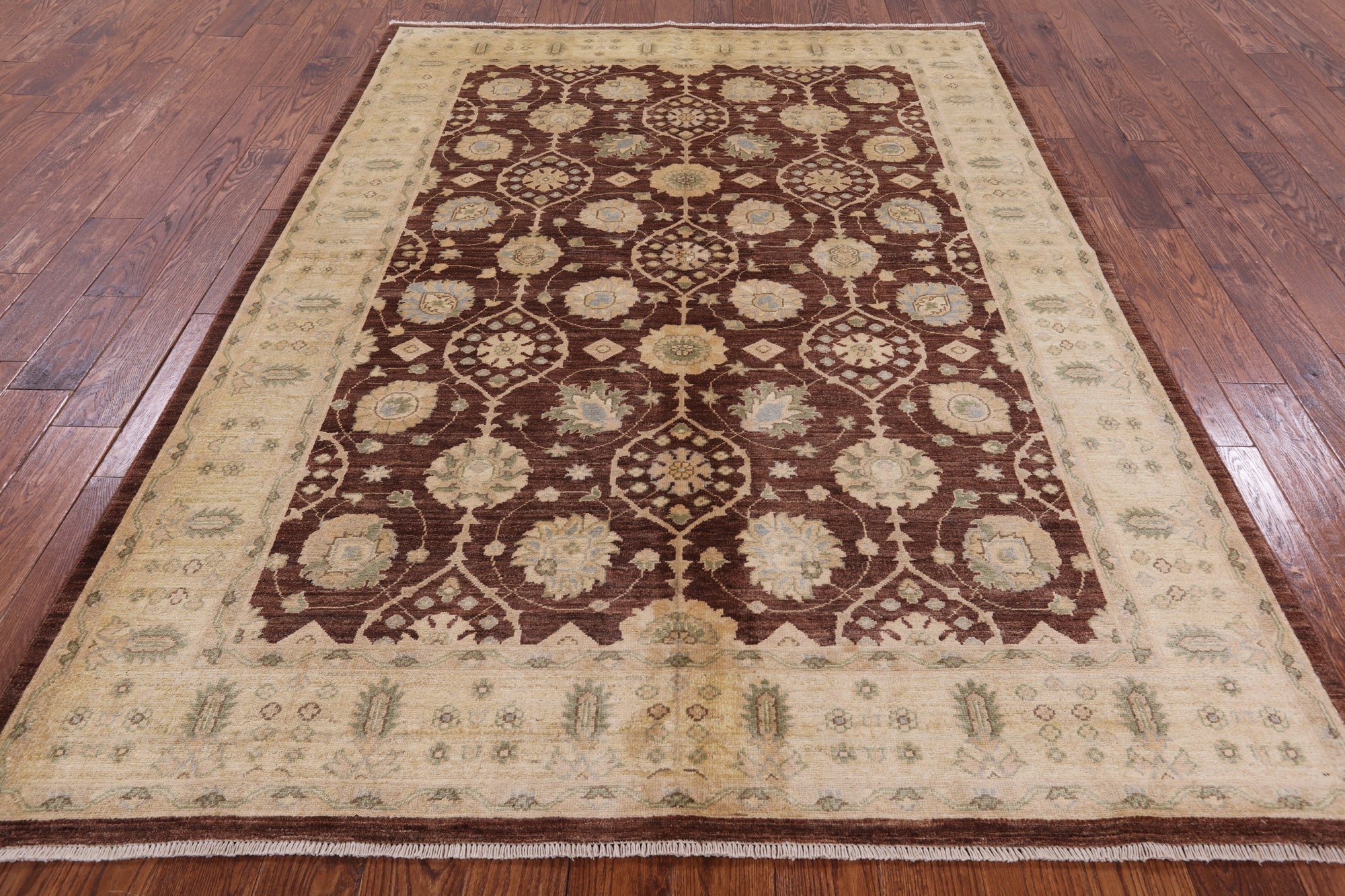 Brown Hand Knotted Chobi Peshawar Wool Rug 6' 4" X 8' 8" - W2040 is backordered and will ship as soon as it is back in stock.