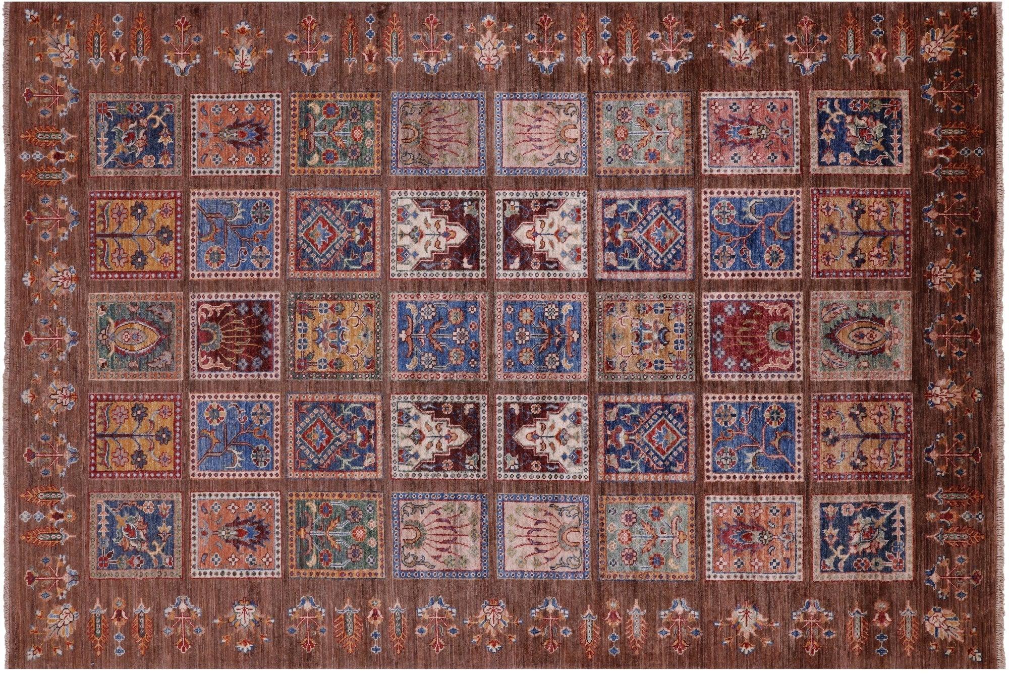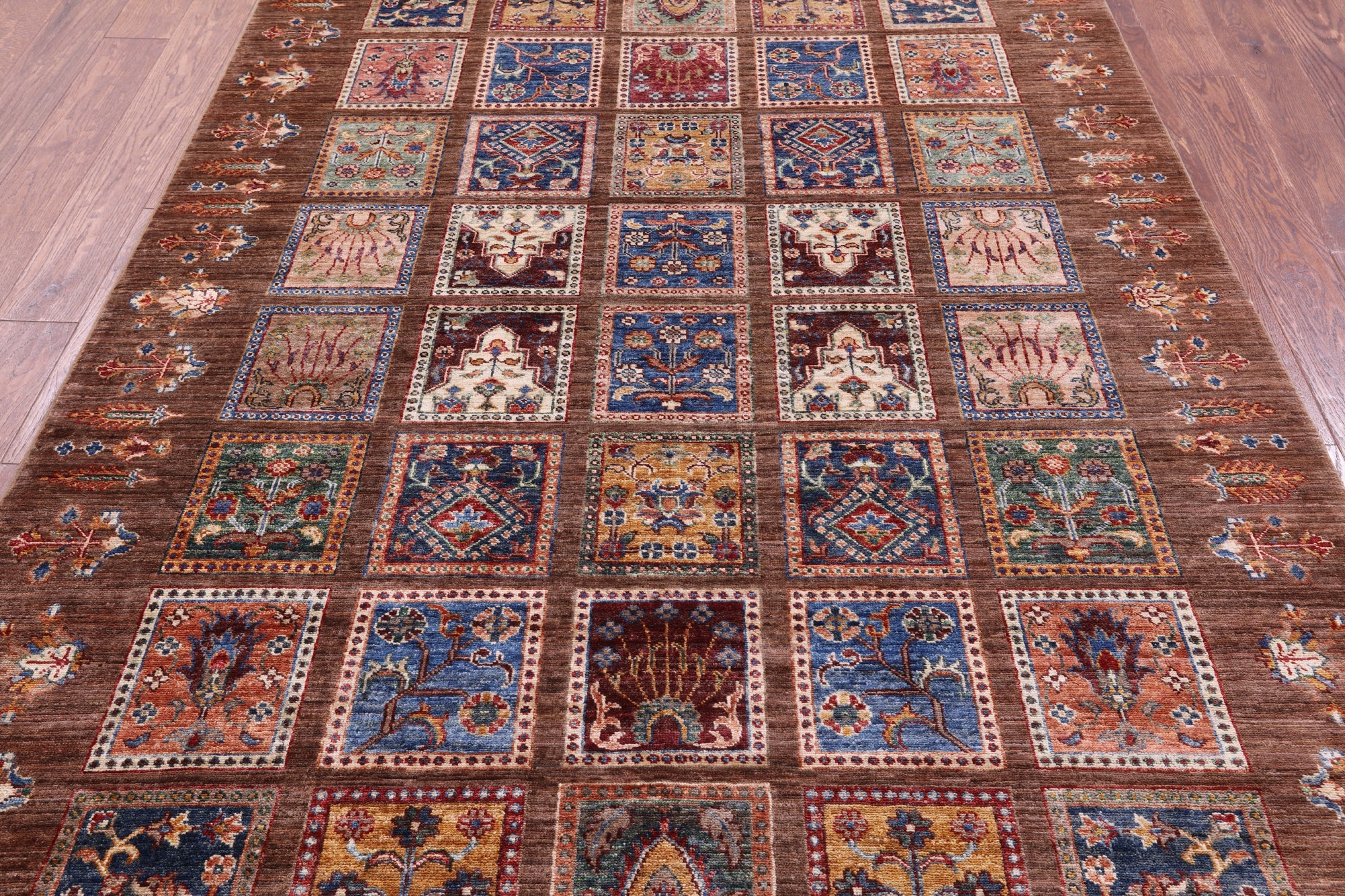 Brown Handmade Garden Design Persian Wool Rug 5' 9" X 8' 4" - Q18301