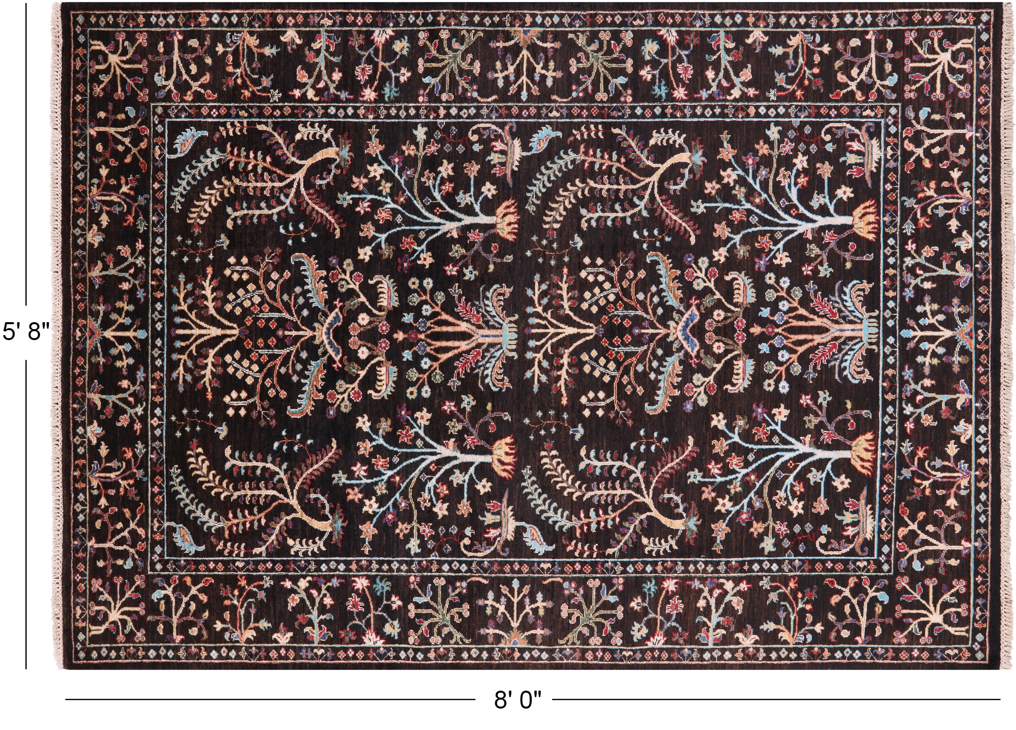Brown 5' 8" X 8' 0" Handmade Persian Tabriz Wool Rug - Q8334