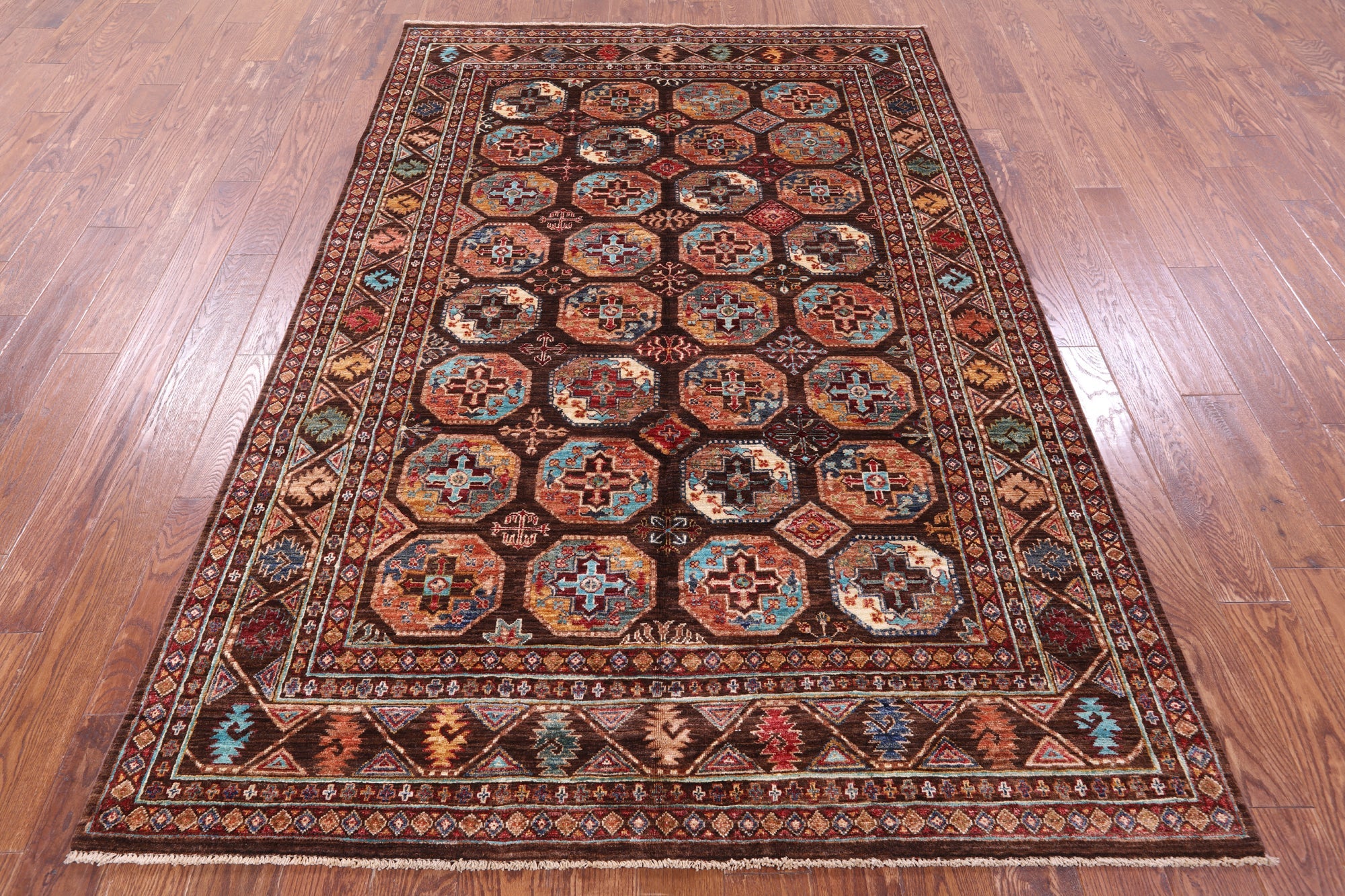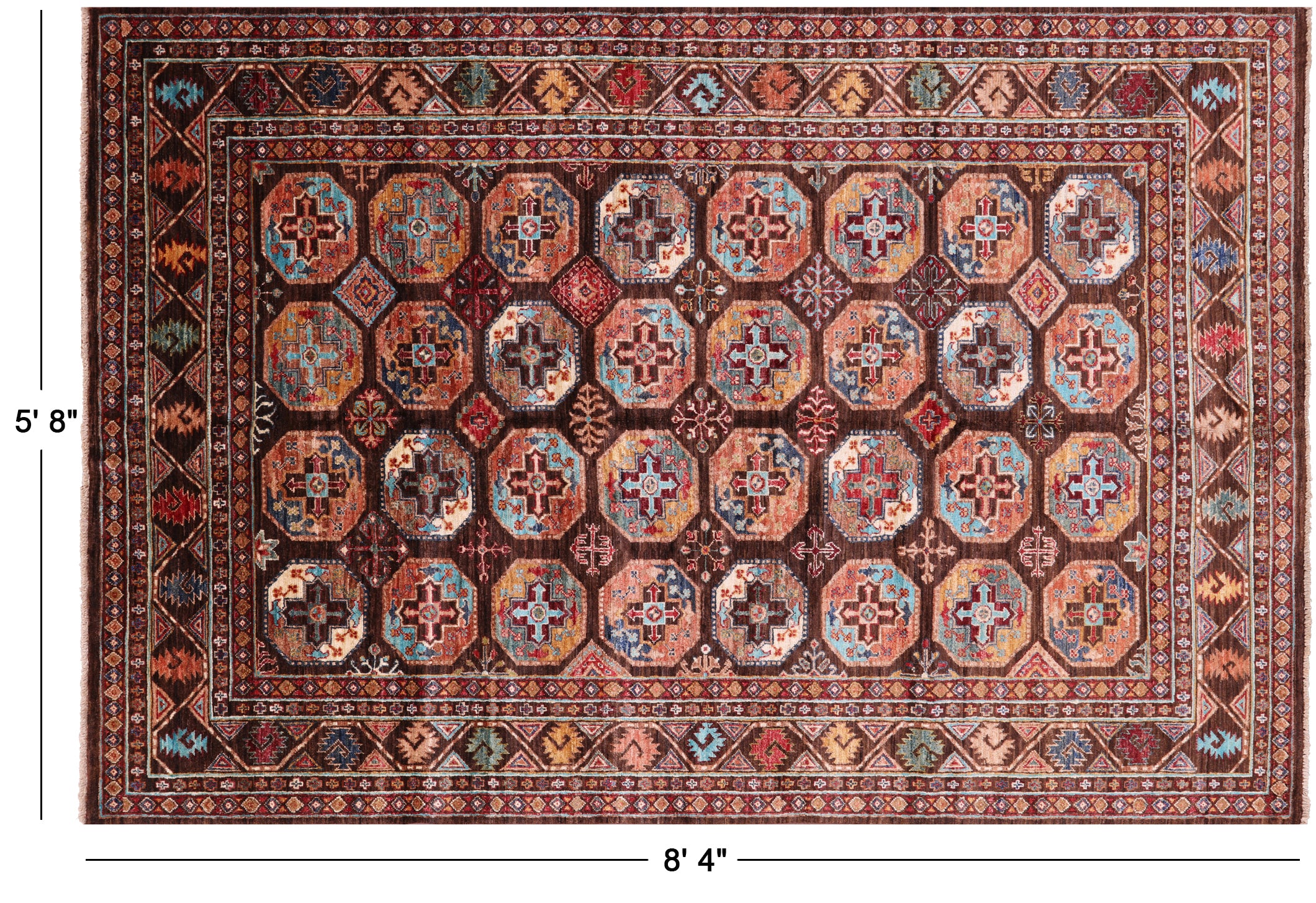 Brown Handmade Super Turkmen Ersari Wool Rug 5' 8" X 8' 4" - Q16307 is backordered and will ship as soon as it is back in stock.