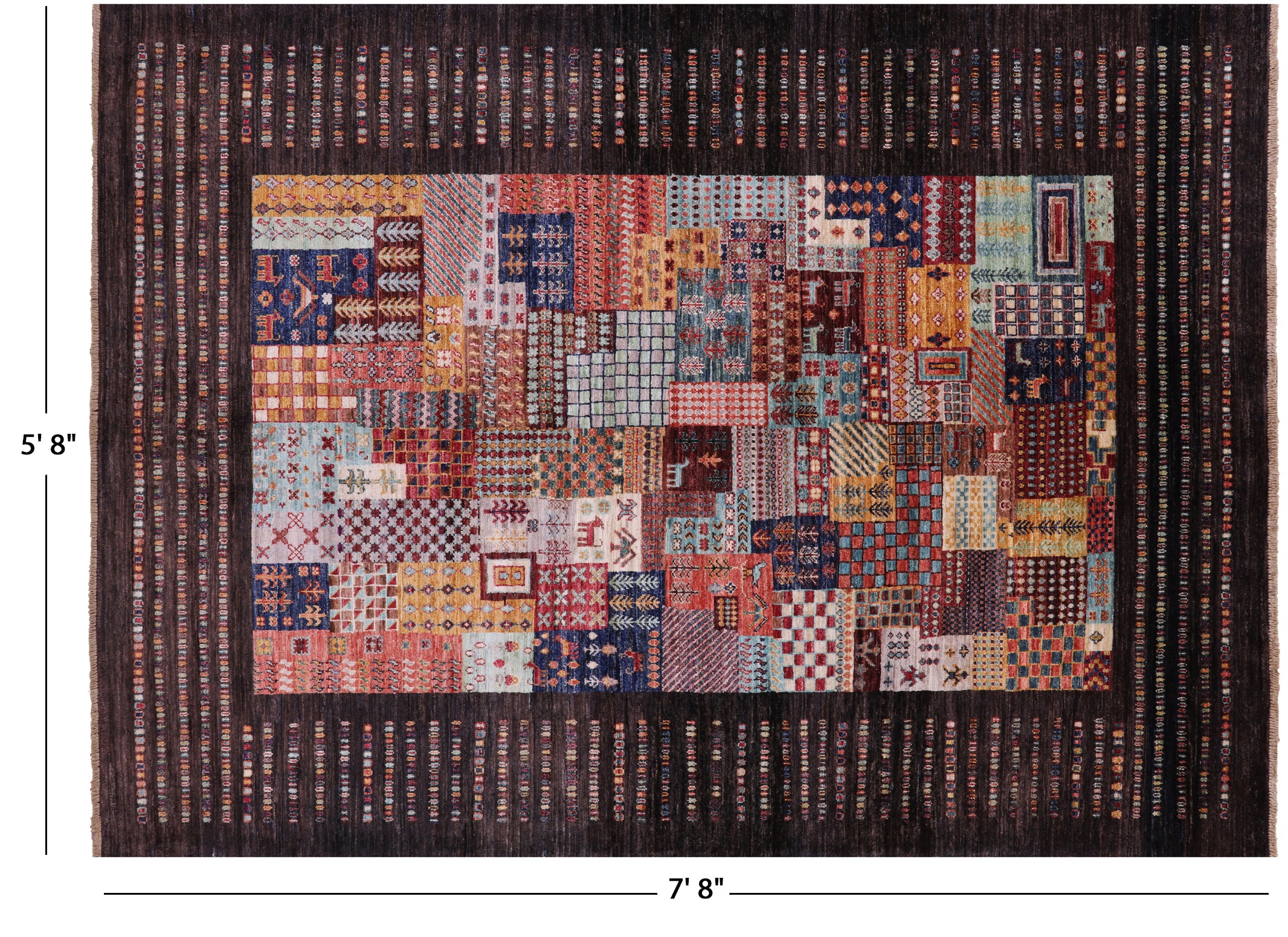 Brown Persian Gabbeh Tribal Hand Knotted Rug 5' 8" X 7' 8" - Q20699 is backordered and will ship as soon as it is back in stock.
