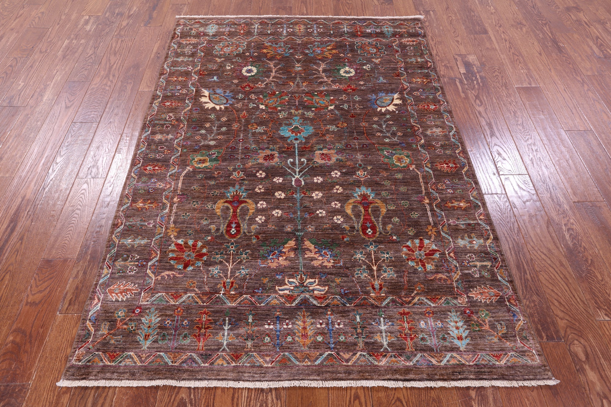Brown Persian Tabriz Hand Knotted Wool Rug 4' 10" X 6' 10" - Q16995 is backordered and will ship as soon as it is back in stock.