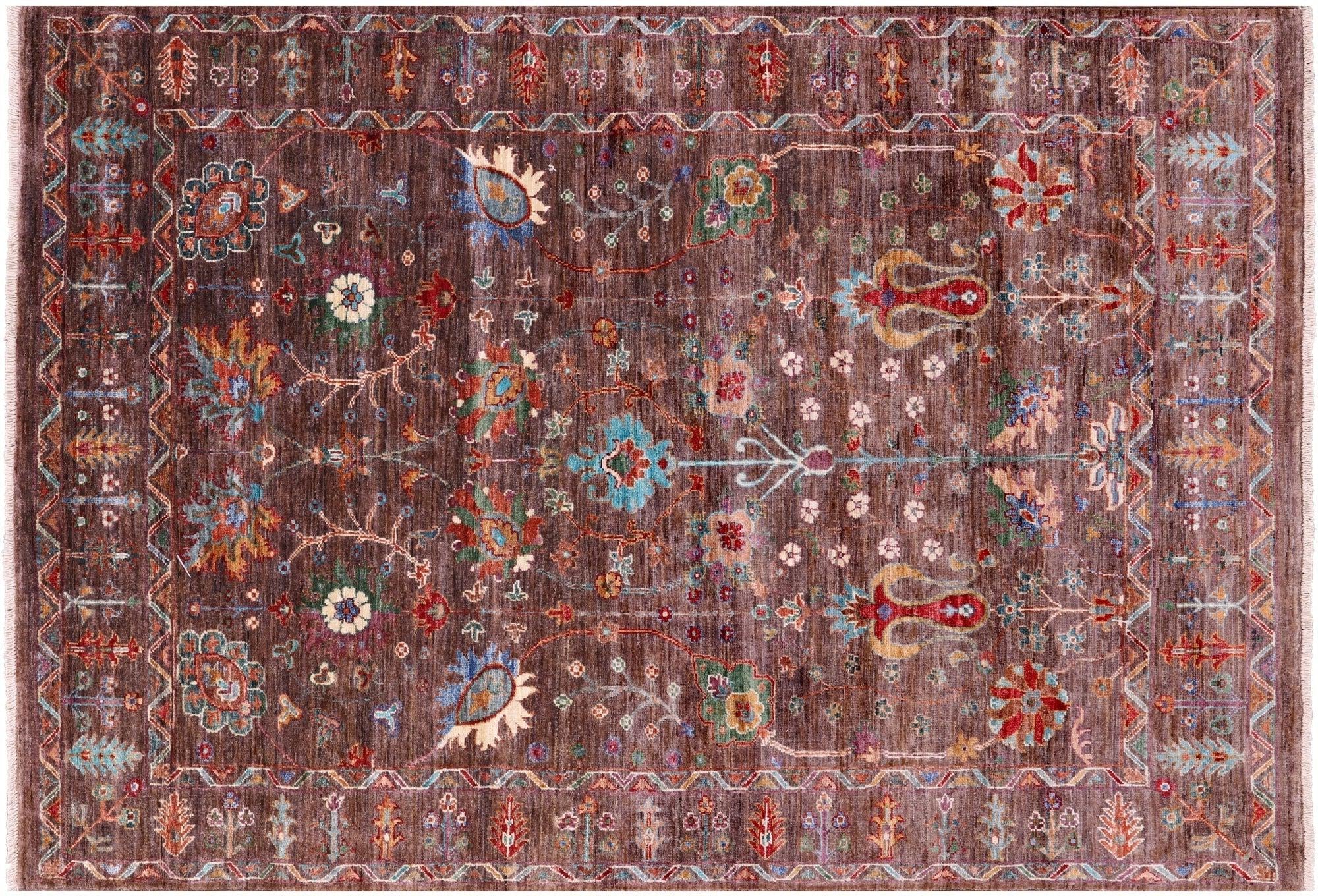 Brown Persian Tabriz Hand Knotted Wool Rug 4' 10" X 6' 10" - Q16995