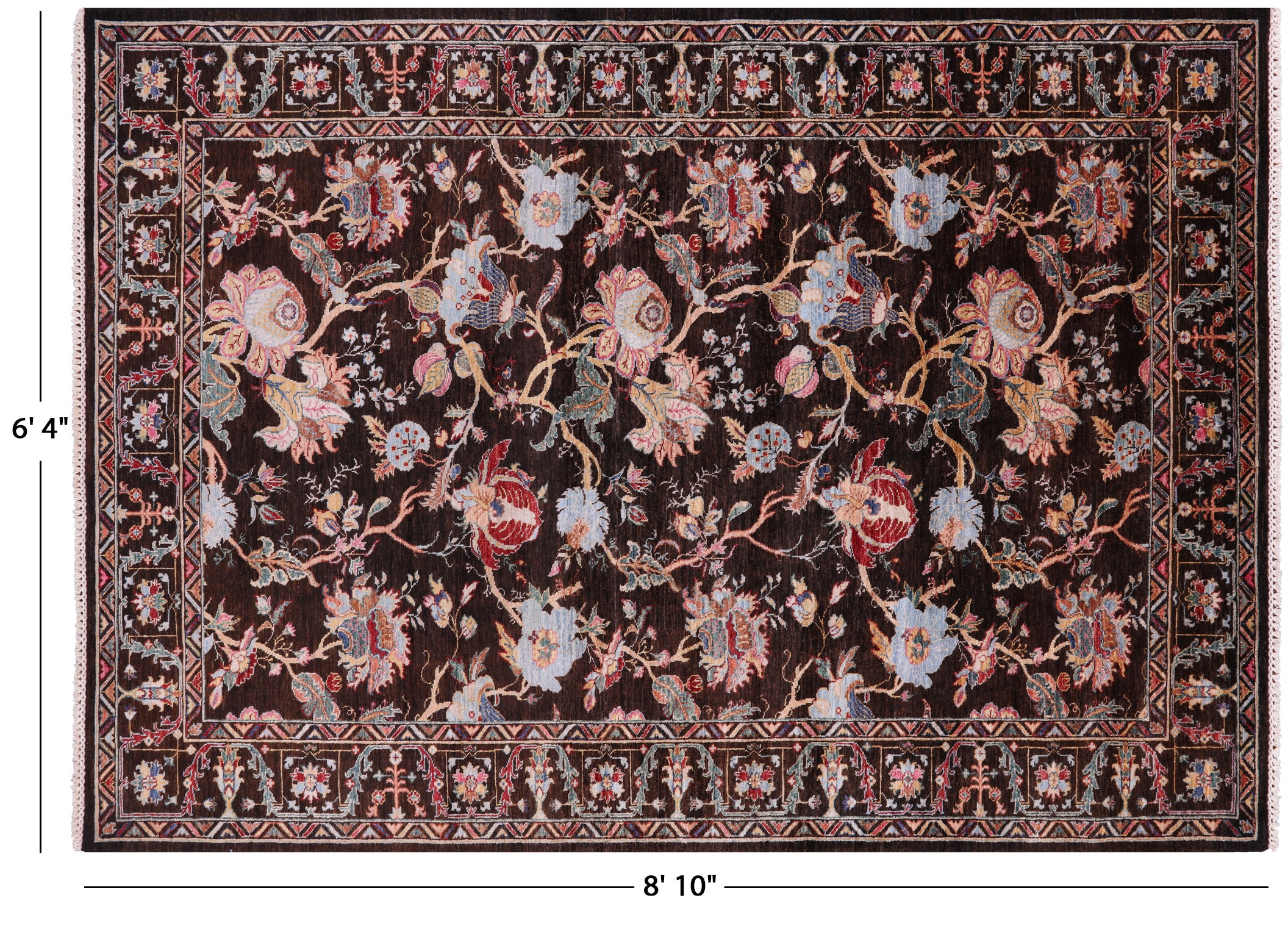 Brown Persian Tabriz Handmade Wool Rug 6' 4" X 8' 10" - Q14413