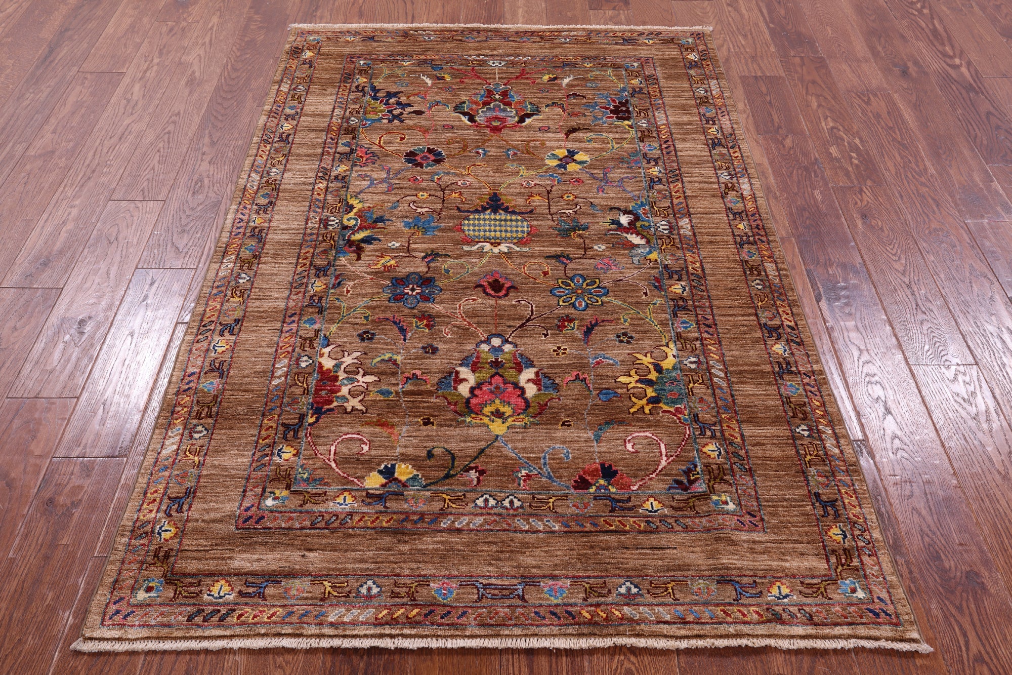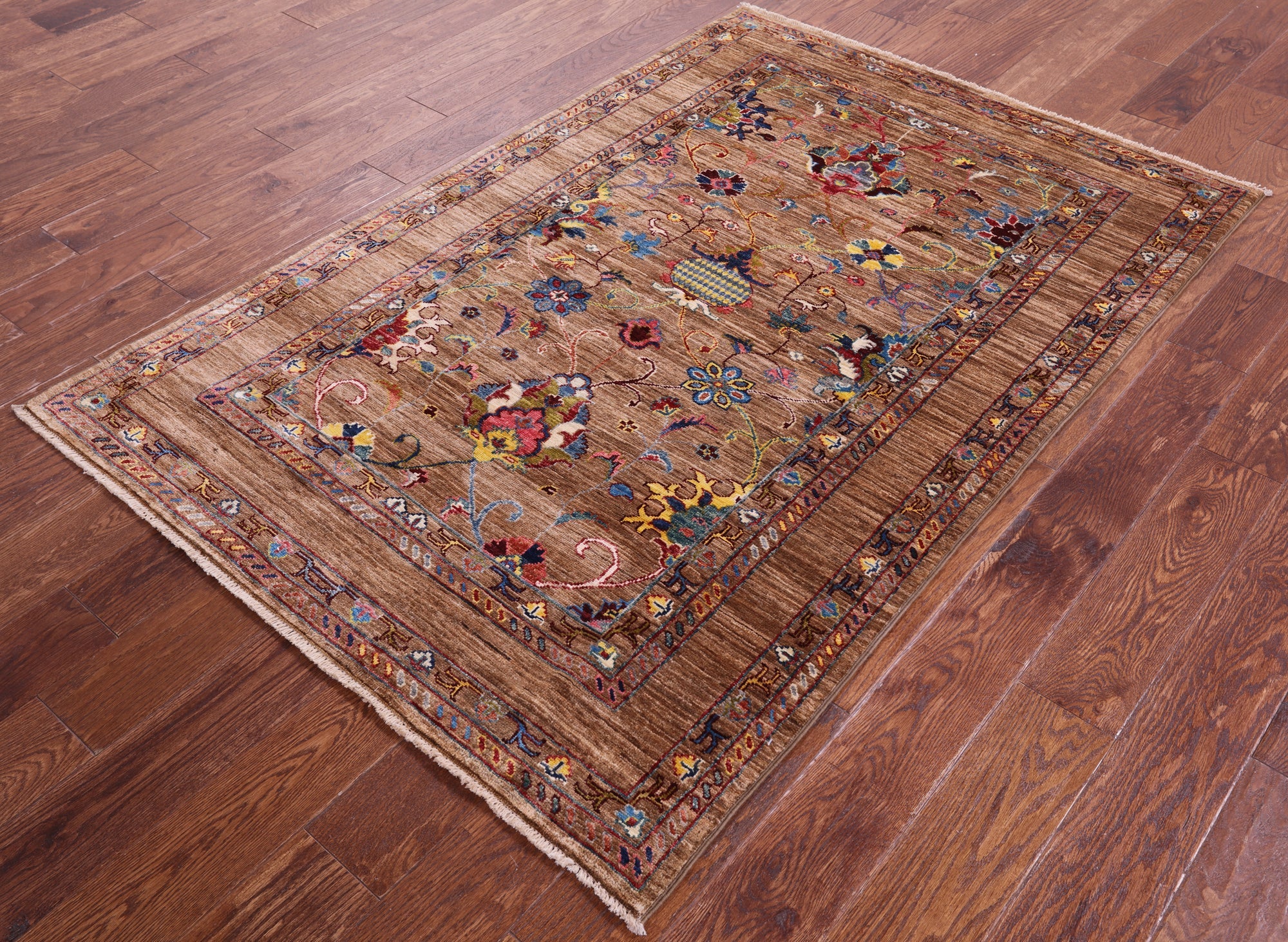 Brown Persian Tabriz Handmade Wool Rug 4' 0" X 5' 11" - Q16412