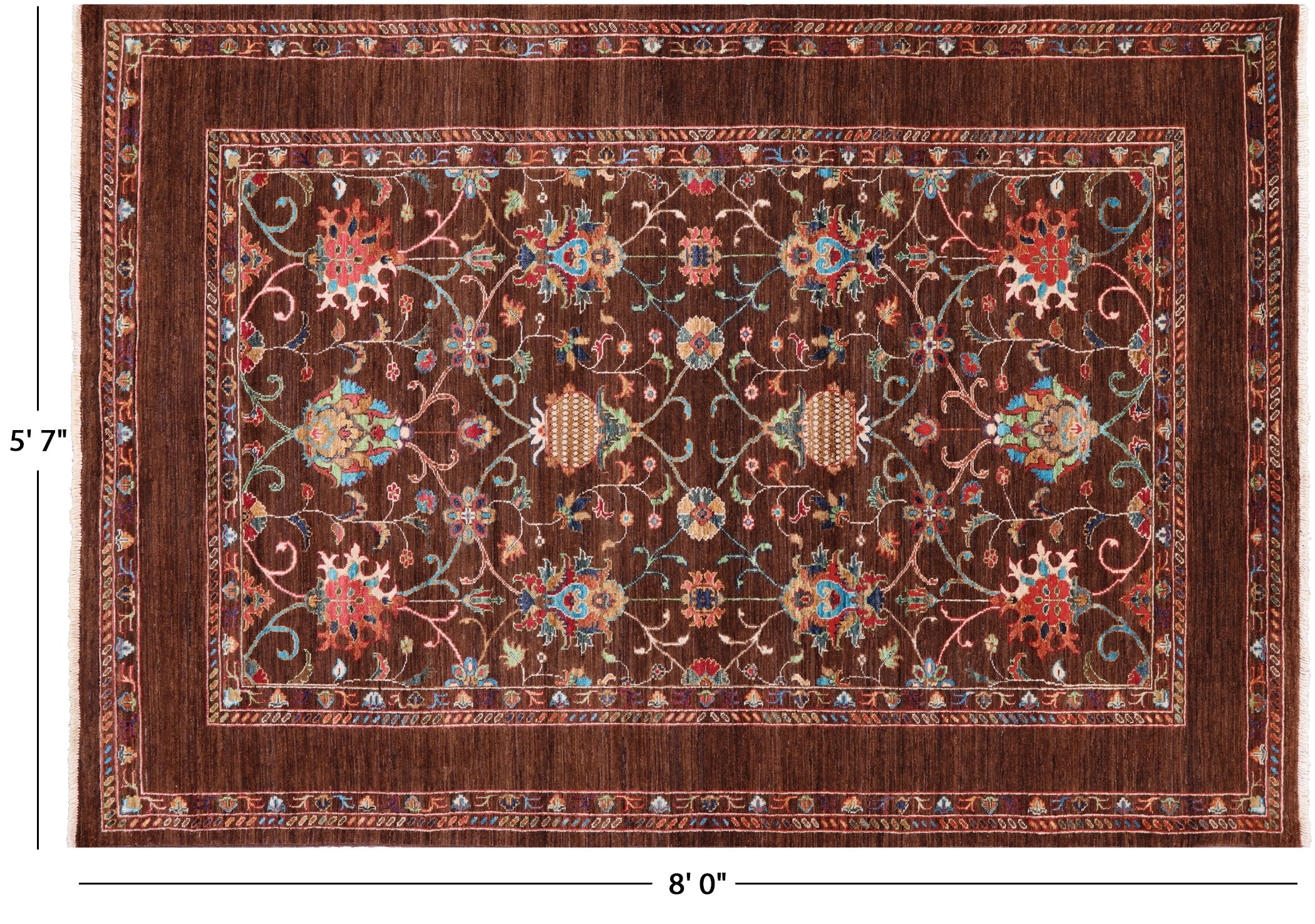 Brown Persian Tabriz Handmade Wool Rug 5' 7" X 8' 0" - Q9977