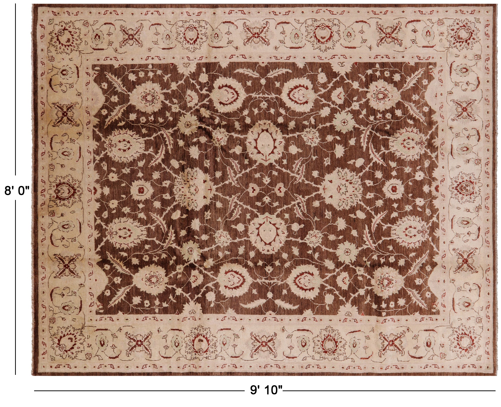 Brown Peshawar Hand Knotted Rug 8' 0" X 9' 10"- W862
