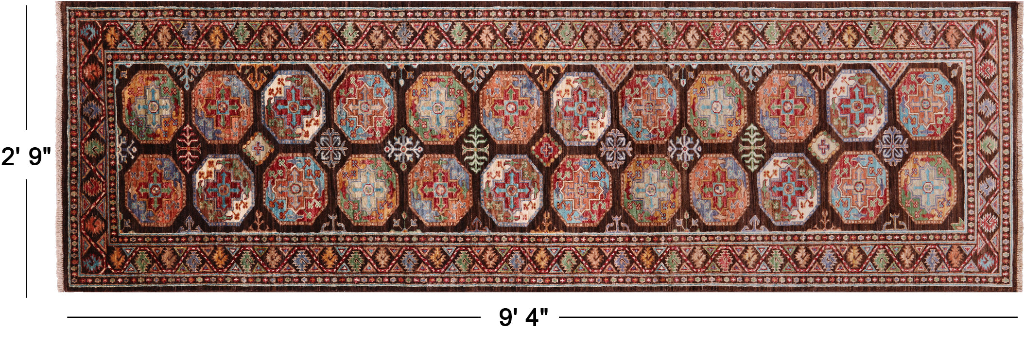 Brown 2' 9" X 9' 4" Runner Fine Turkmen Hand Knotted Wool Rug - Q16690