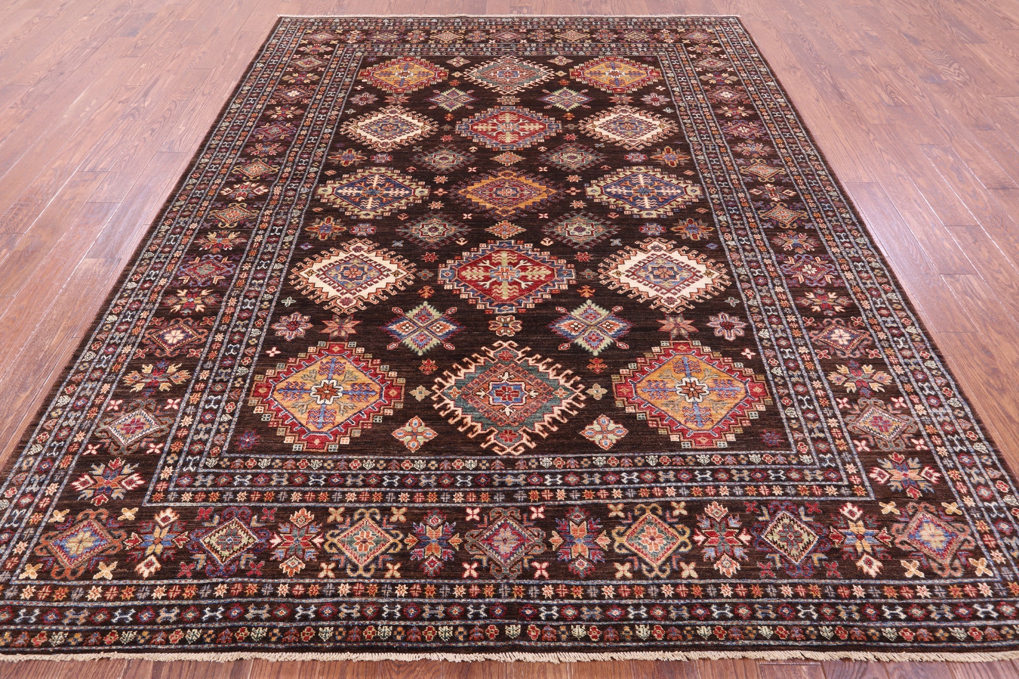 Brown 8' 2" X 10' 0" Super Kazak Hand Knotted Wool Rug - Q21981 is backordered and will ship as soon as it is back in stock.