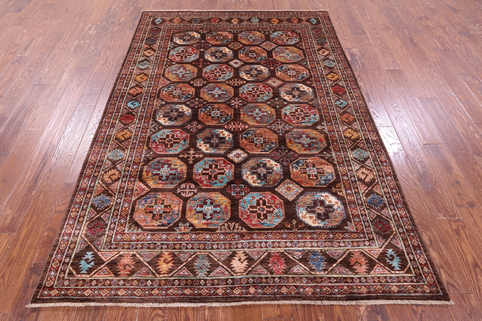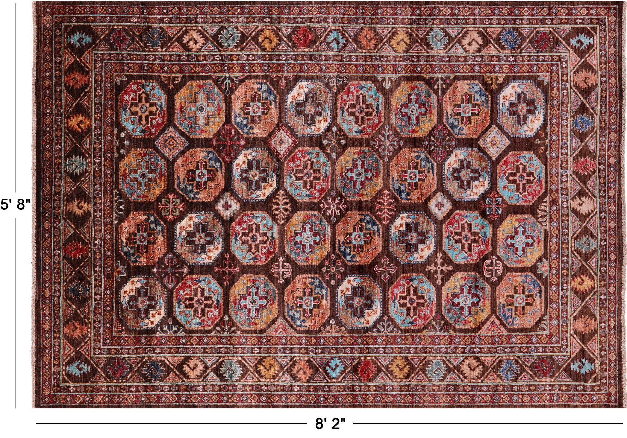Brown Super Turkmen Ersari Hand Knotted Rug 5' 8" X 8' 2" - Q16454